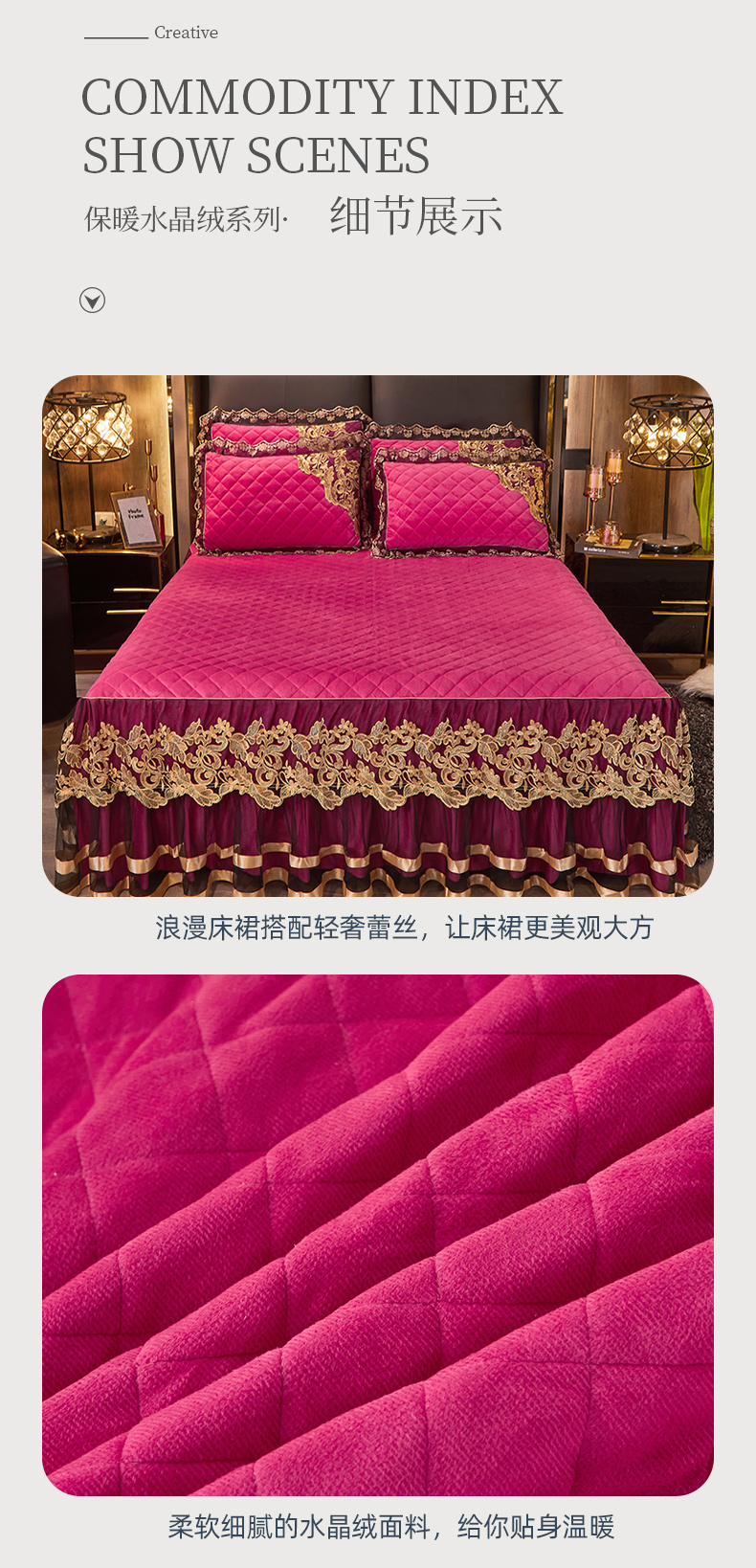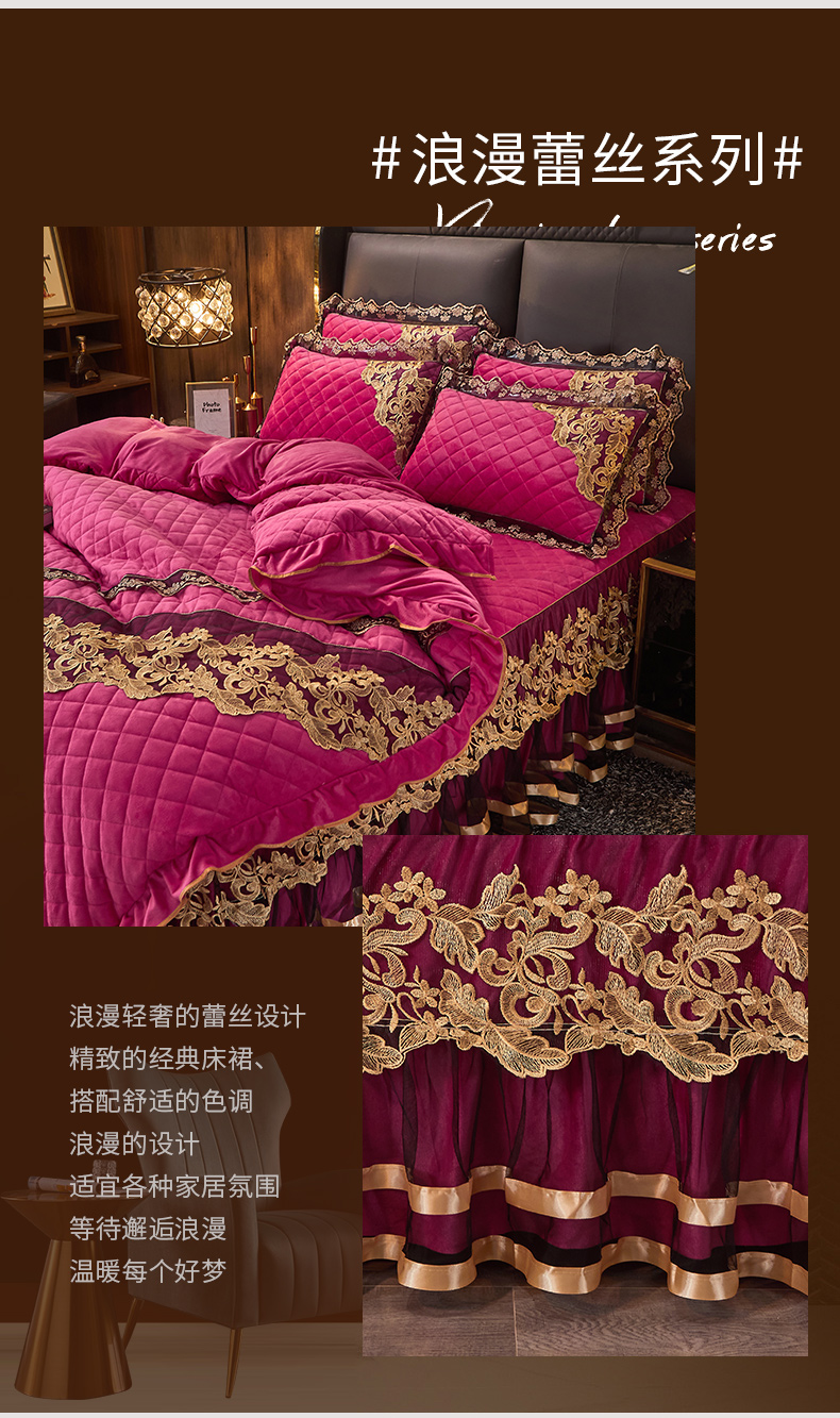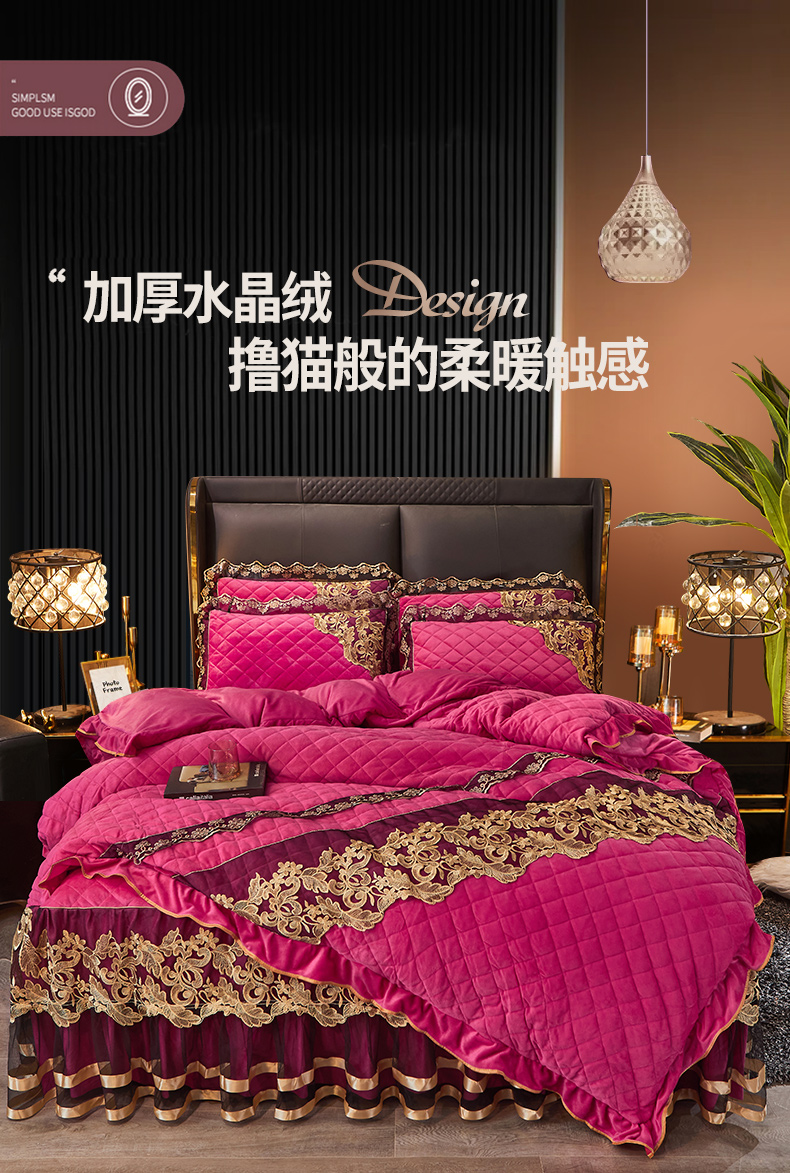 当前位置: 91家纺网 > 商品网购 > 床品套件 > 四件套 > 水晶绒四件套 > 恋尚2023新款魅兰莎水晶绒系列被套夹棉床裙四件套 玫红