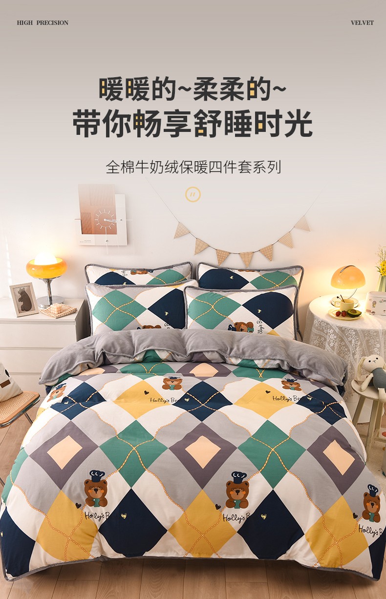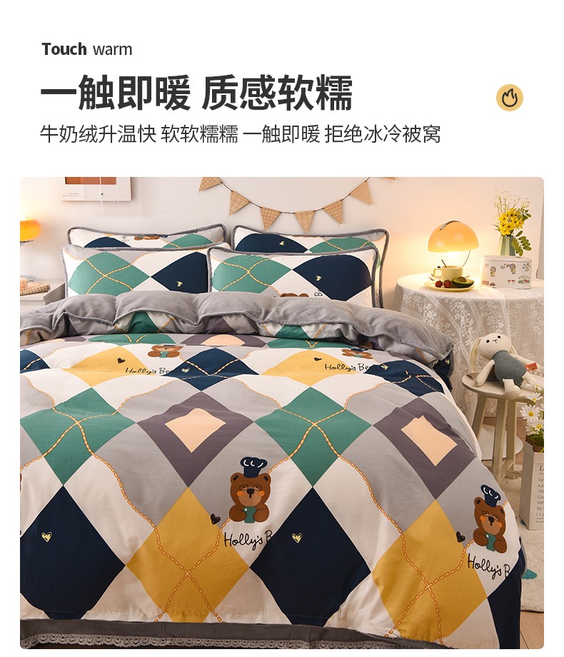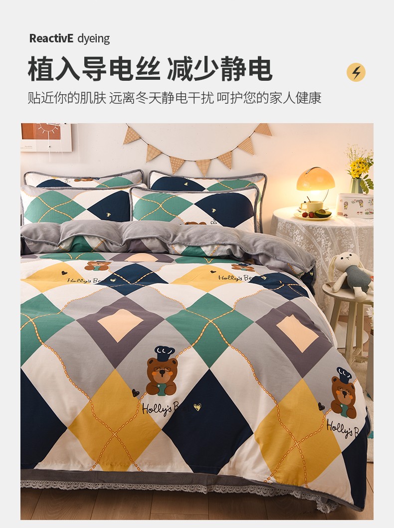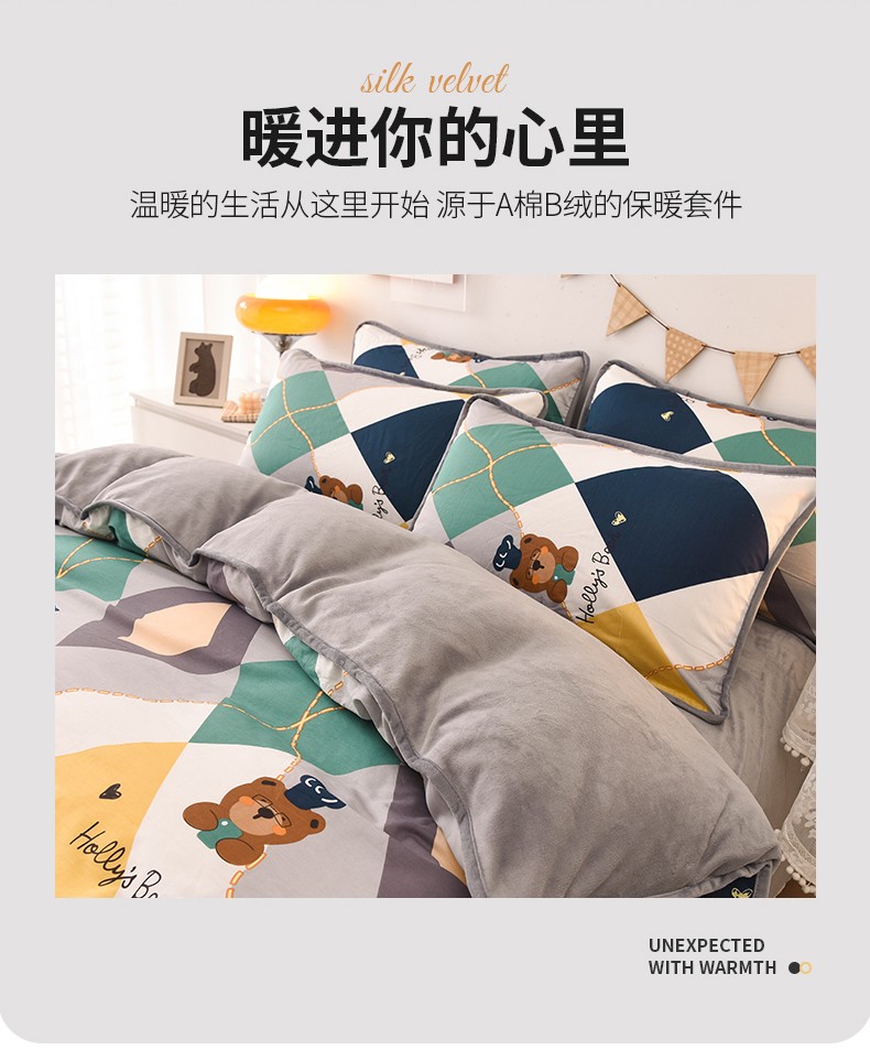 当前位置: 91家纺网 > 商品网购 > 床品套件 > 四件套 > 牛奶绒四件套 > 琪琪阁 2023新款A棉B绒棉加绒牛奶绒四件套单被套 爱尔威