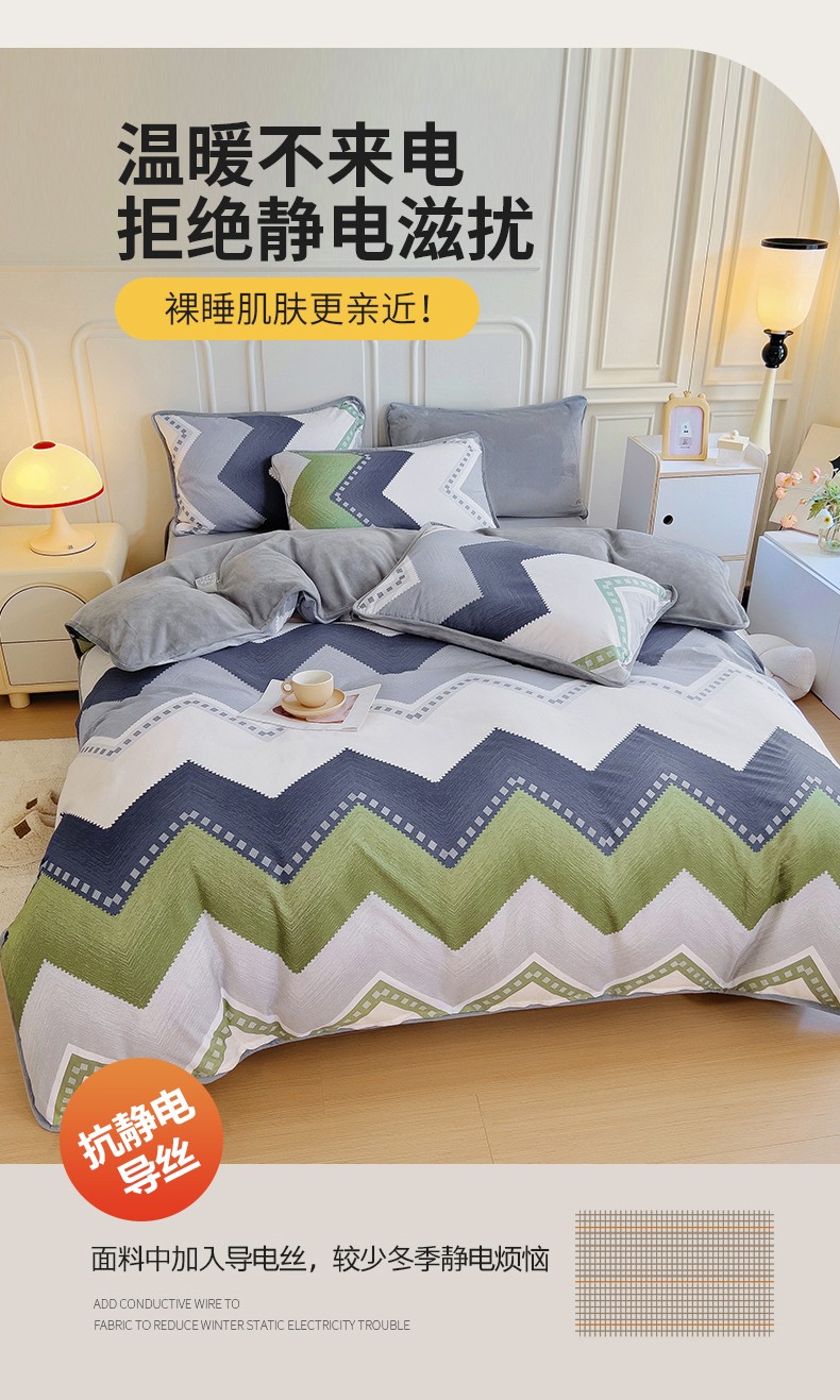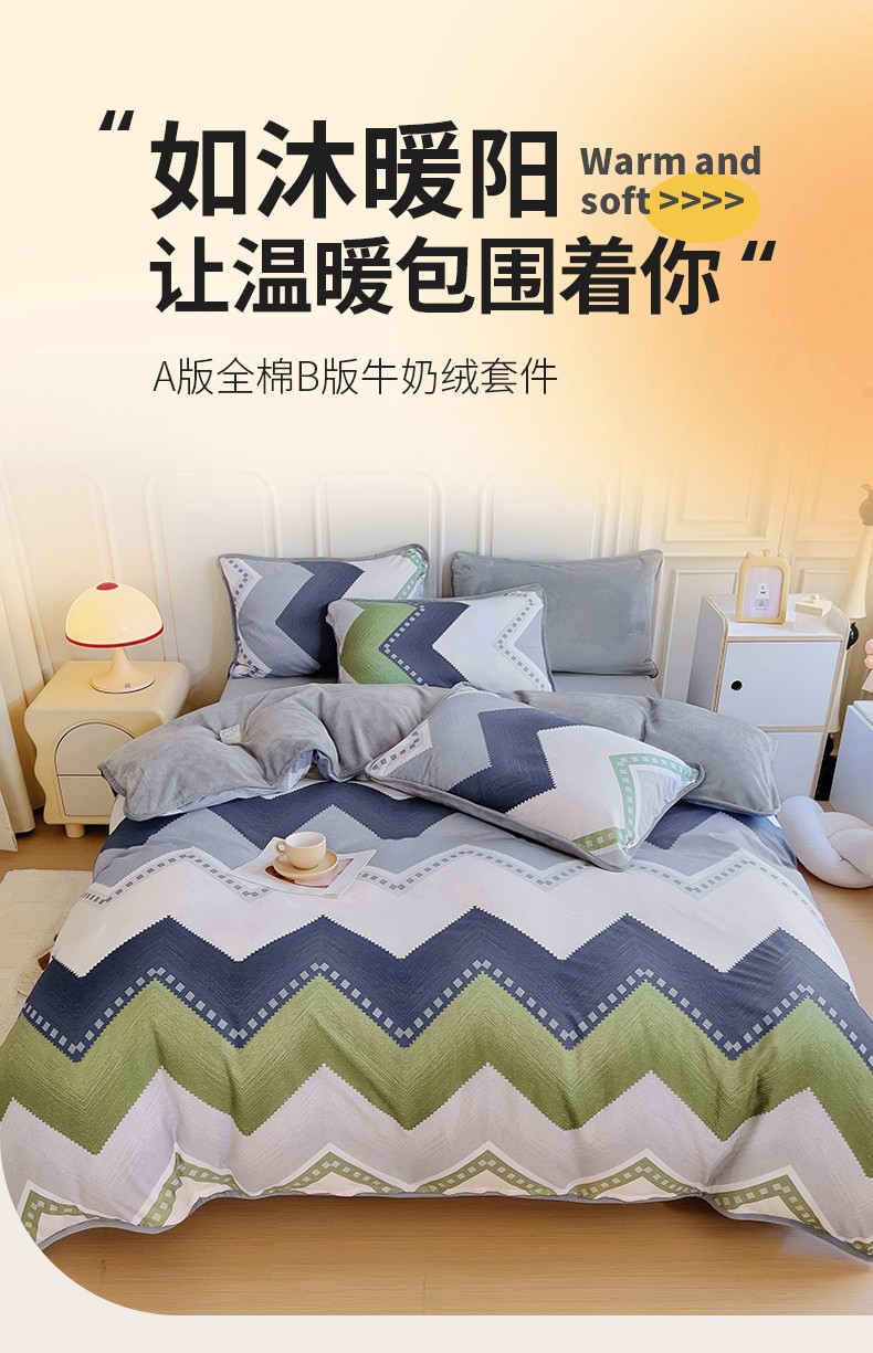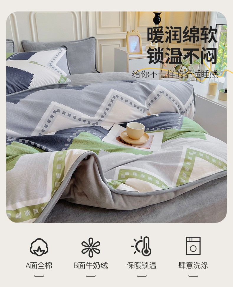 当前位置: 91家纺网 > 商品网购 > 床品套件 > 四件套 > 牛奶绒四件套 > 琪琪阁 2023新款A棉B绒棉加绒牛奶绒四件套单被套 克洛伊