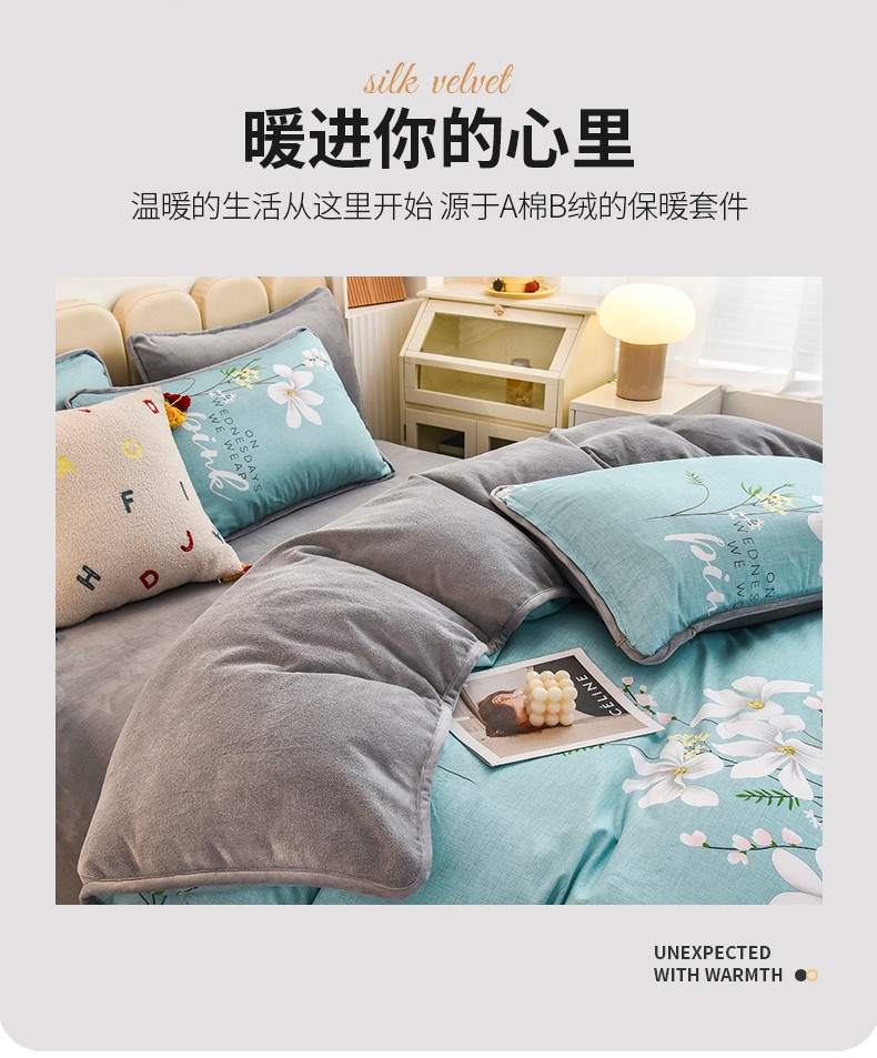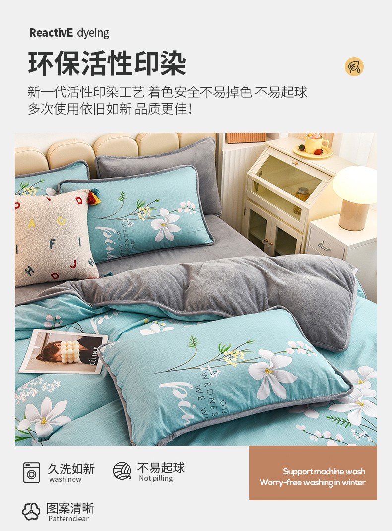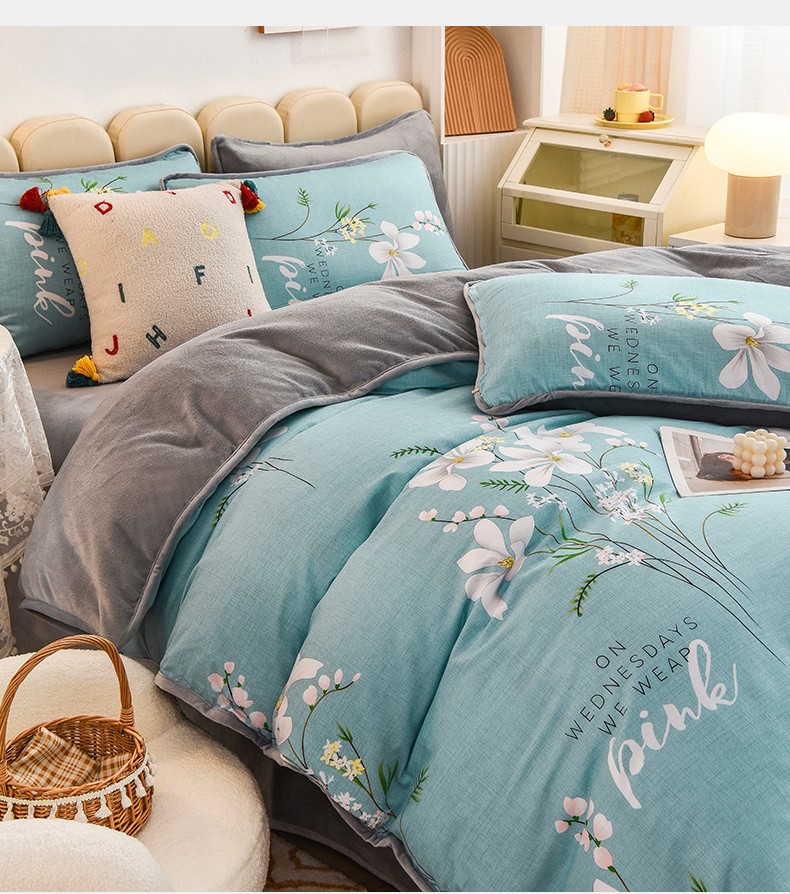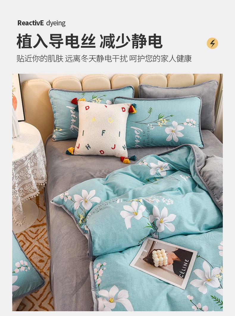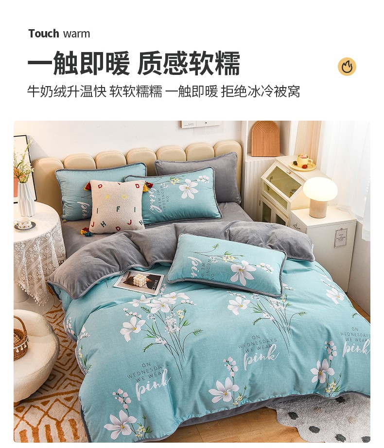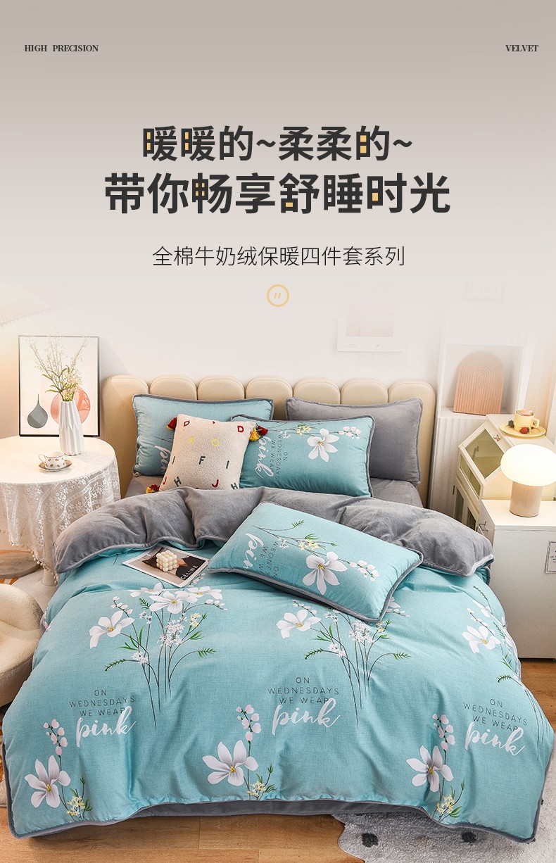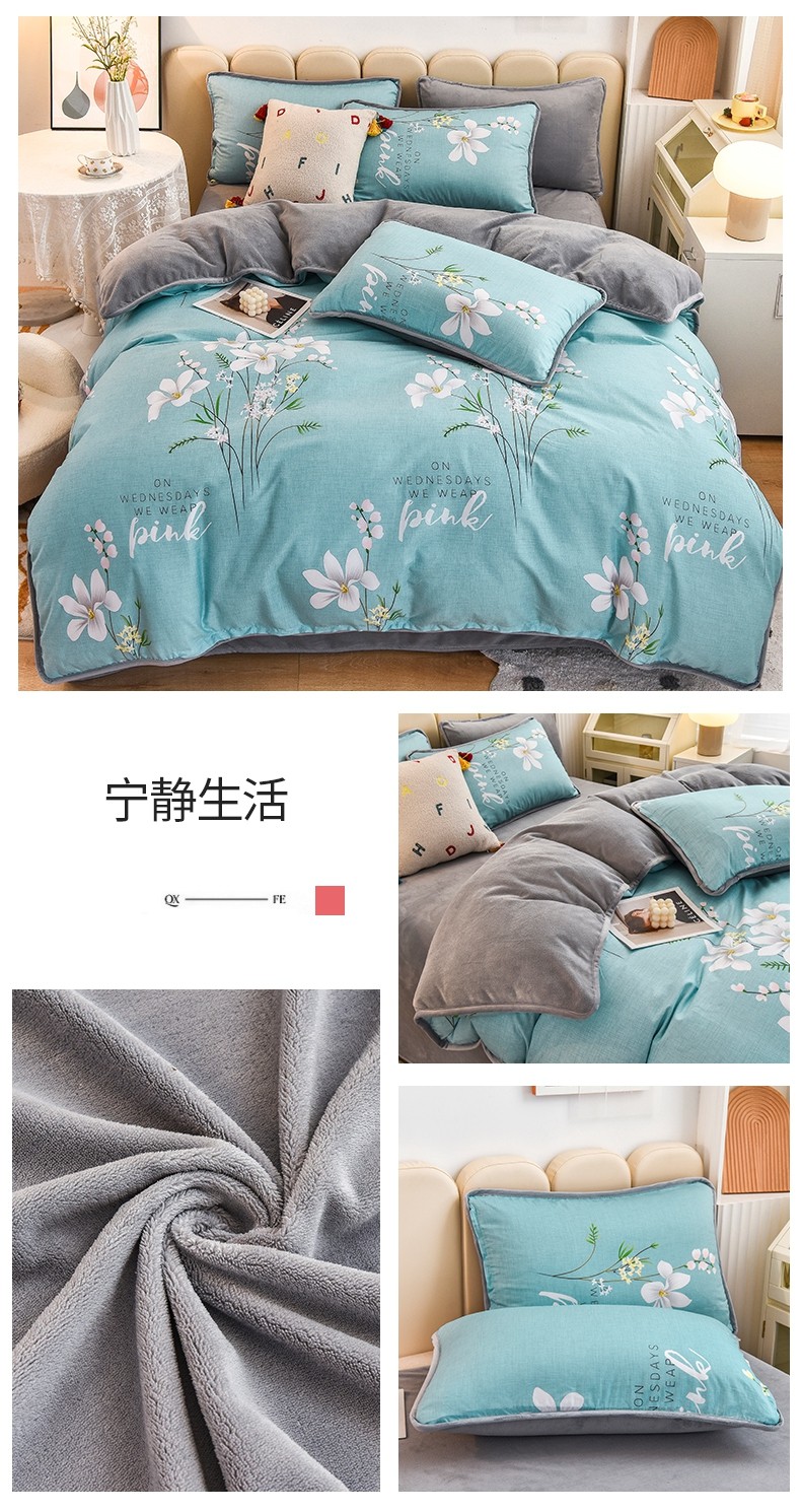 当前位置: 91家纺网 > 商品网购 > 床品套件 > 四件套 > 牛奶绒四件套 > 琪琪阁 2023新款A棉B绒棉加绒牛奶绒四件套单被套 宁静生活