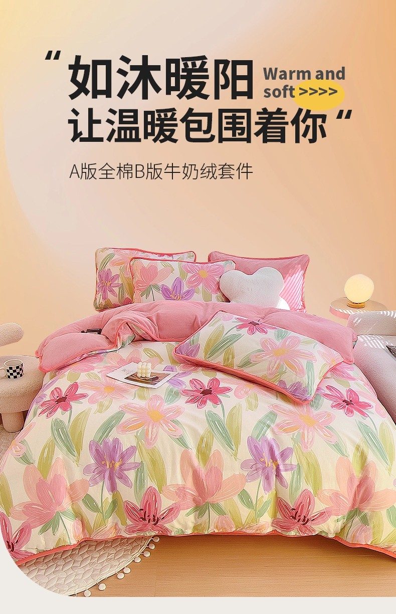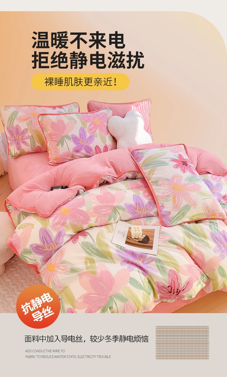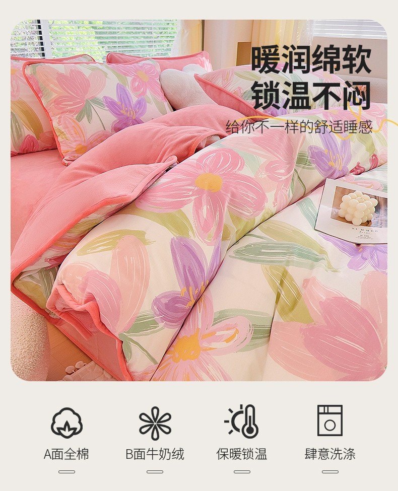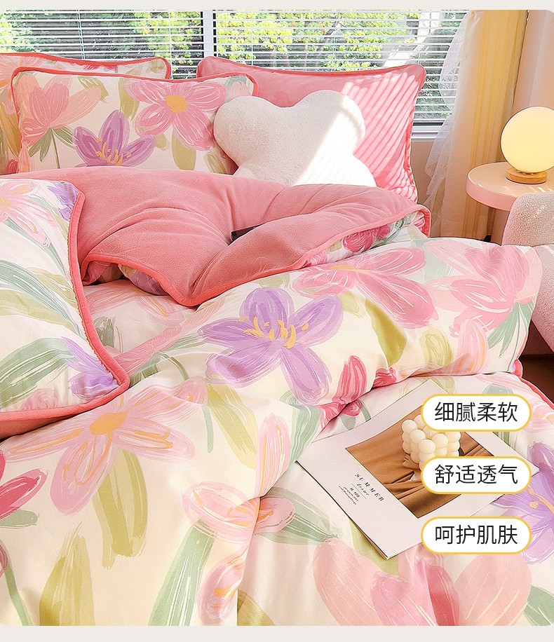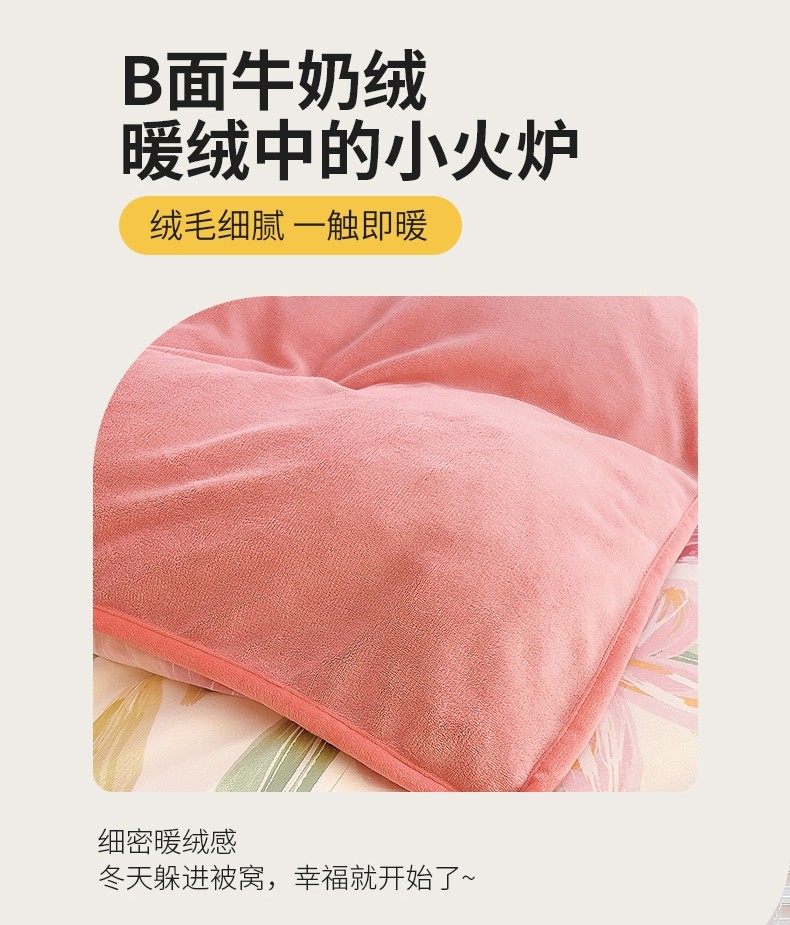当前位置: 91家纺网 > 商品网购 > 床品套件 > 四件套 > 牛奶绒四件套 > 琪琪阁 2023新款A棉B绒棉加绒牛奶绒四件套单被套 雅蔓