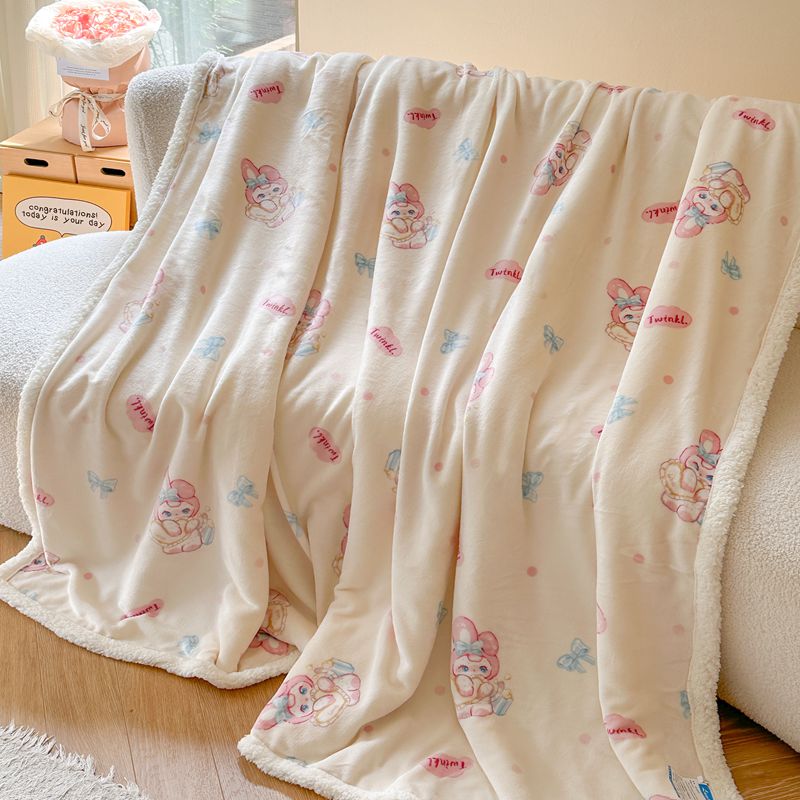萝莉家纺 2023新款ins加厚牛奶绒羊羔绒毯午睡毯沙发盖毯-风格二 许愿兔