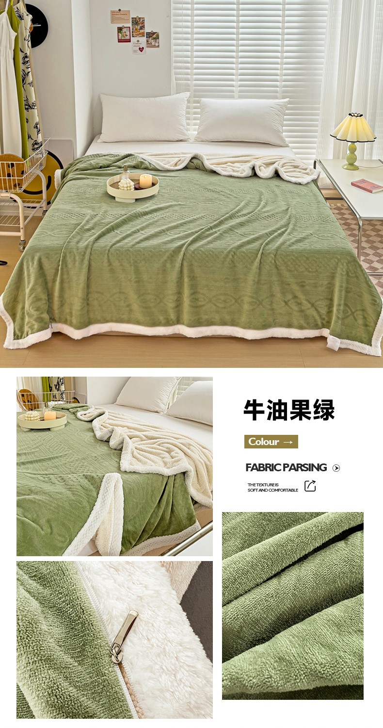 法澳 2023新款220克牛奶绒雕花烂花毛毯休闲毯 爱莎-牛油果绿