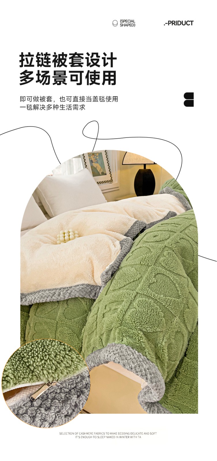 商品名称:法澳 2023新款230克塔芙绒北极绒多功能单被套 牛油果绿
