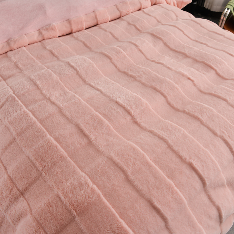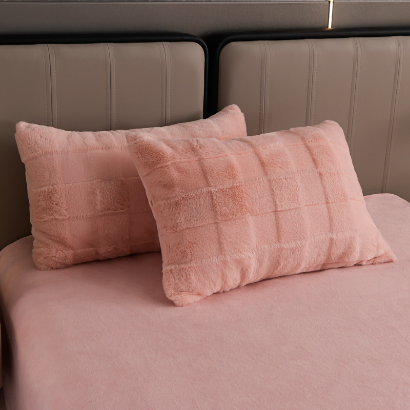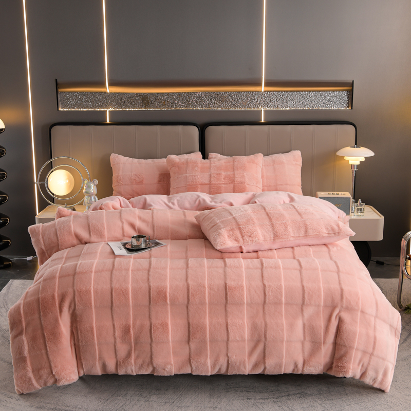 商品名称:爱洛 2023新款纯色高克重兔毛绒四件套 蜜桃-粉