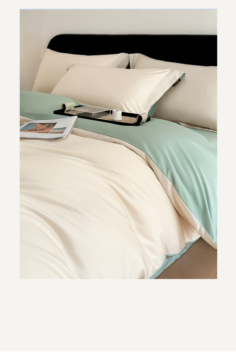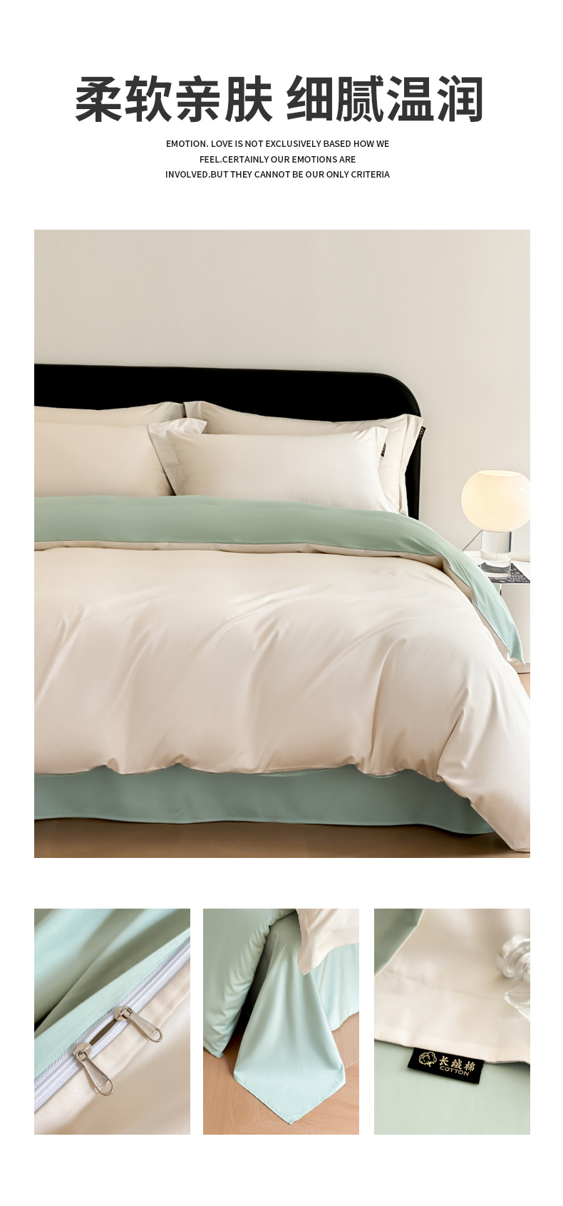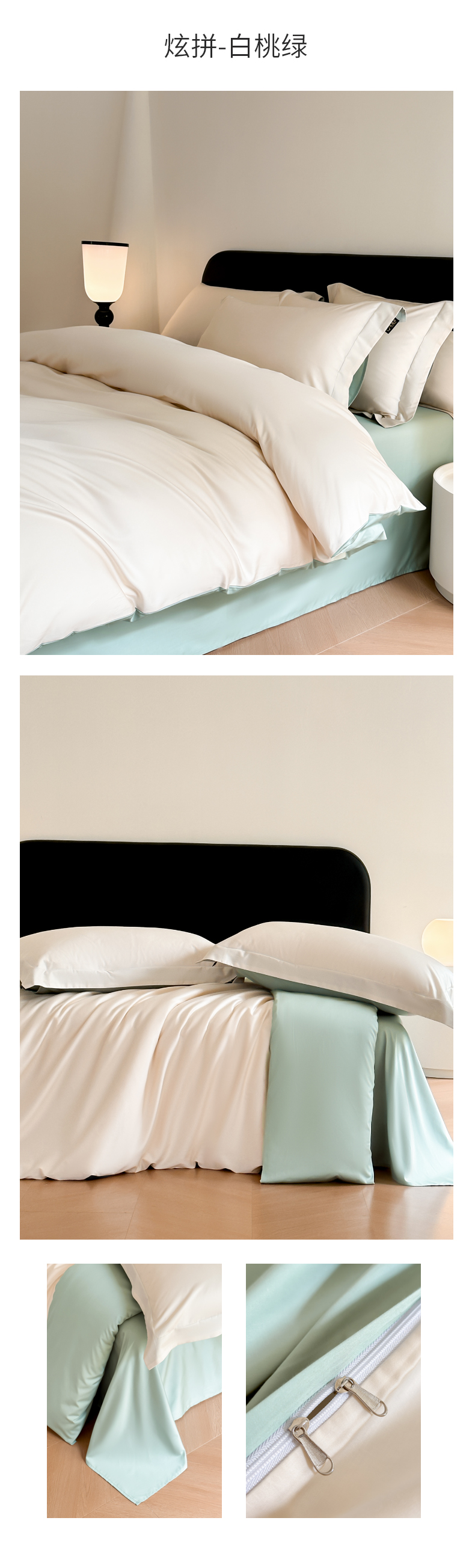 商品名称:618家纺2023新款A类50S100支长绒棉全棉双拼炫拼系列四件套 炫拼-白桃绿