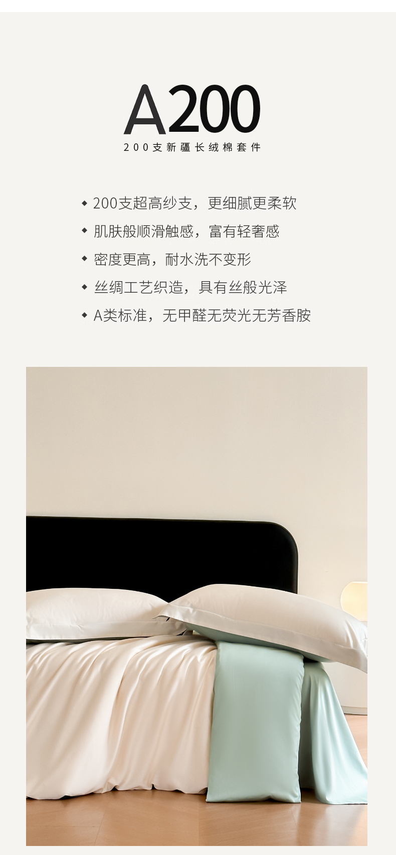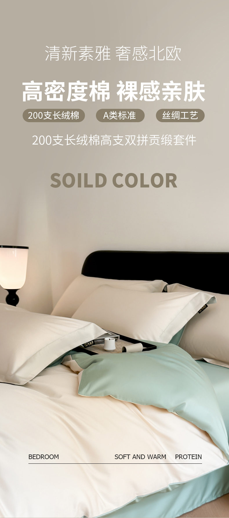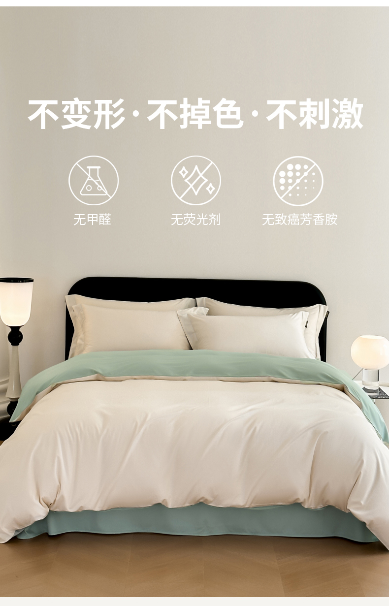 商品名称:618家纺2023新款A类50S100支长绒棉全棉双拼炫拼系列四件套 炫拼-白桃绿