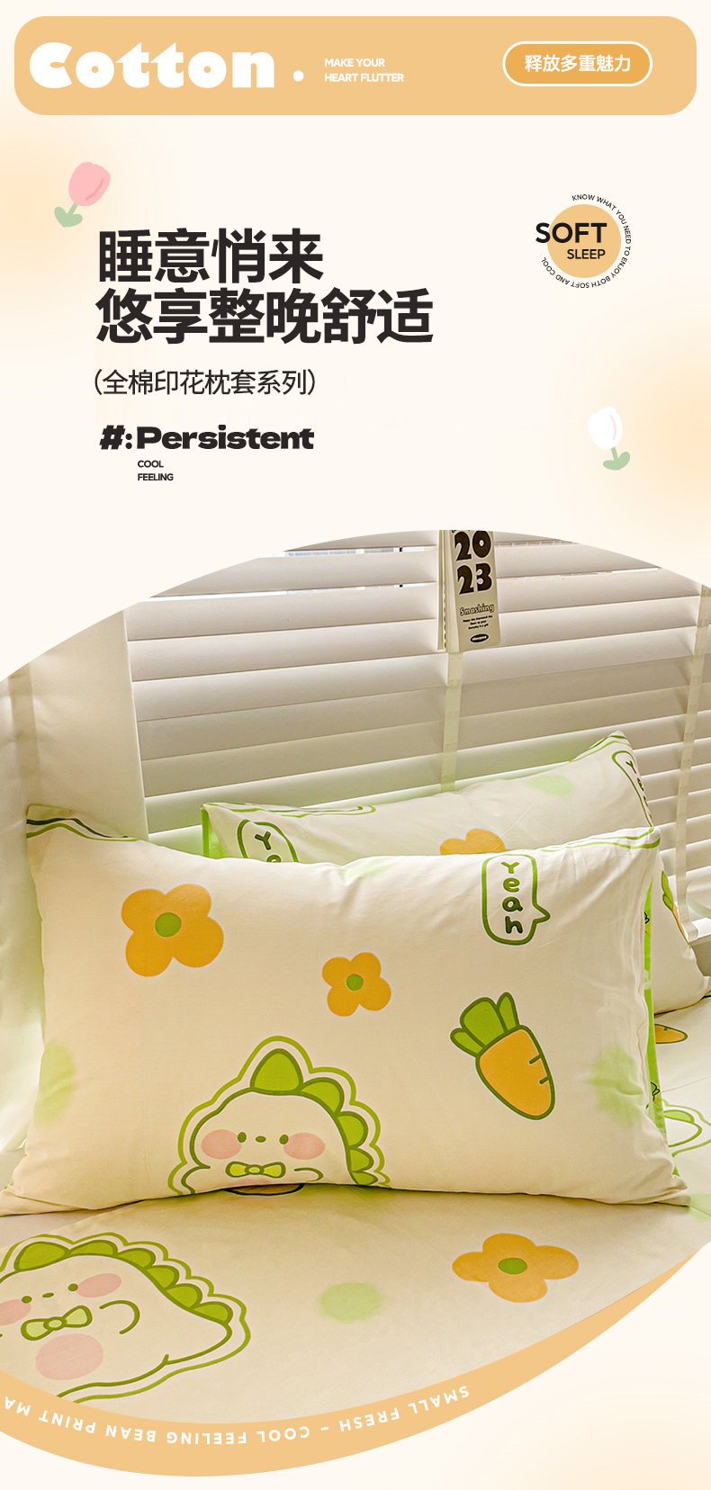 名兮家居 2023新款全棉简约印花枕套 小恐龙