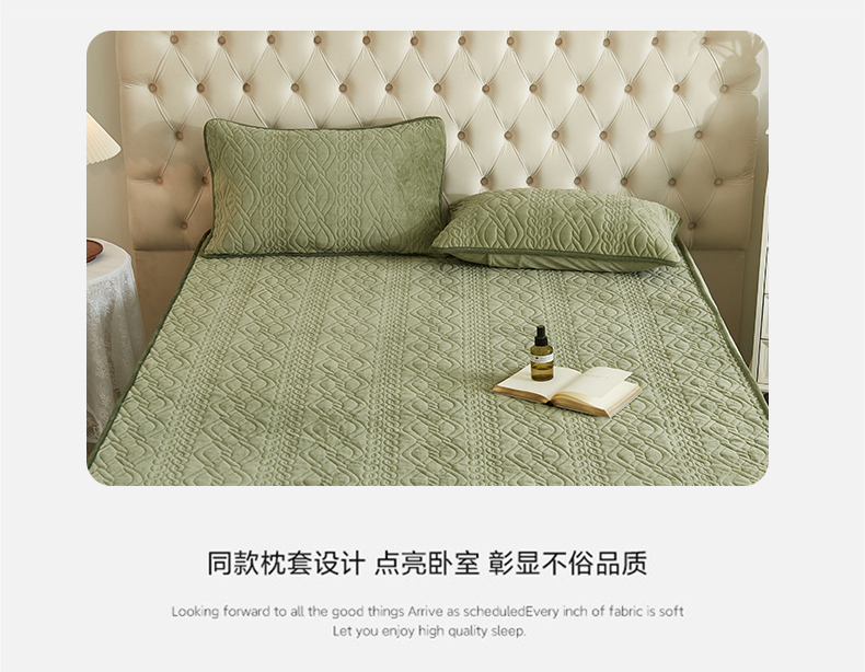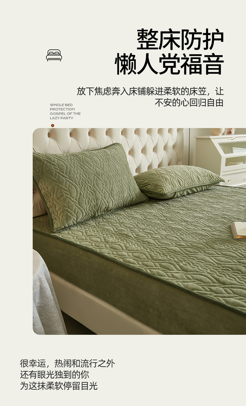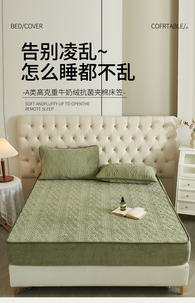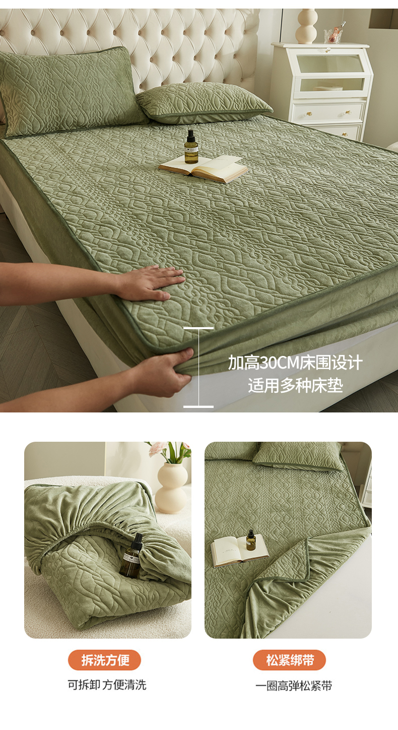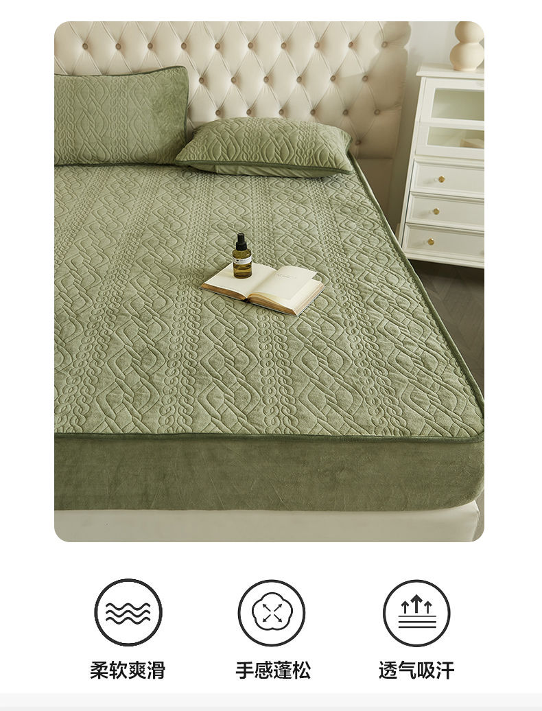 商品名称:网客家纺 2024新款牛奶绒夹棉床笠三件套 牛奶绒夹棉床笠-绿
