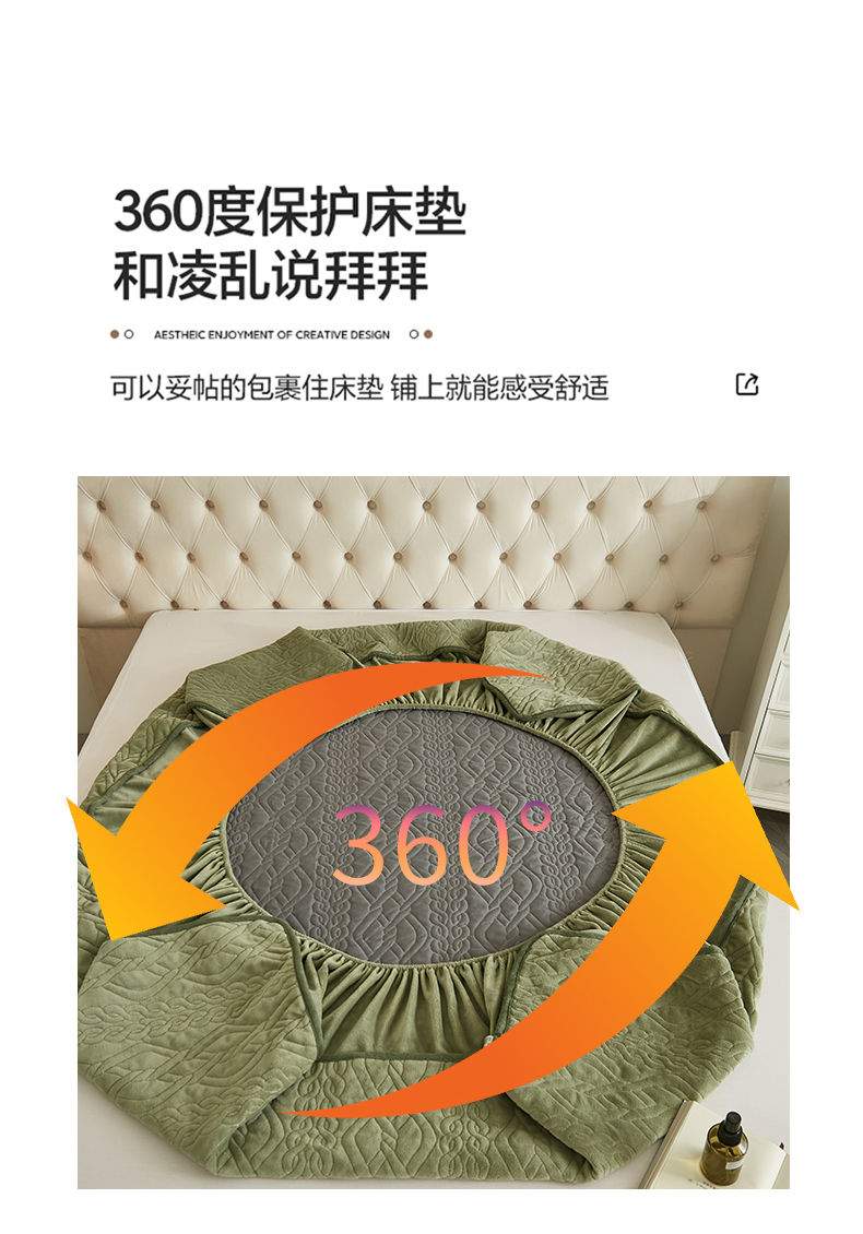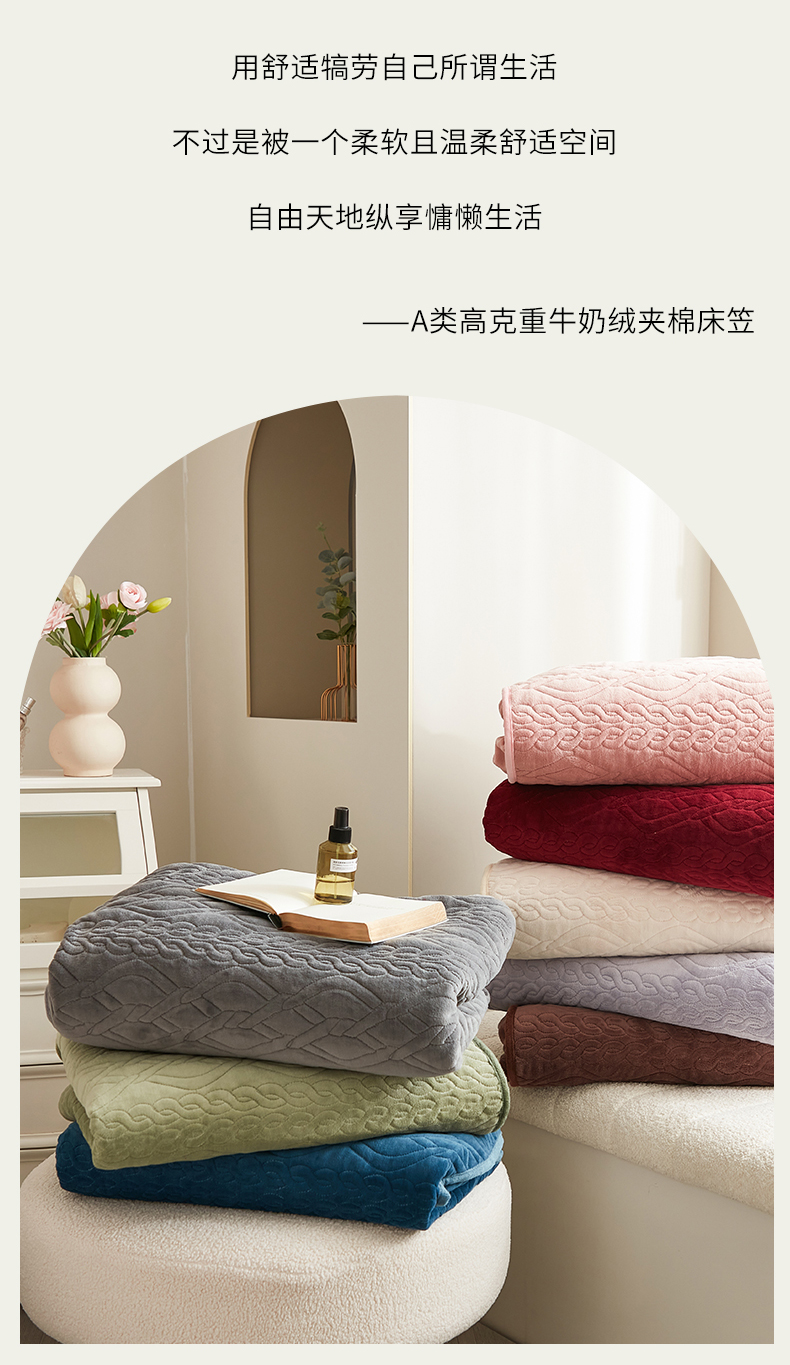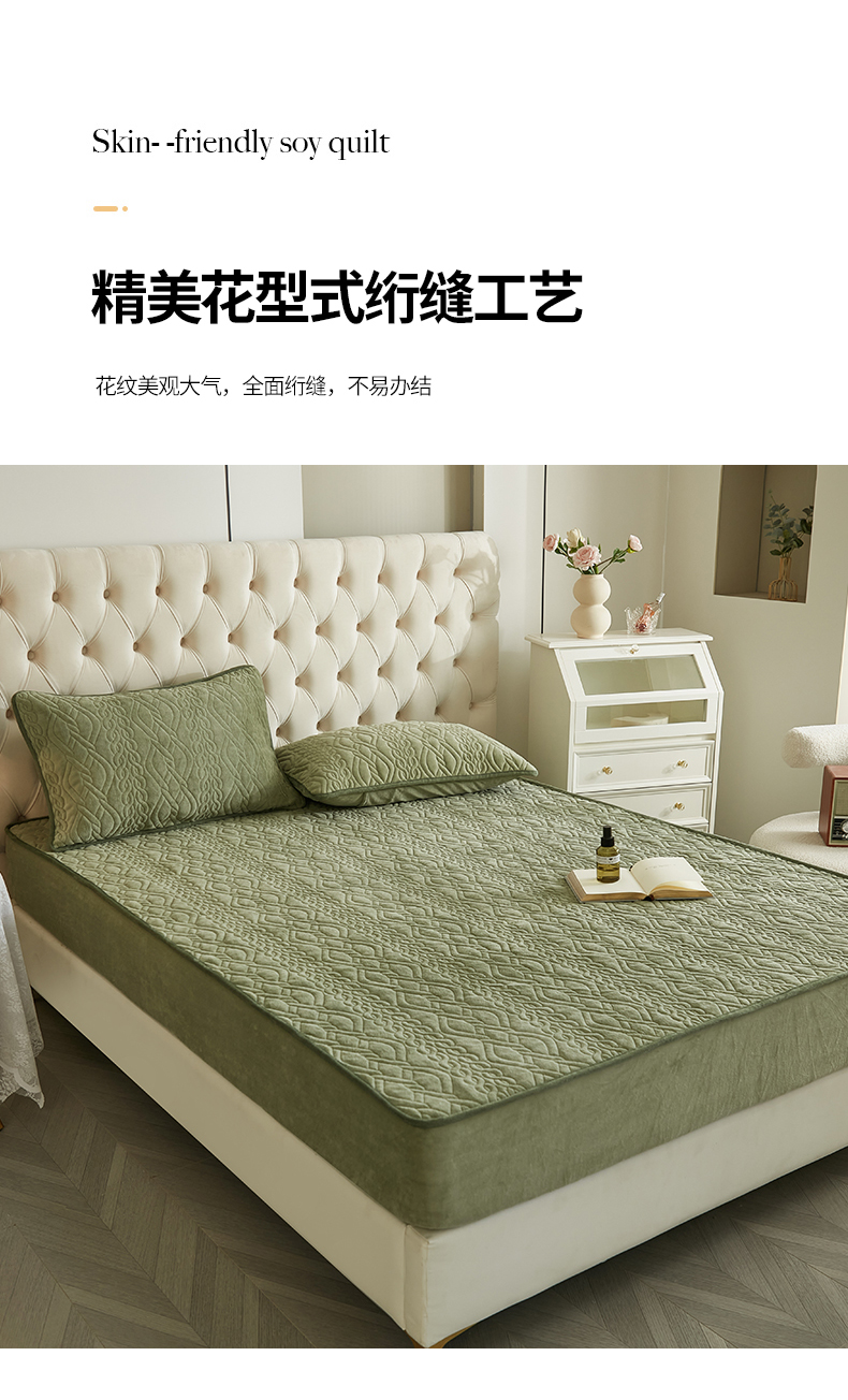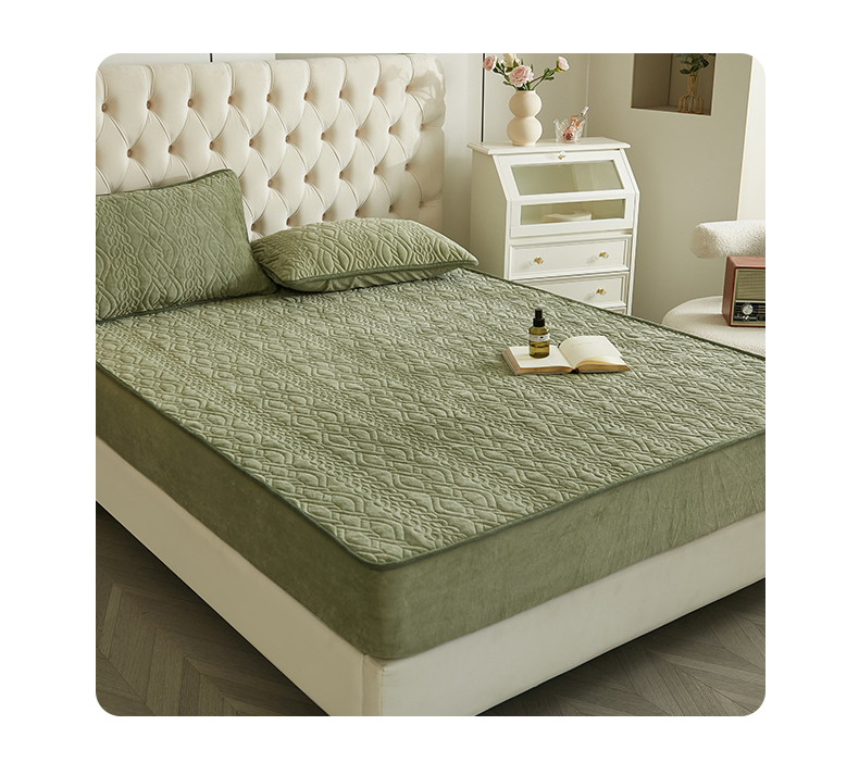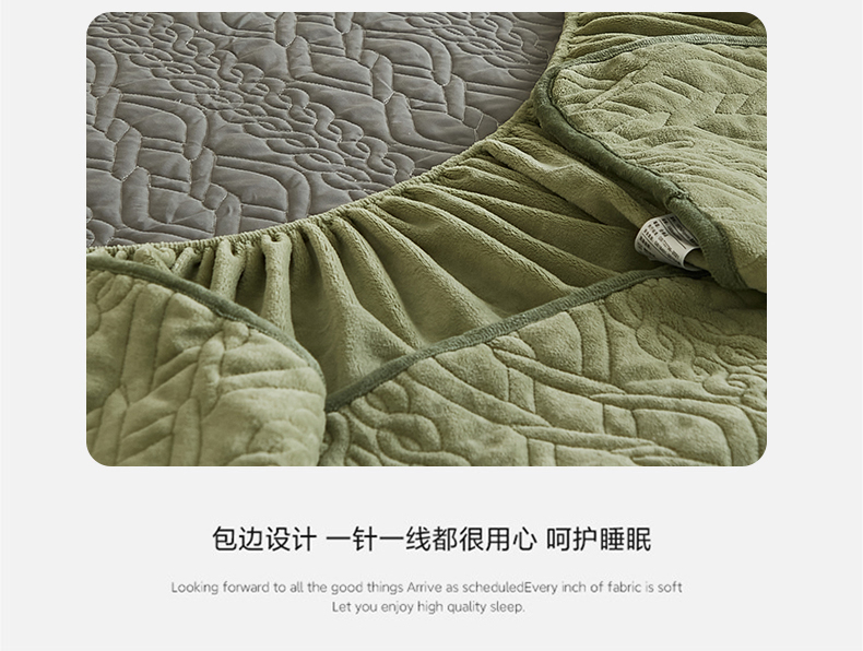 商品名称:网客家纺 2024新款牛奶绒夹棉床笠三件套 牛奶绒夹棉床笠-绿