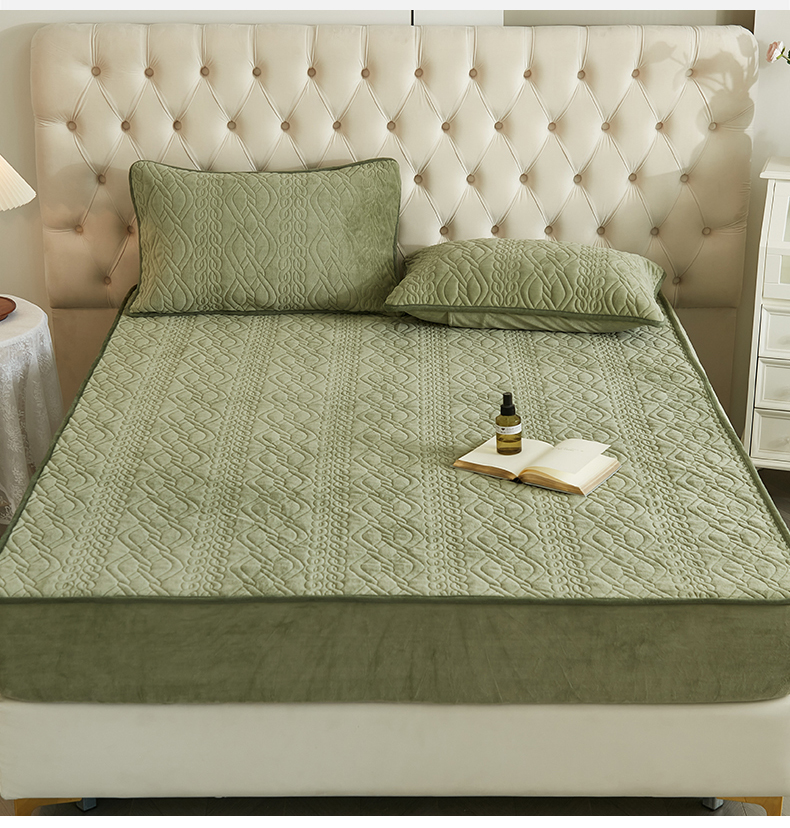 网客家纺 2024新款牛奶绒夹棉床笠三件套 牛奶绒夹棉床笠-绿