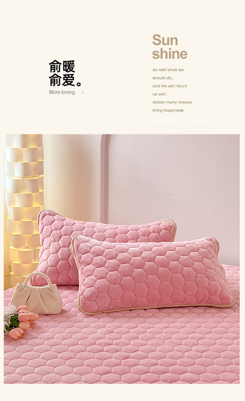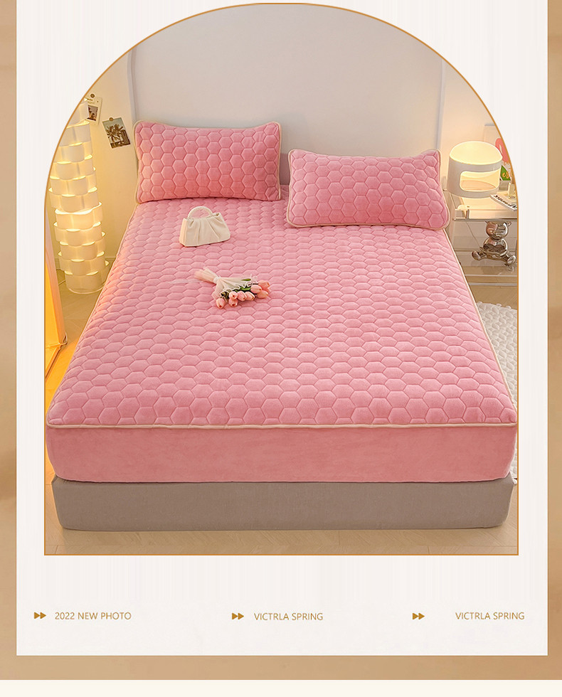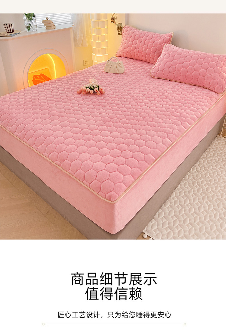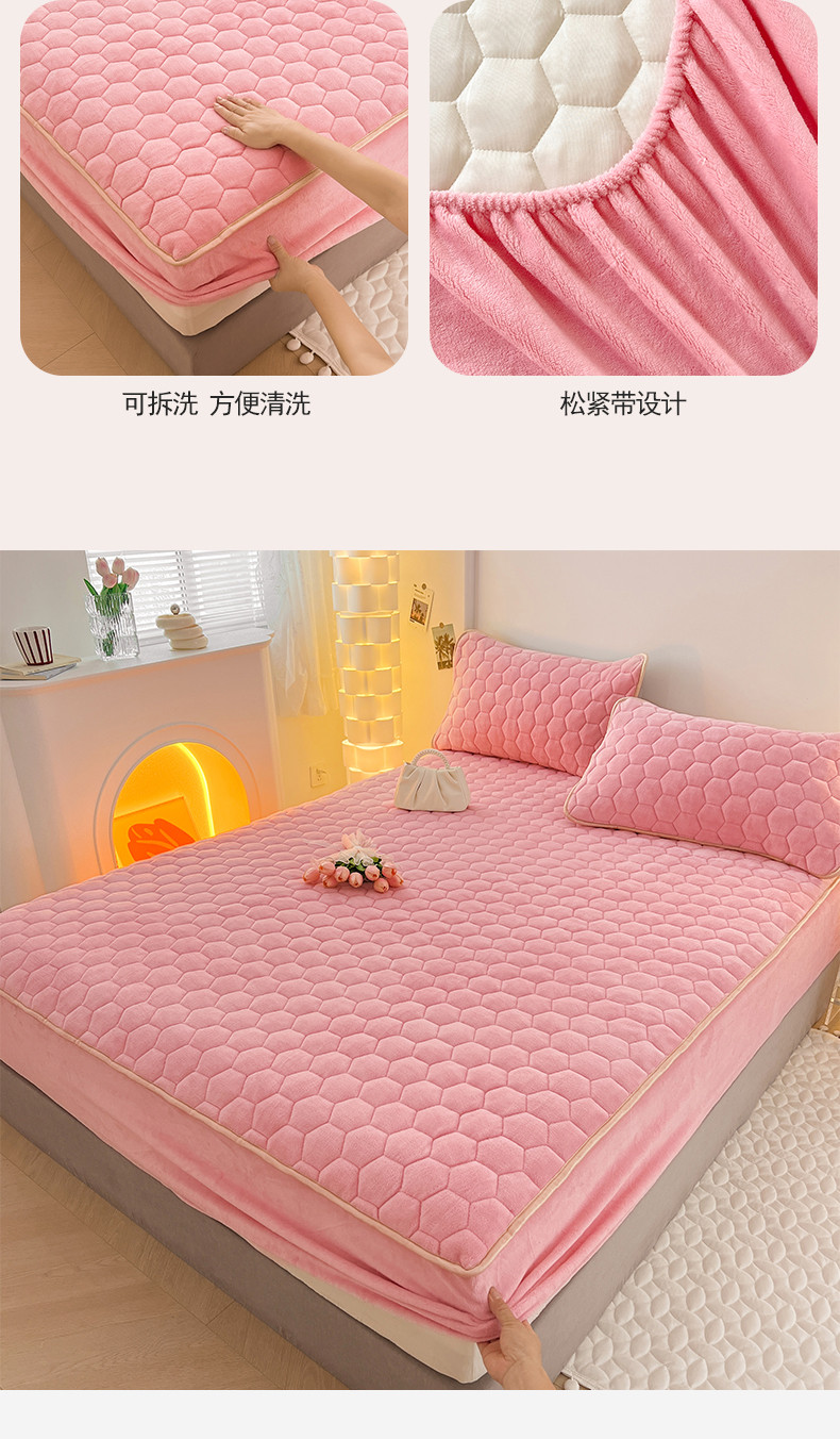 • 91家纺网 家纺一手货源 找家纺 梦舒羽 2025新款牛奶绒夹棉床笠床罩床单床盖床护垫套三件套 樱花粉