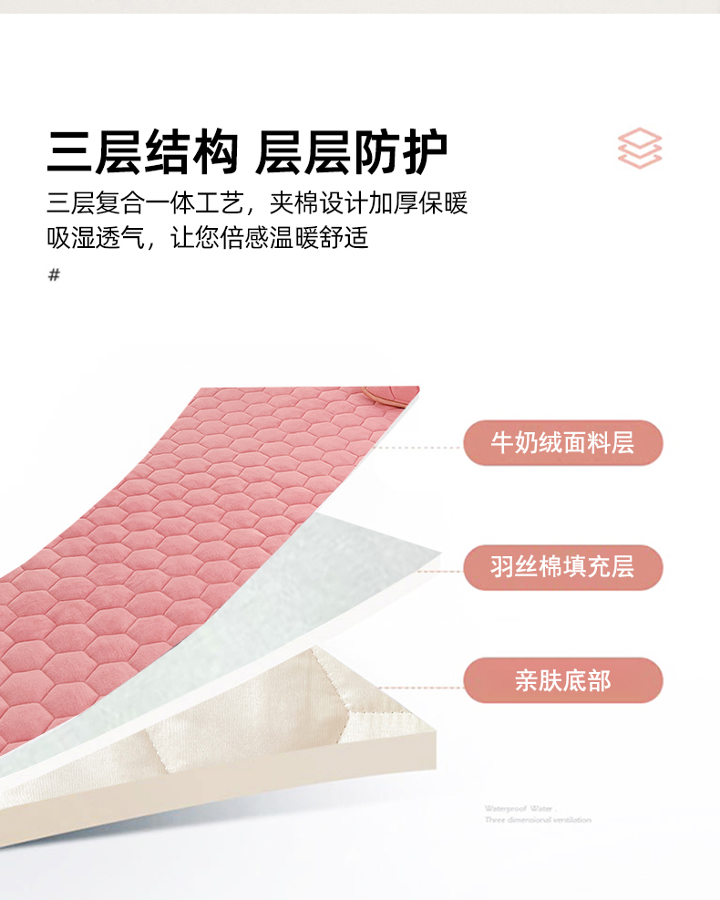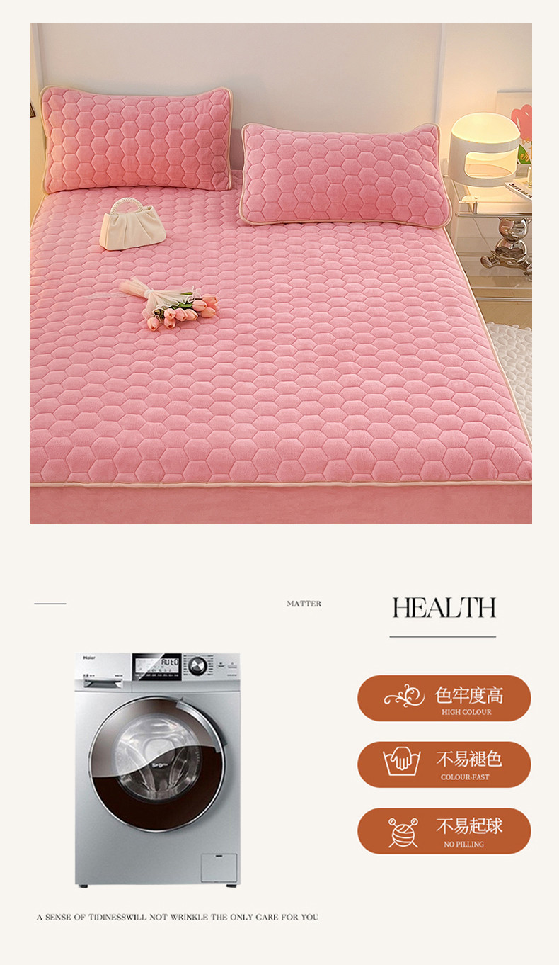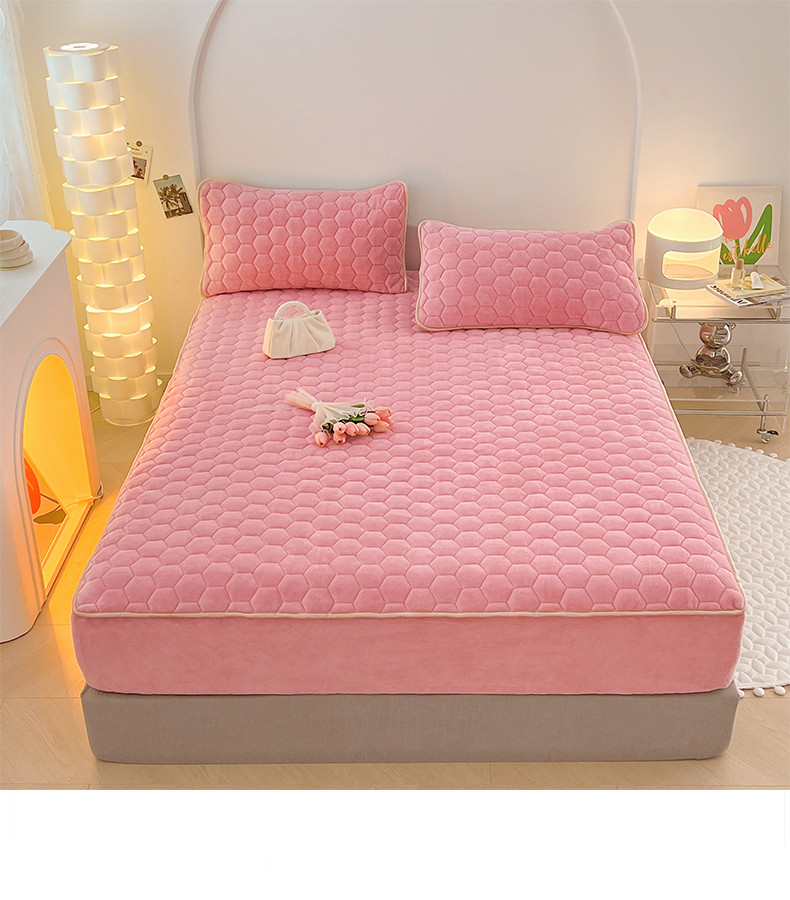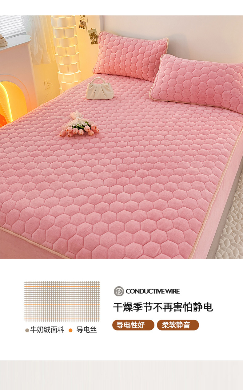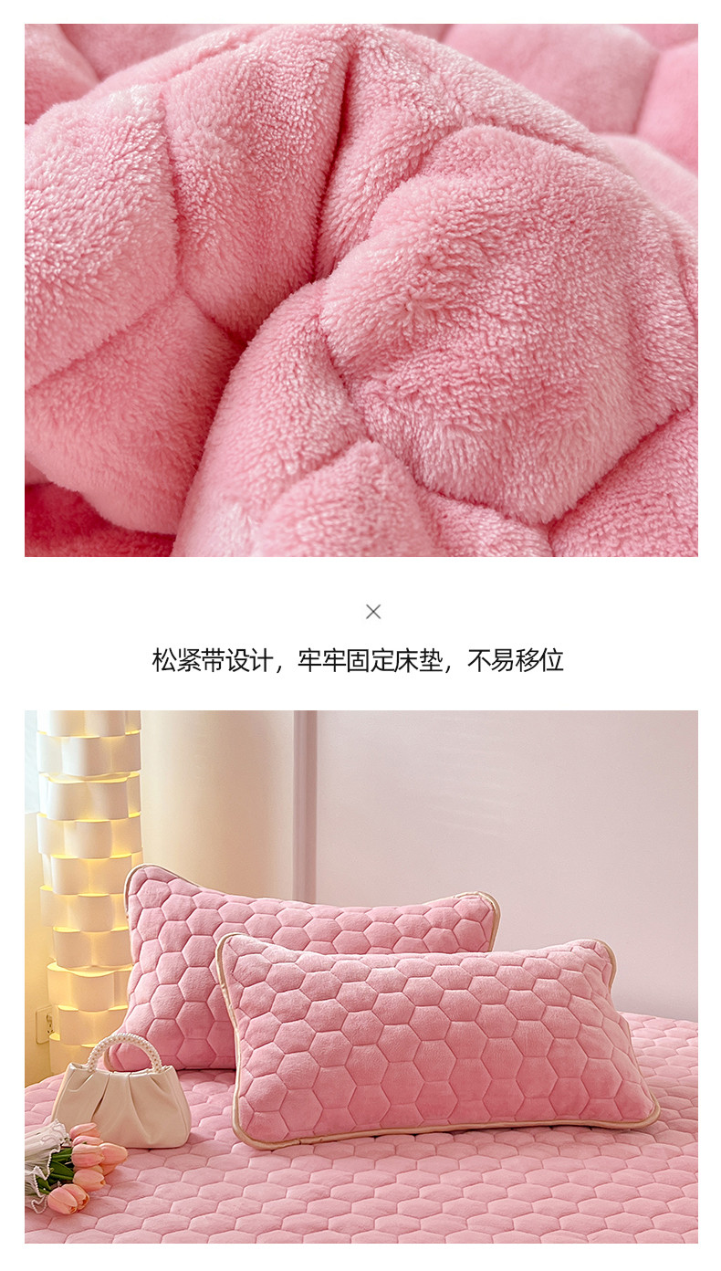 • 91家纺网 家纺一手货源 找家纺 梦舒羽 2025新款牛奶绒夹棉床笠床罩床单床盖床护垫套三件套 樱花粉
