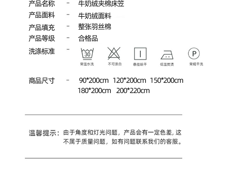 120x200cm-高30cm【牛奶绒夹棉床笠】