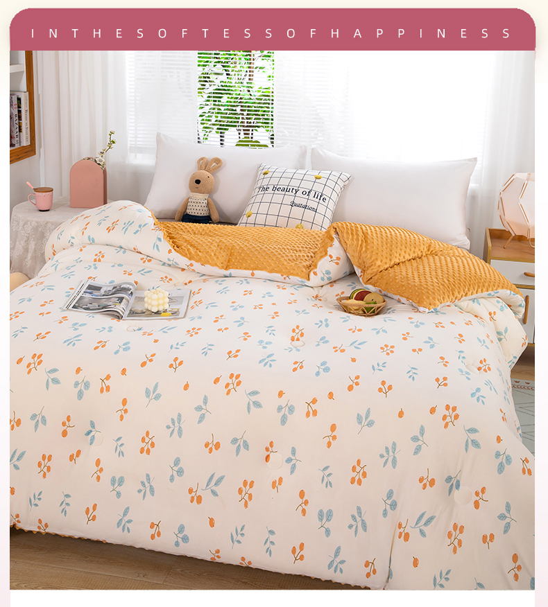 • 91家纺网 家纺一手货源 找家纺 天瑜家纺2023新款针织豆豆绒冬被系列 小金果1