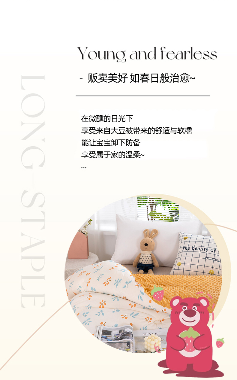 • 填充纤维种类: 大豆蛋白改性聚酯纤维
