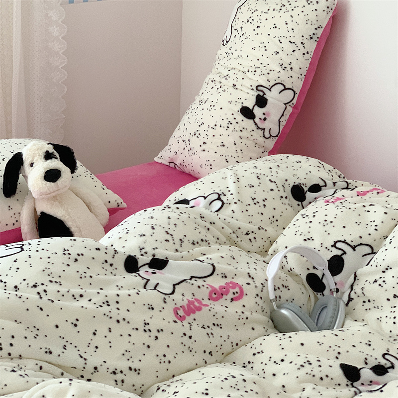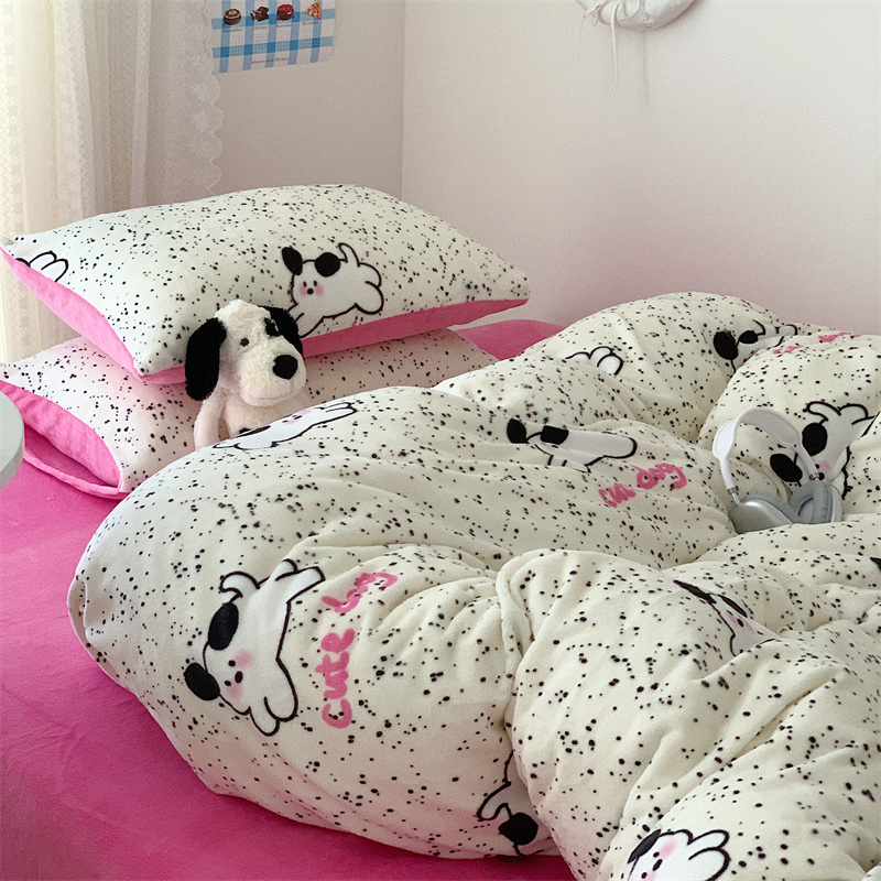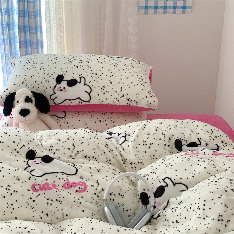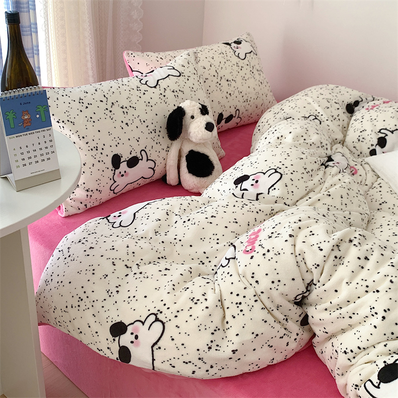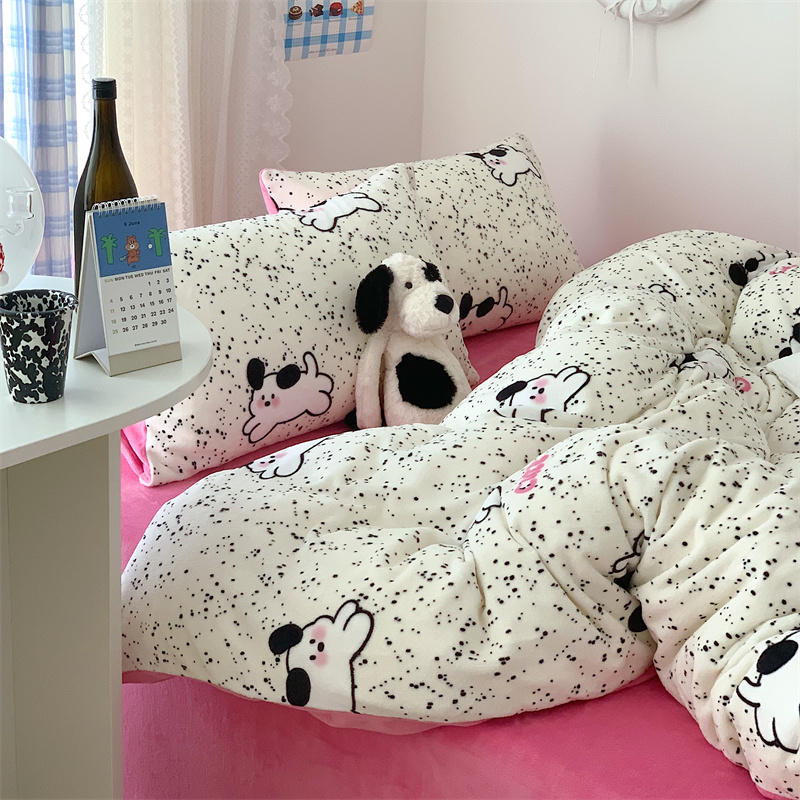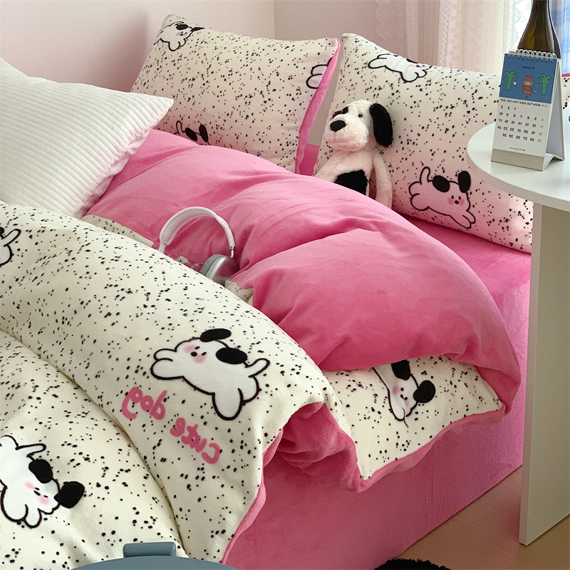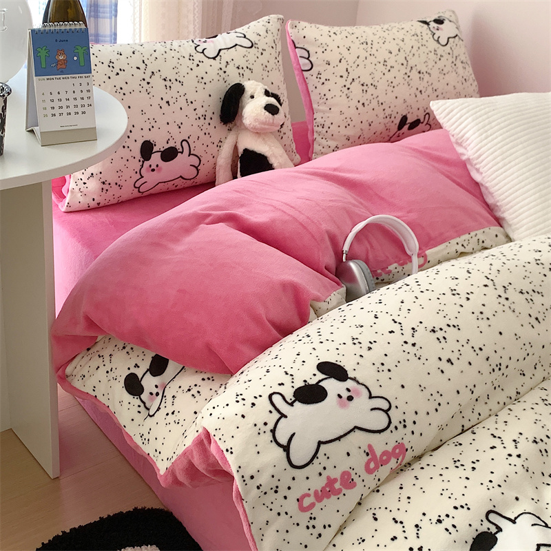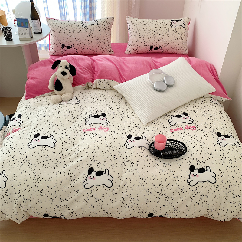 美乐迪家纺 2023秋冬新款保暖牛奶绒四件套 可爱小狗