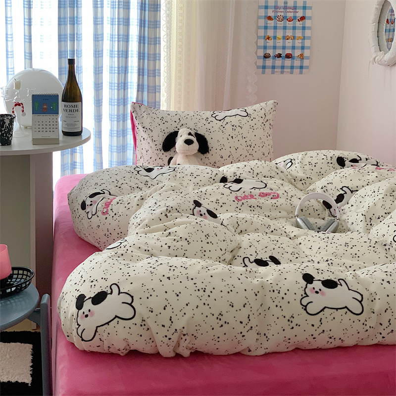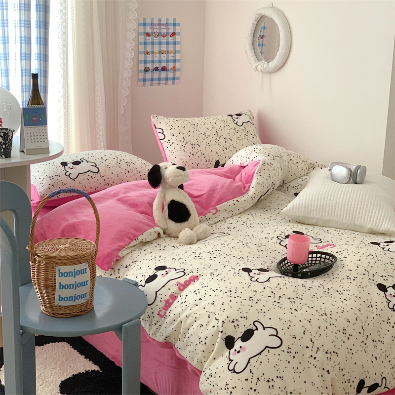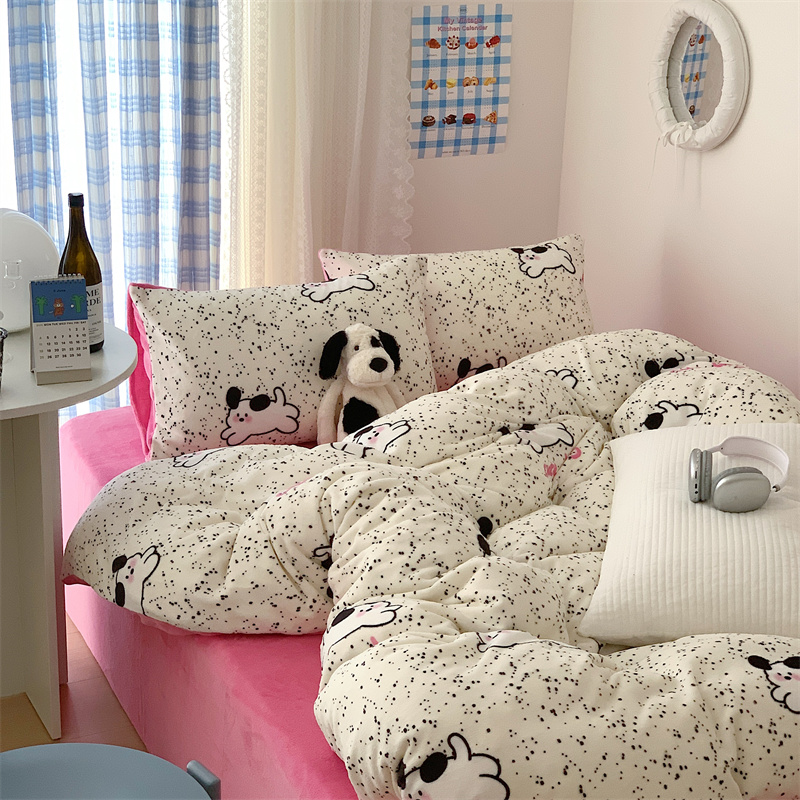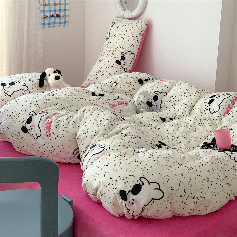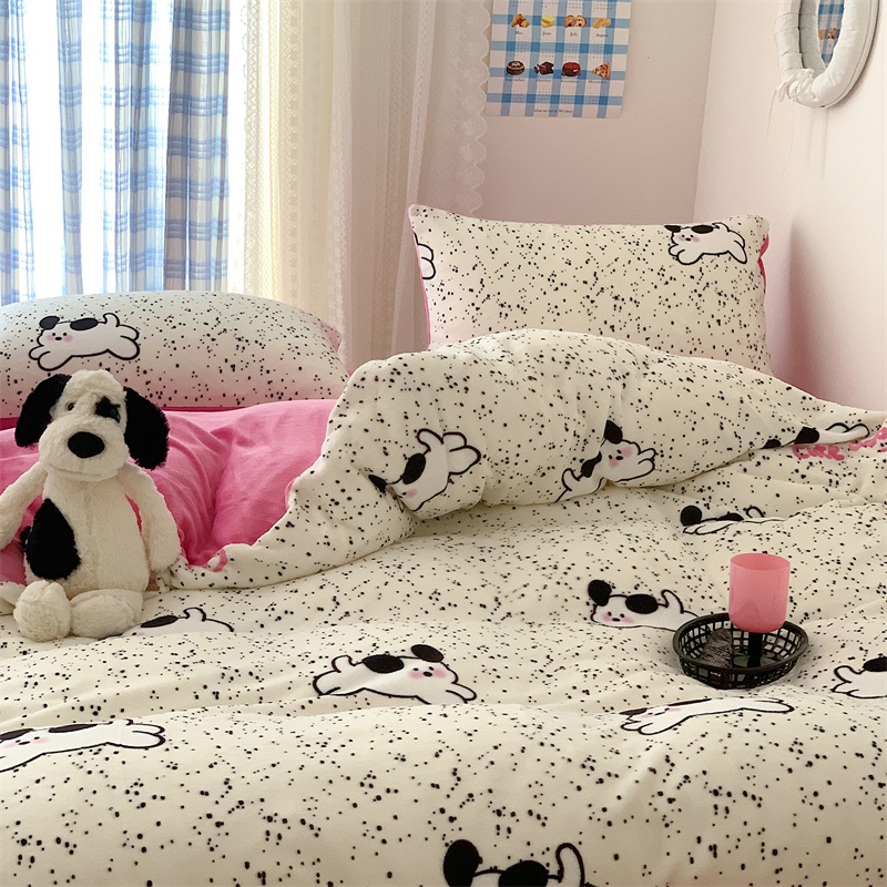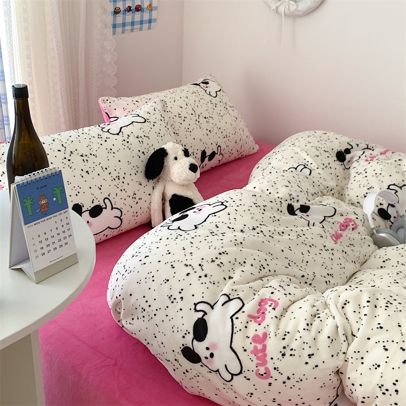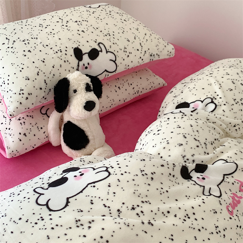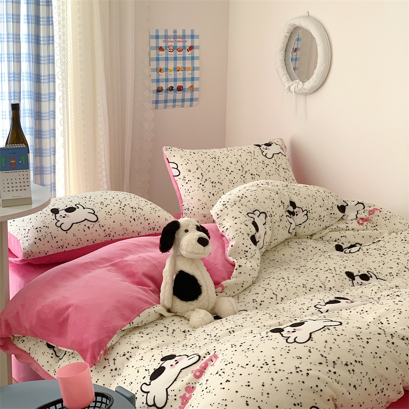 美乐迪家纺 2023秋冬新款保暖牛奶绒四件套 可爱小狗