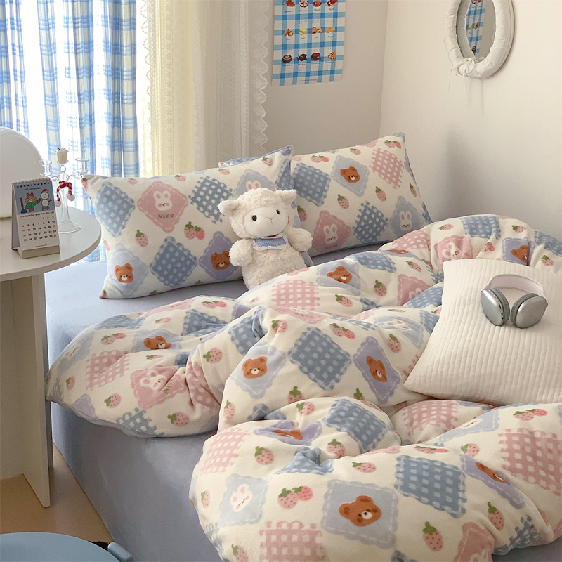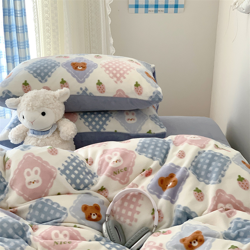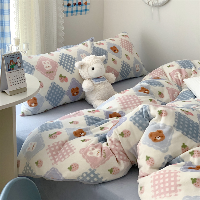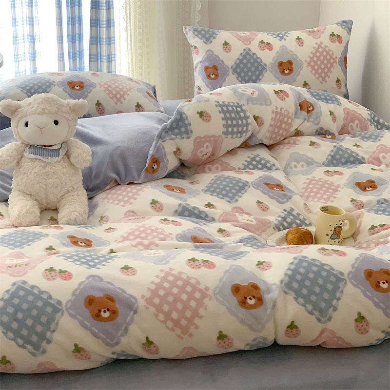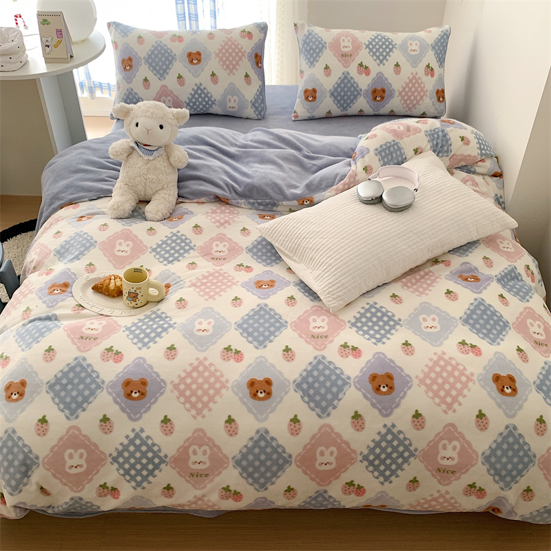 美乐迪家纺 2023秋冬新款保暖牛奶绒四件套 兔与熊