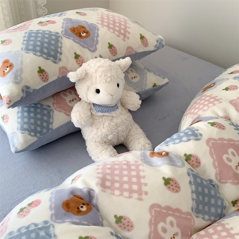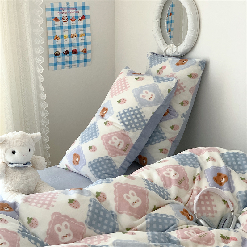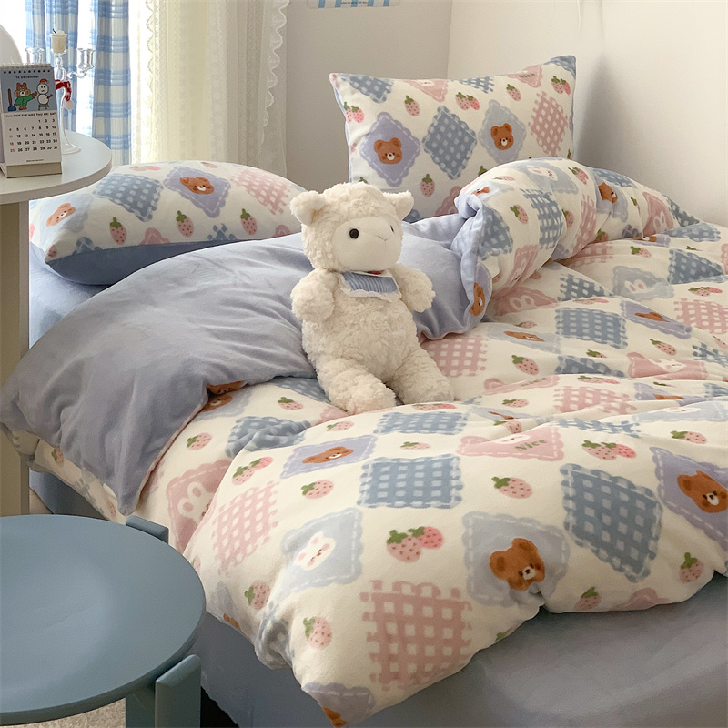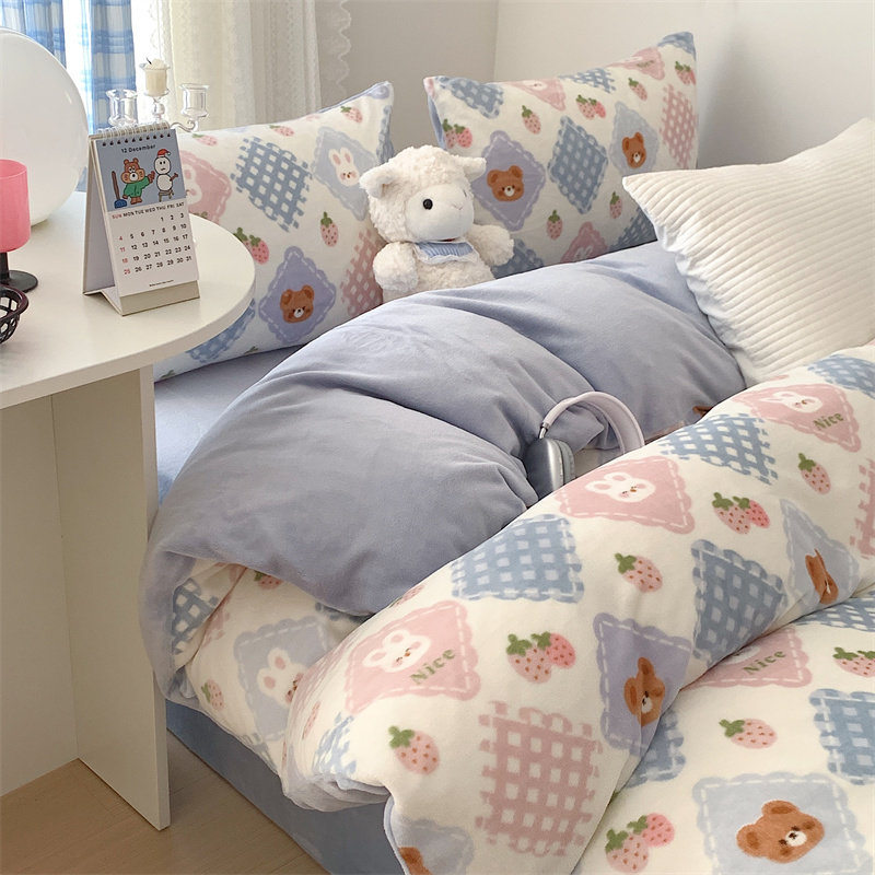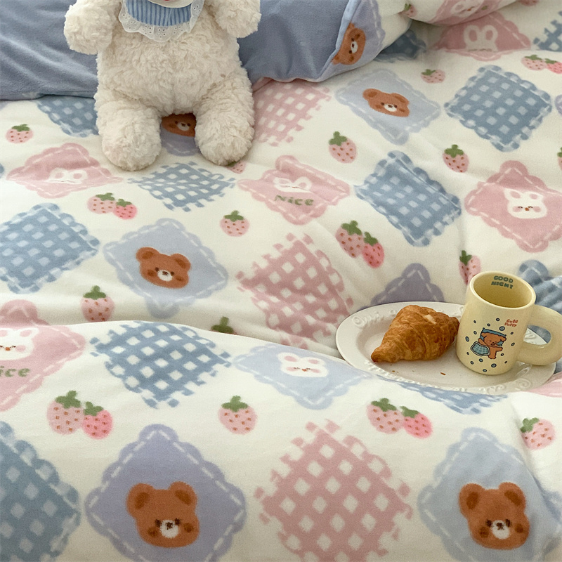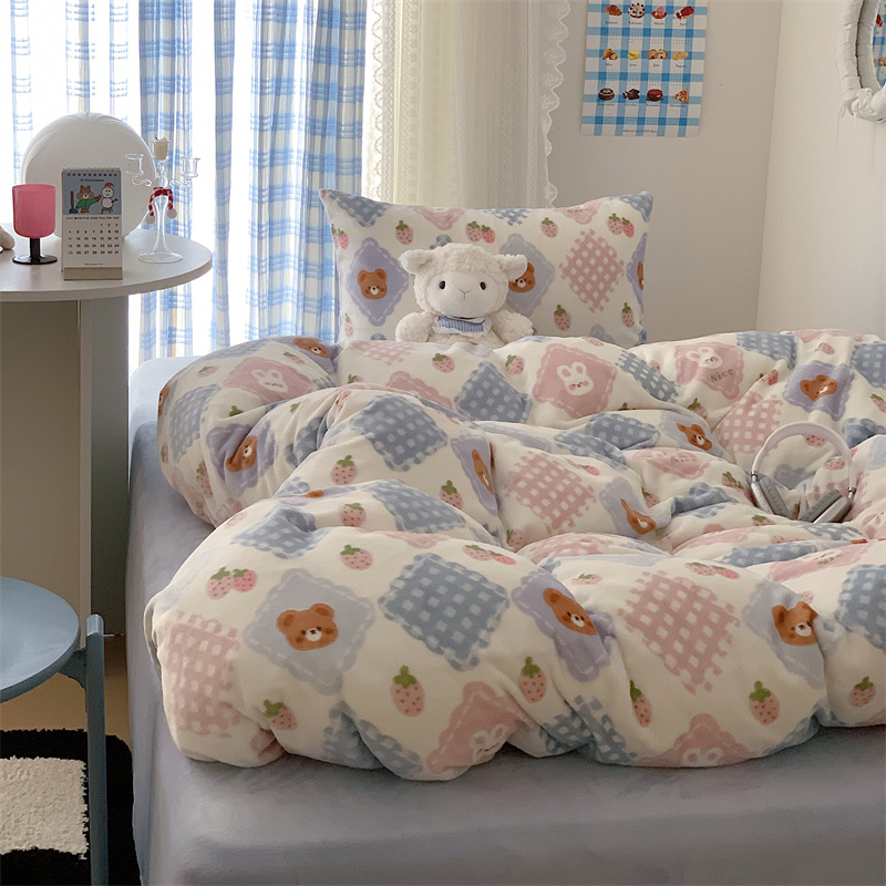 美乐迪家纺 2023秋冬新款保暖牛奶绒四件套 兔与熊