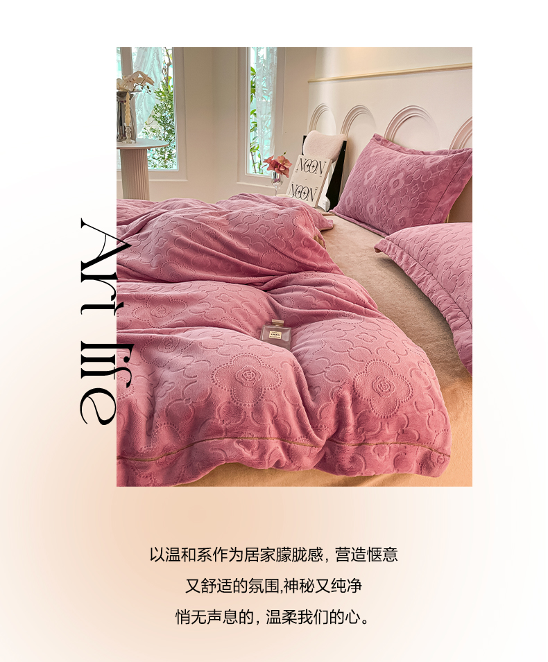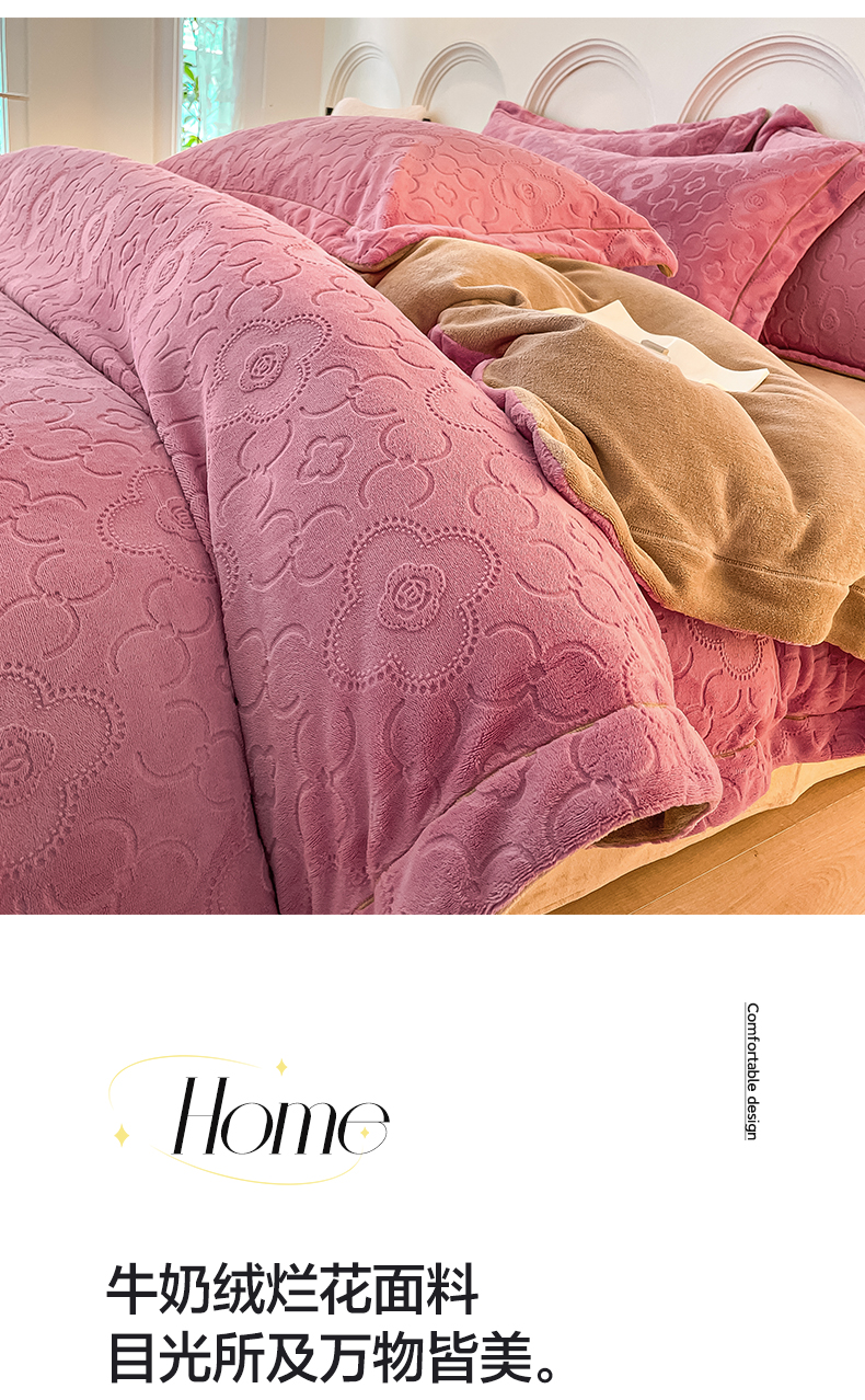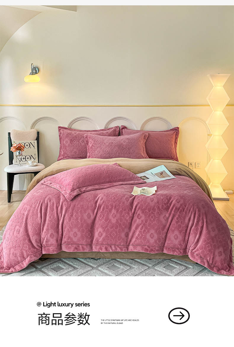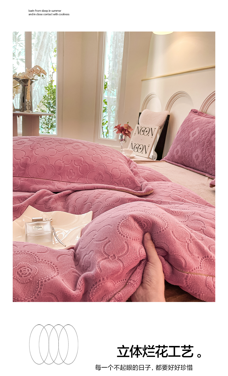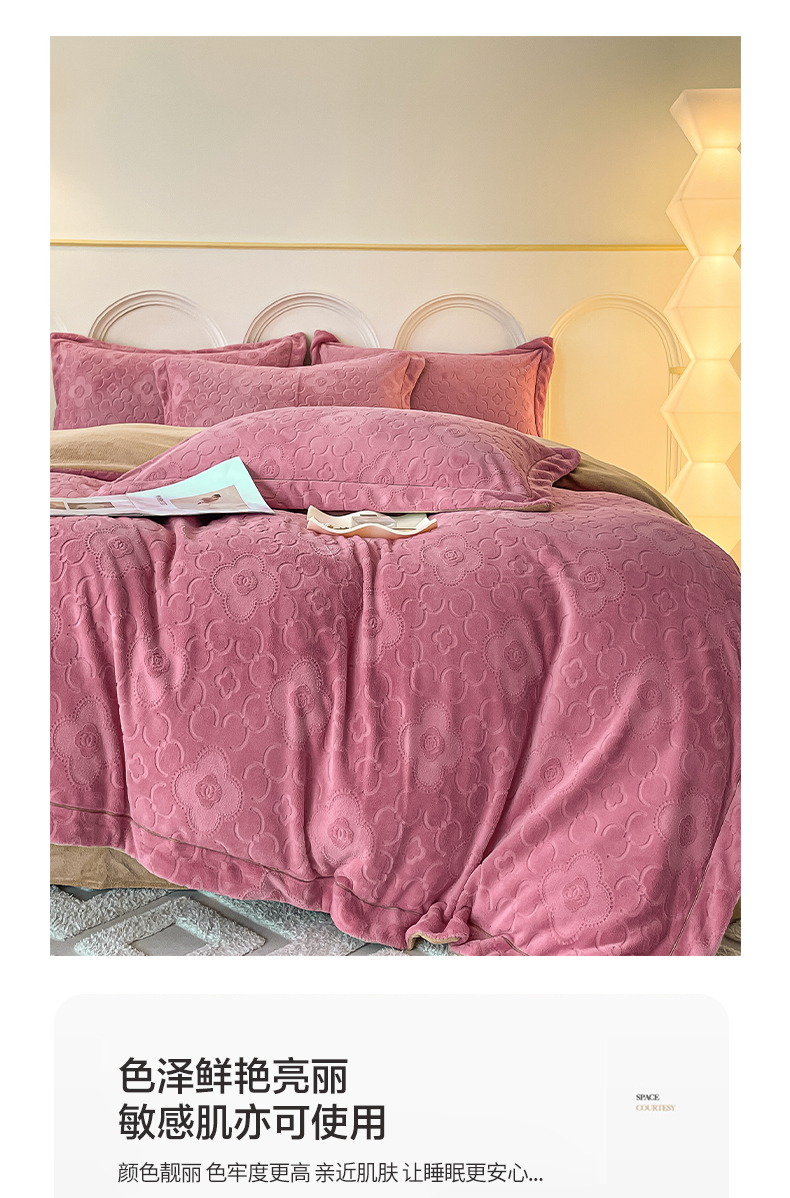当前位置: 91家纺网 > 商品网购 > 床品套件 > 四件套 > 牛奶绒四件套 > 金麦家纺 2023新款舒适320克烂花牛奶绒四件套 典雅玫粉