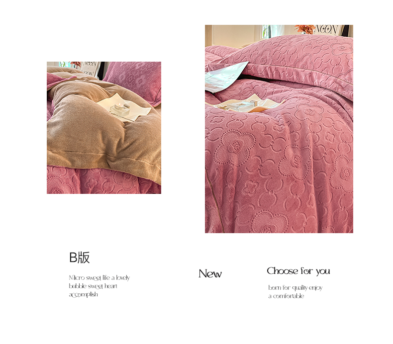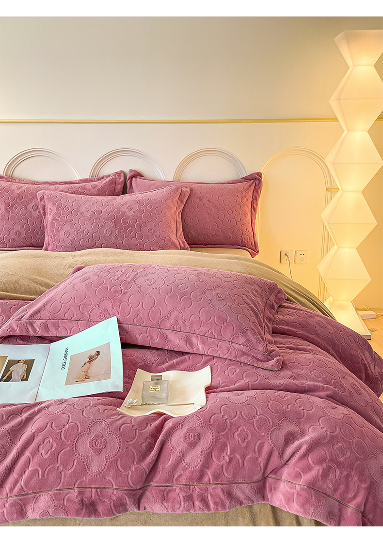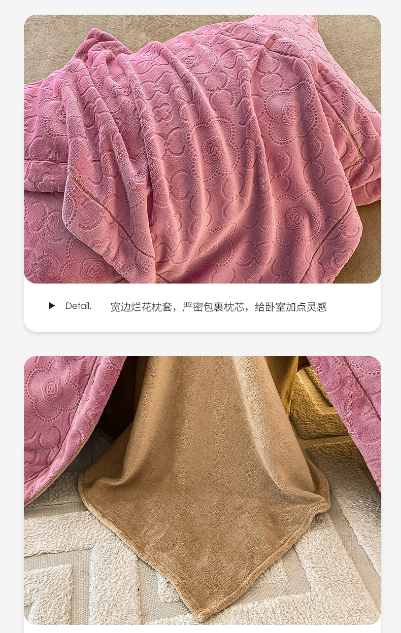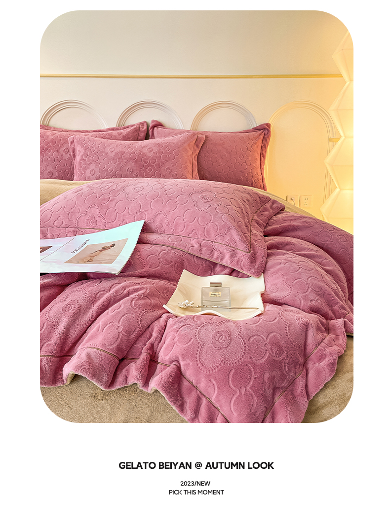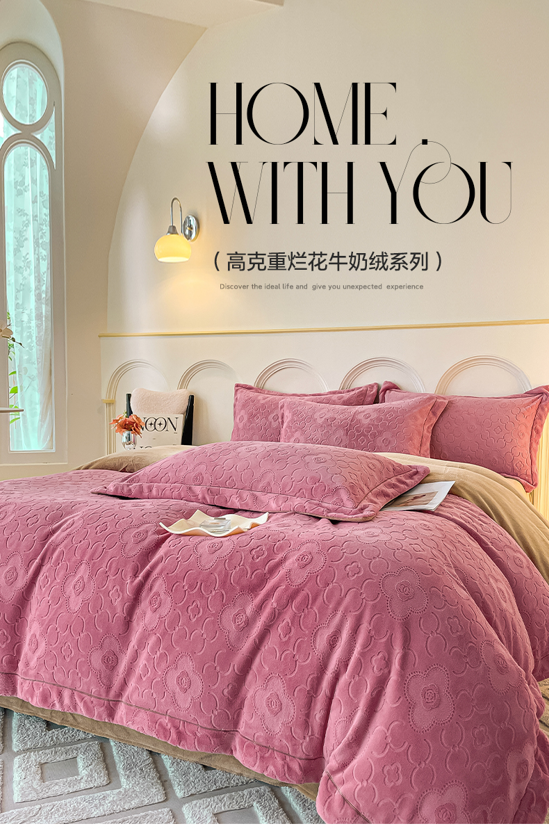 当前位置: 91家纺网 > 商品网购 > 床品套件 > 四件套 > 牛奶绒四件套 > 金麦家纺 2023新款舒适320克烂花牛奶绒四件套 典雅玫粉