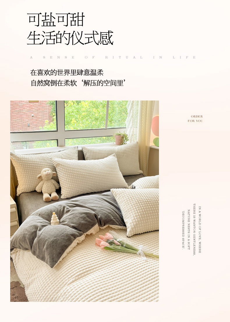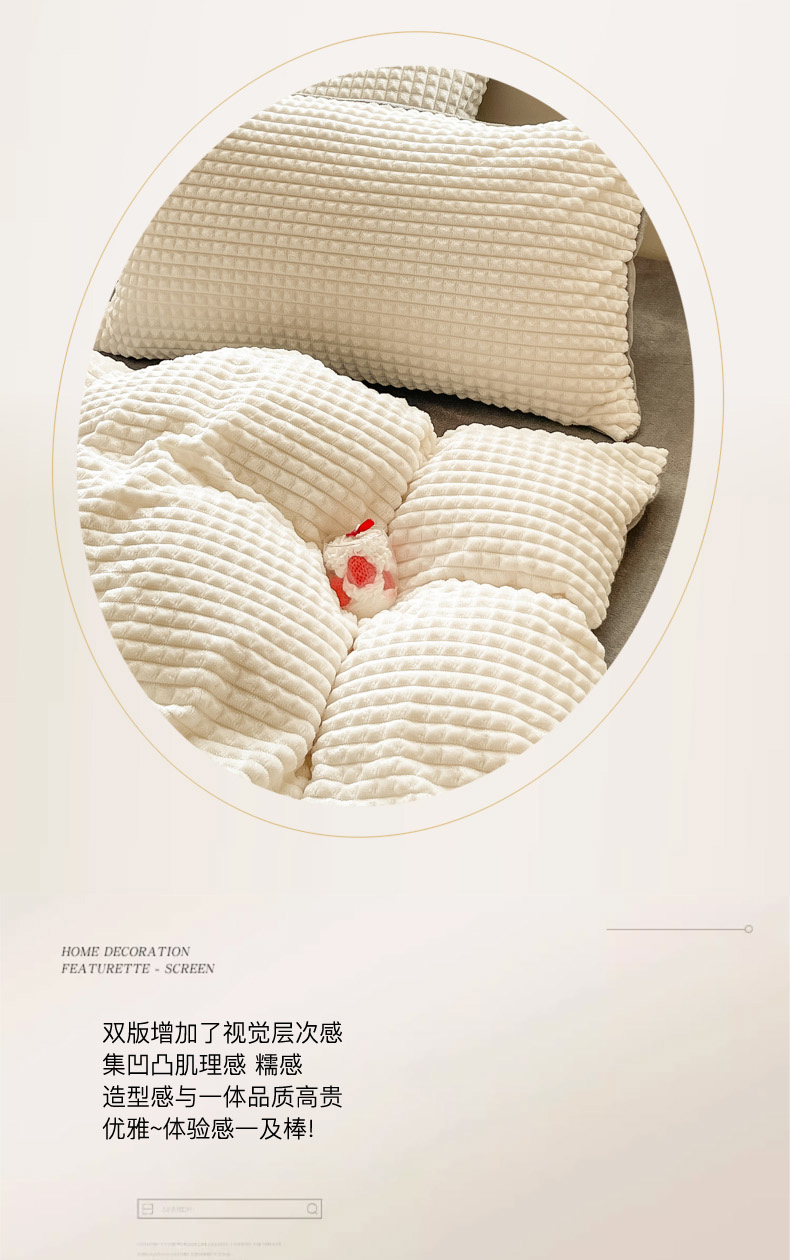 (总)慕澄家纺 2022新款华夫格简约款泡泡四件套,湖水绿,魅惑紫,奶白色,奶黄色,浅豆沙,情调灰,天空蓝,樱花粉