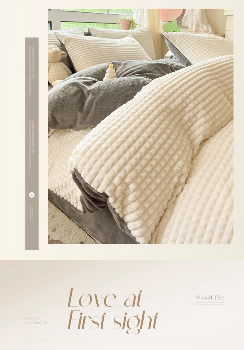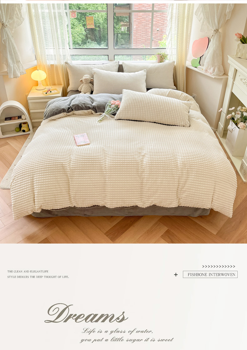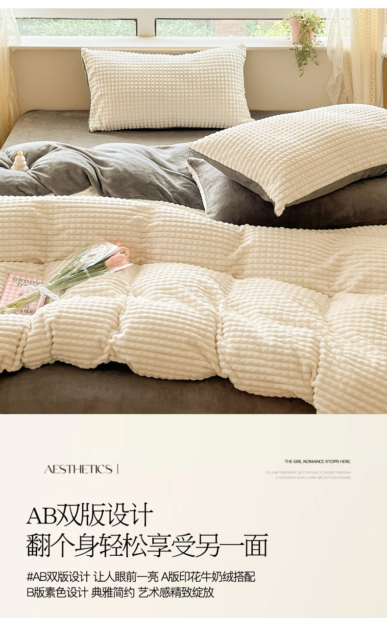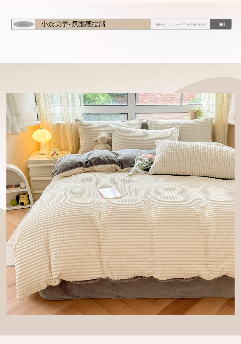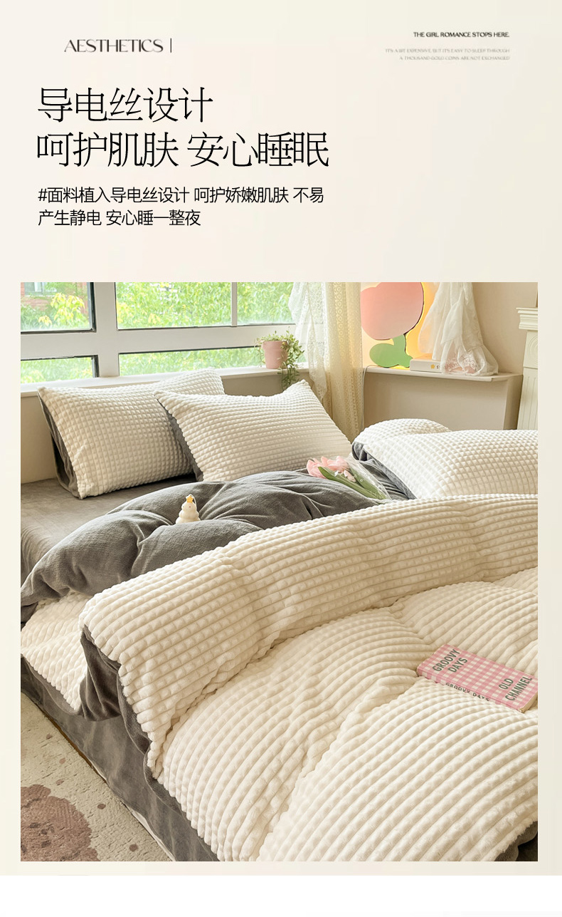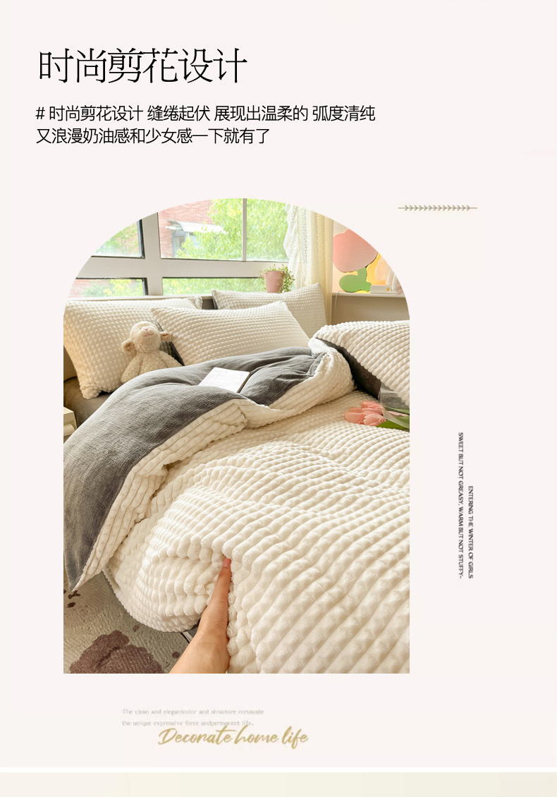 慕澄家纺 2024简约款剪花牛奶绒四件套 简约-白