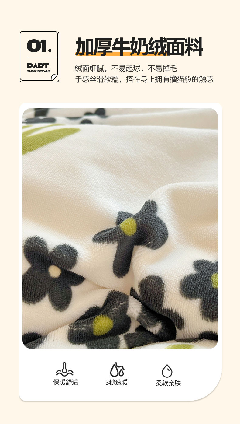 商品名称:康纳利 2023新款印花牛奶绒单被套 小花