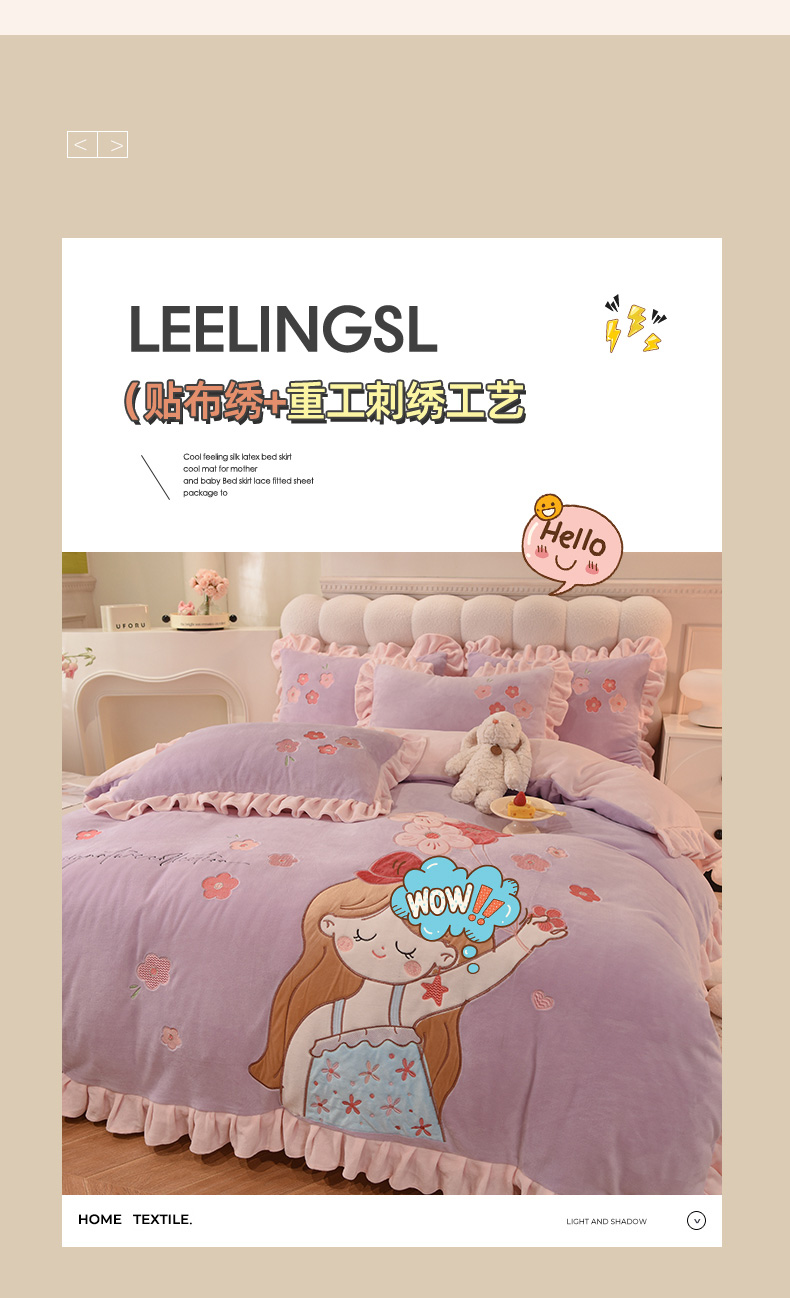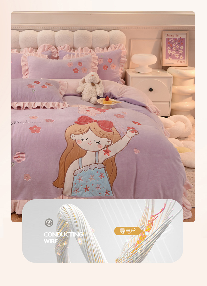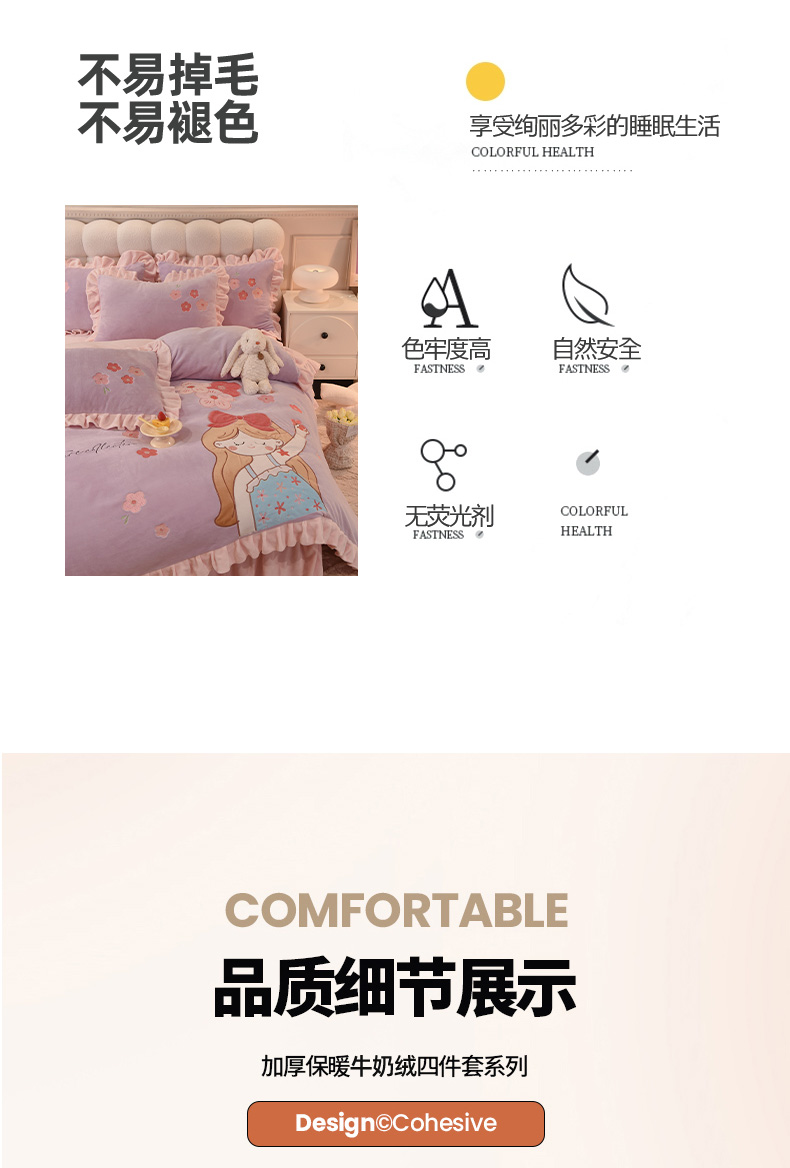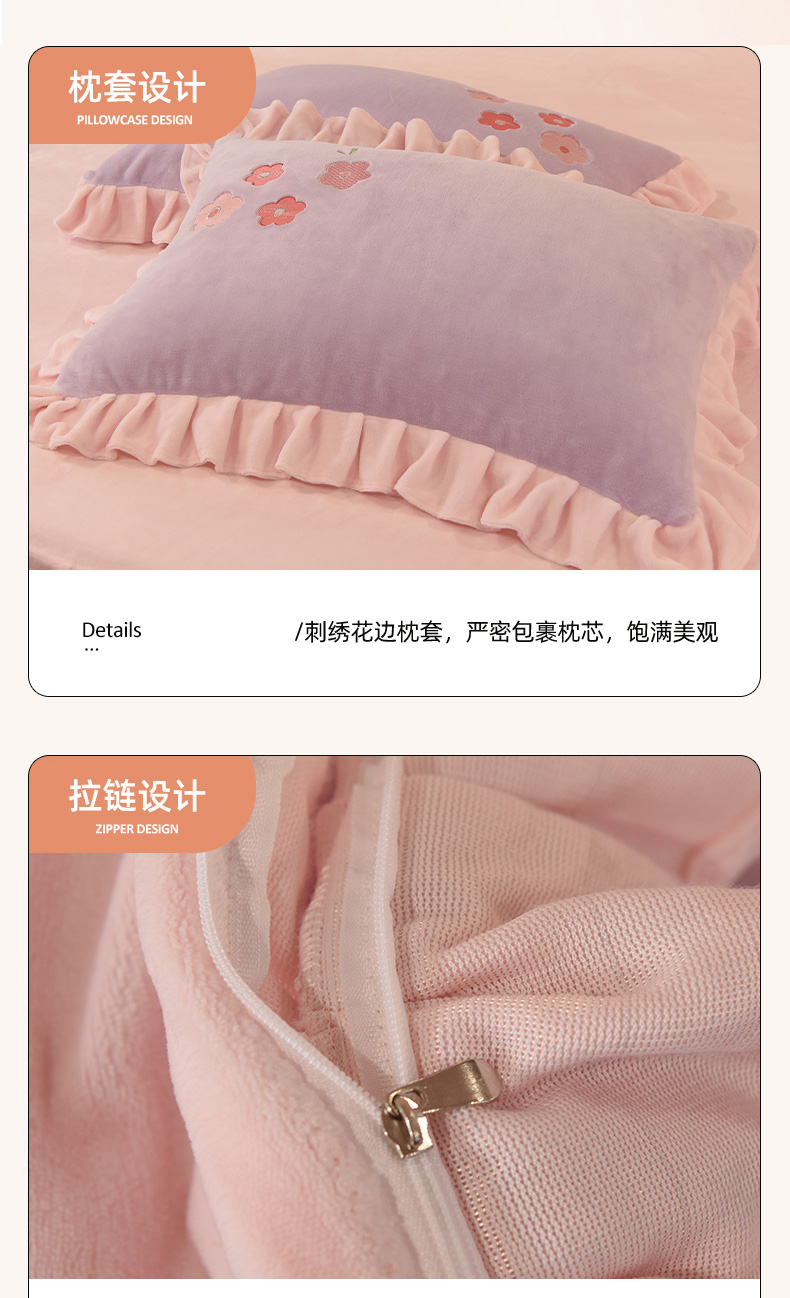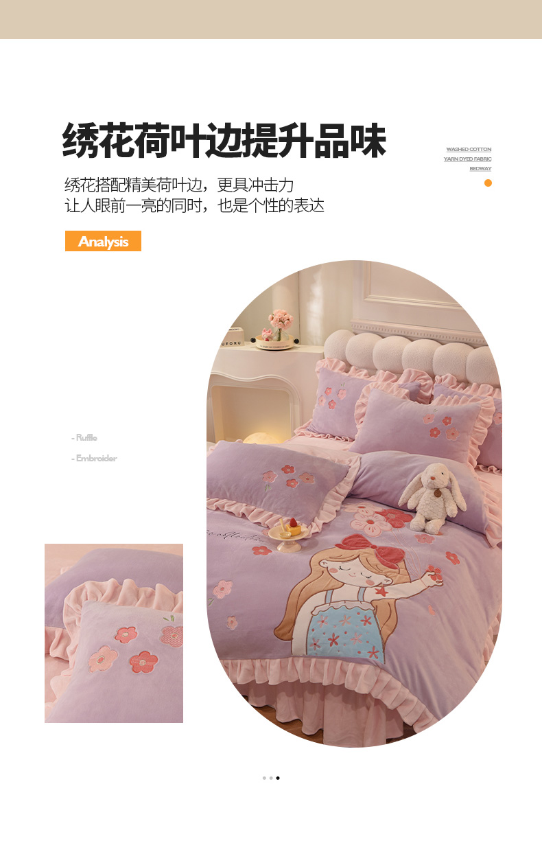 当前位置: 91家纺网 > 商品网购 > 床品套件 > 四件套 > 牛奶绒四件套 > 丝印良品 2023新款高档贴布绣甜心公主牛奶绒四件套 甜心公主-紫粉