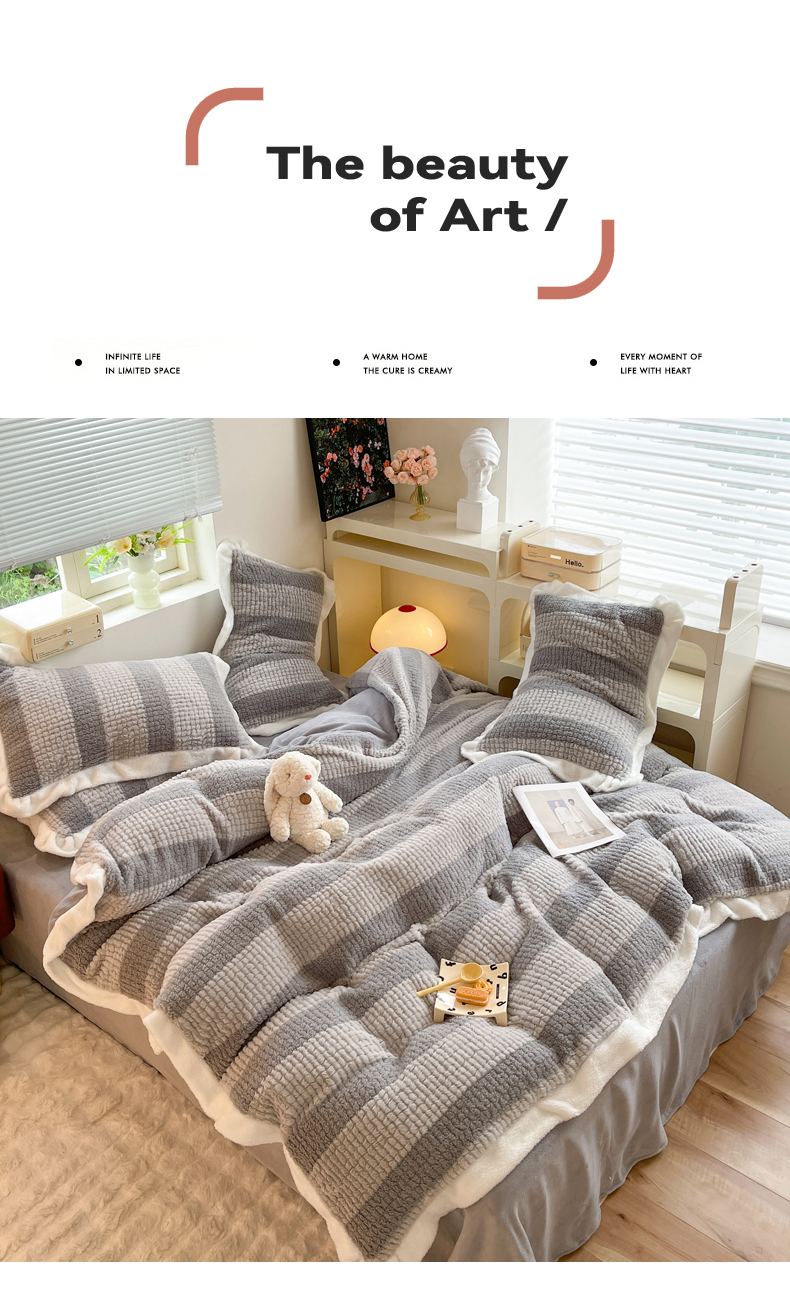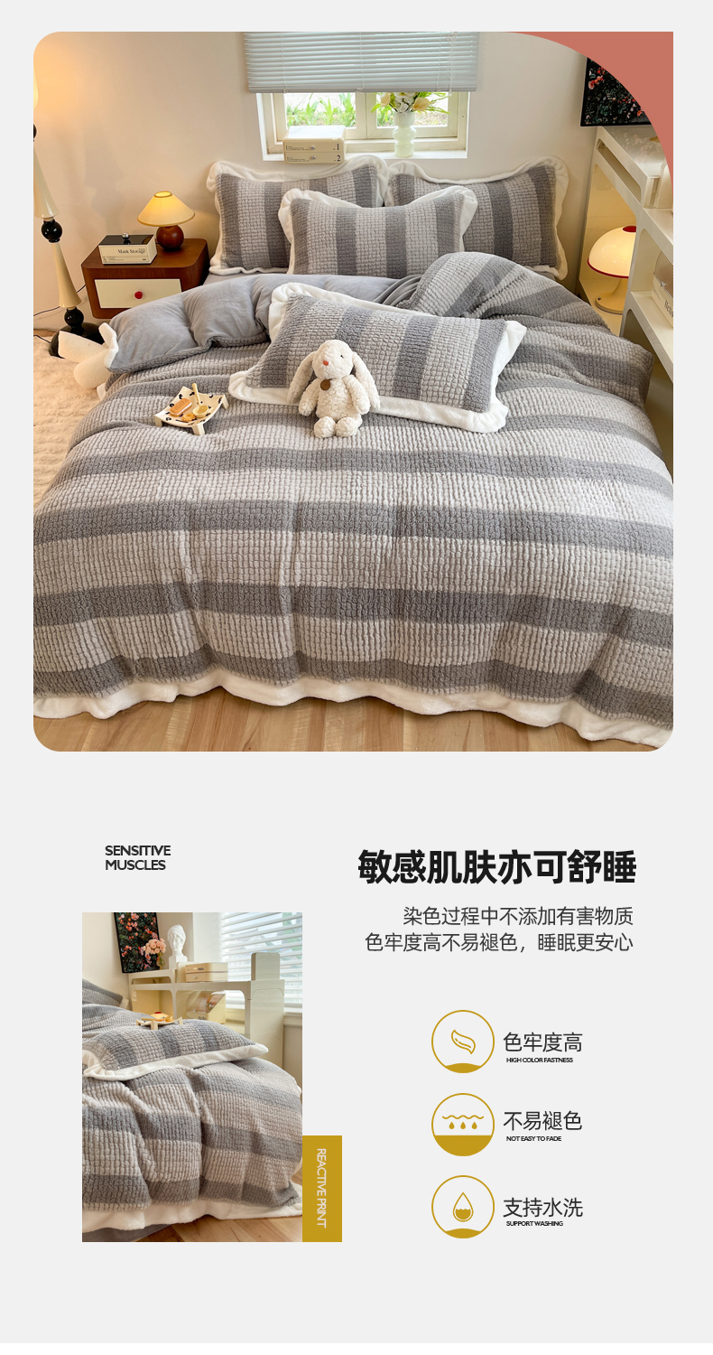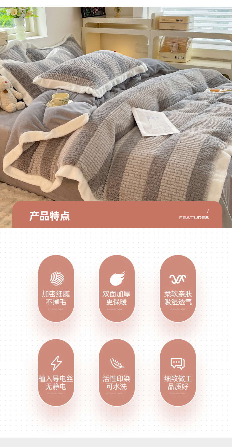 (总)丝印良品 2025新款条纹兔毛绒牛奶绒四件套,魔幻黑,卡其,墨绿,森林绿,雪灰,棕灰