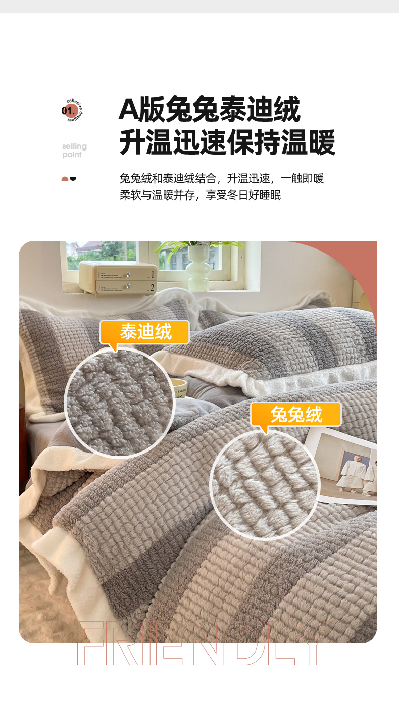 商品名称:丝印良品 2023新款泰迪绒兔绒牛奶绒四件套 泰迪绒-高级灰
