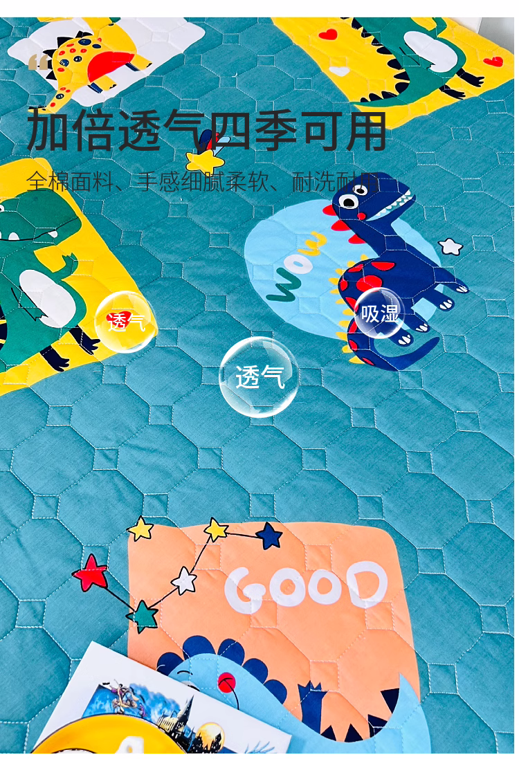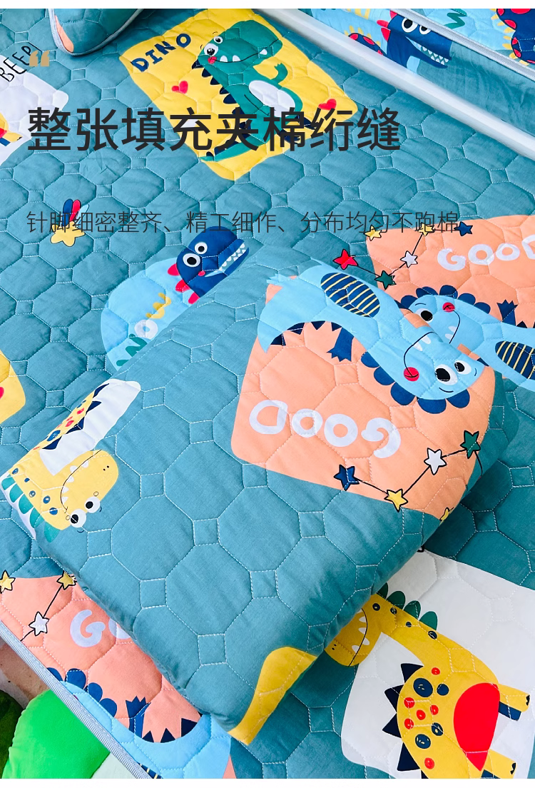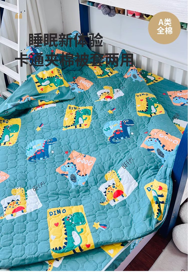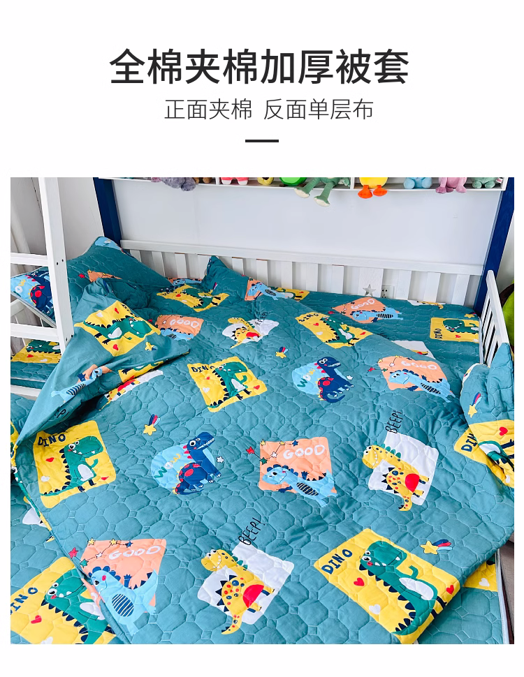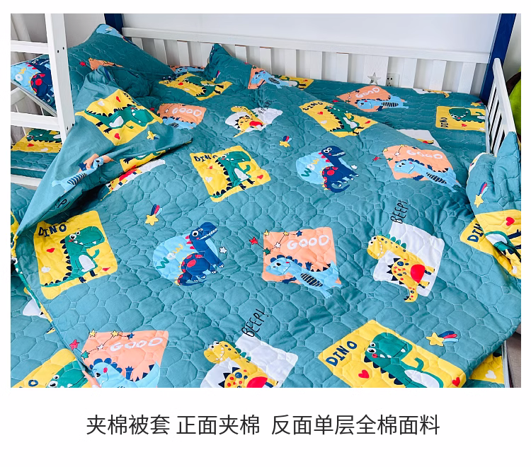 商品名称:小虾米 2023新款全棉卡通上下床夹棉系列被套 恐龙家族绿