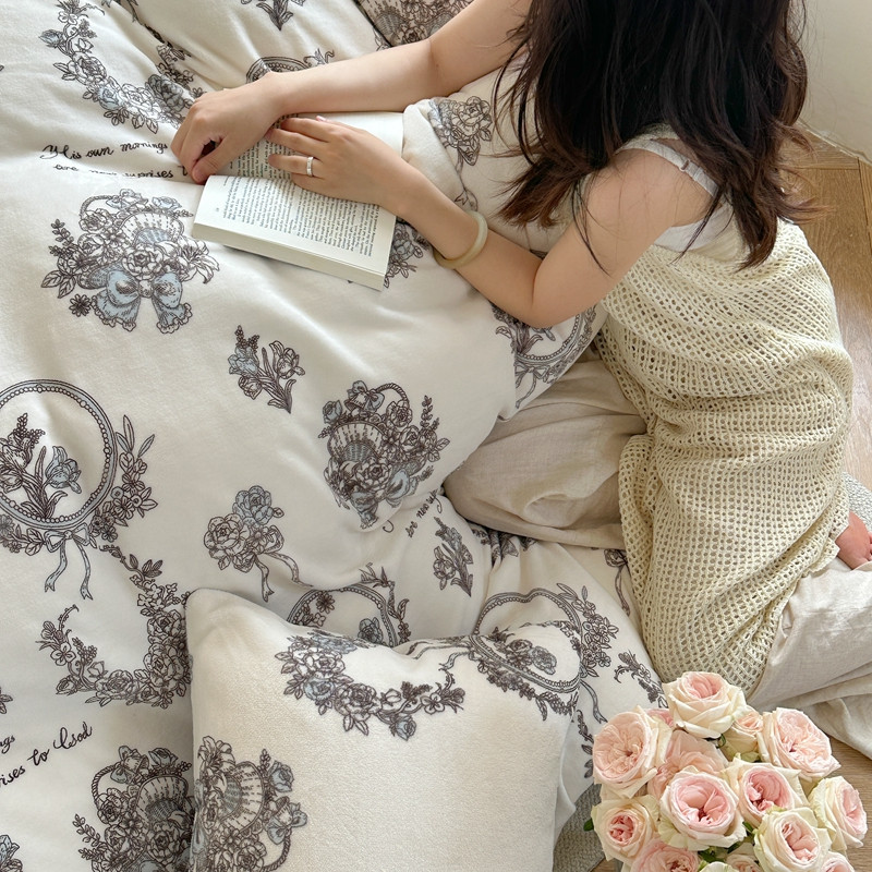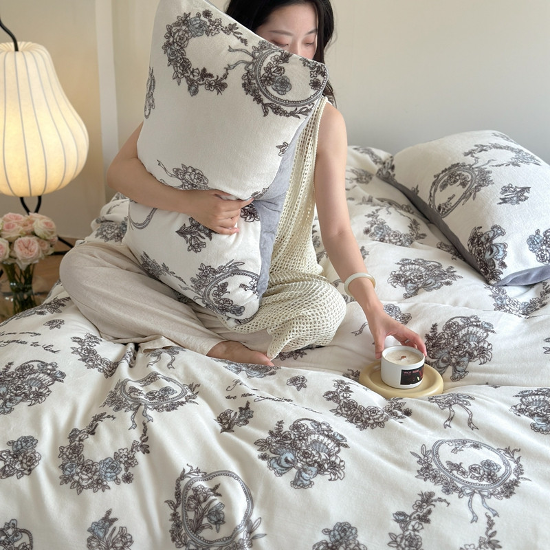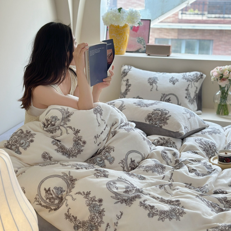 当前位置: 91家纺网 > 商品网购 > 床品套件 > 四件套 > 牛奶绒四件套 > 柚子 2023新款牛奶绒四件套-复古花卉系列 法式花环
