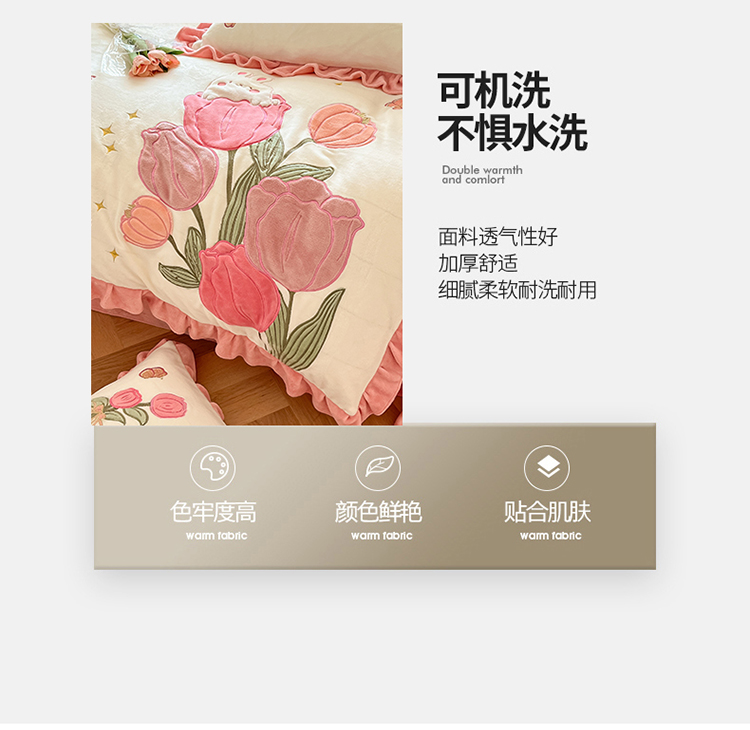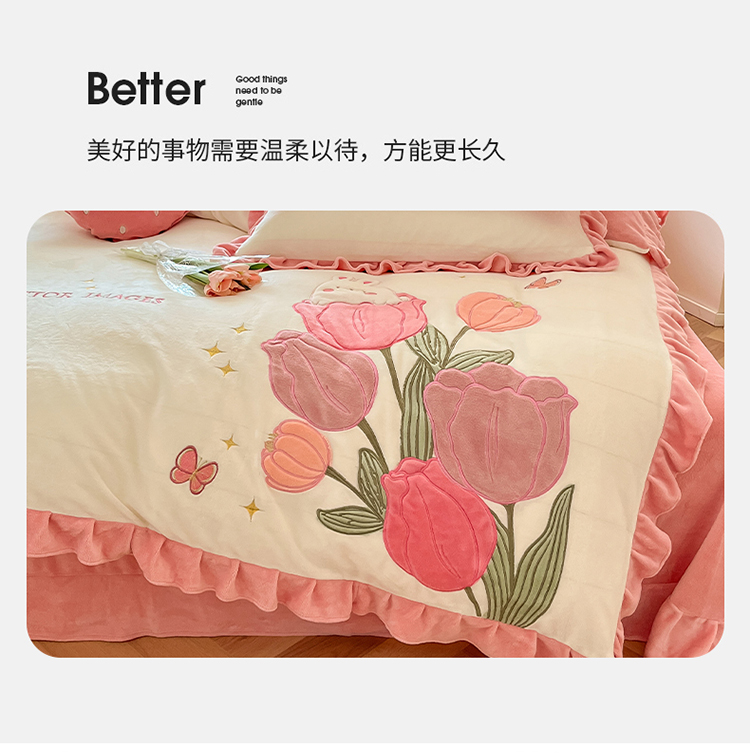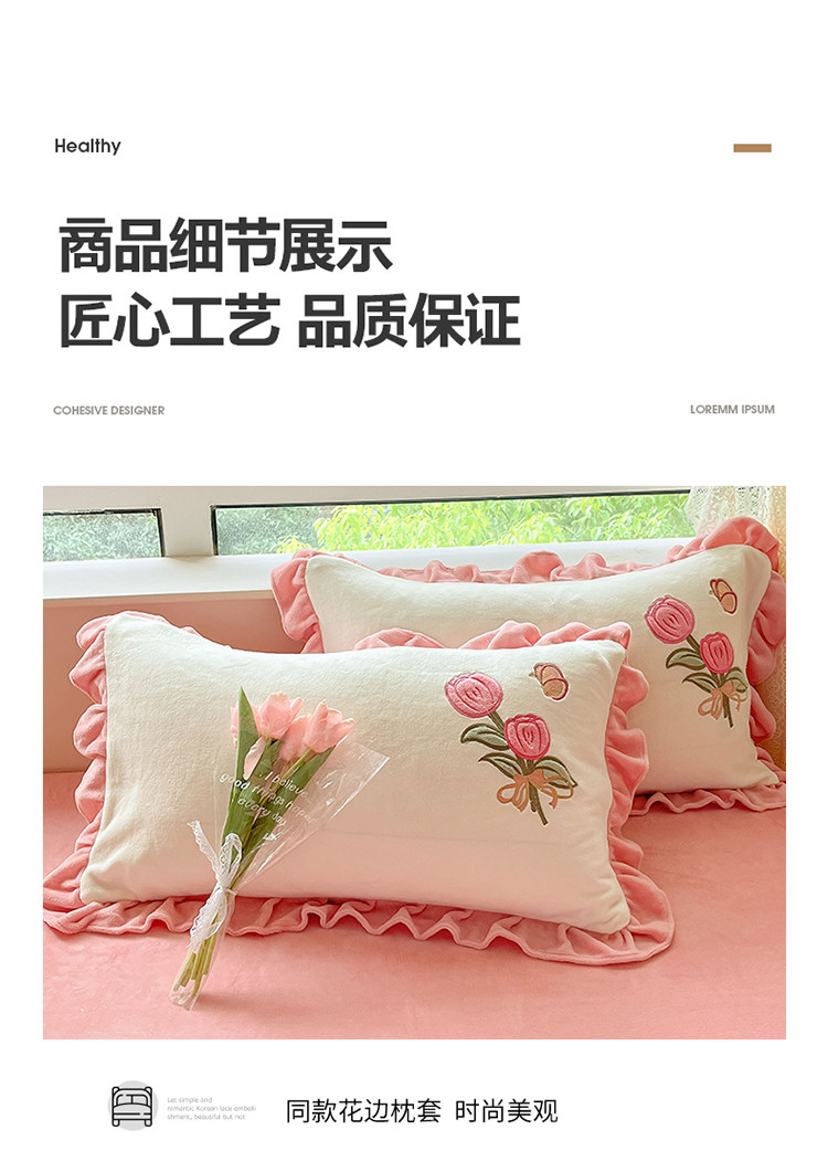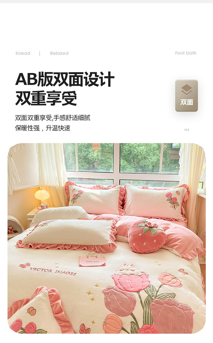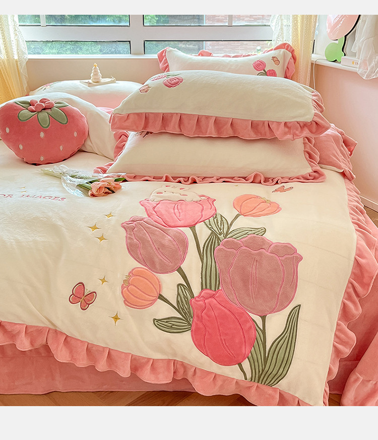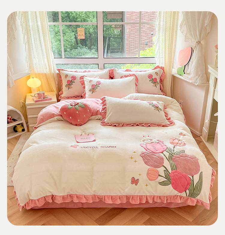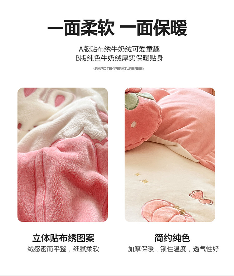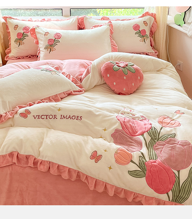 (总)舒梦琪家纺 2024新款加厚牛奶绒夹棉绣床盖四件套12斤左右,粉色,灰色,蓝色,绿色,奶白,紫色