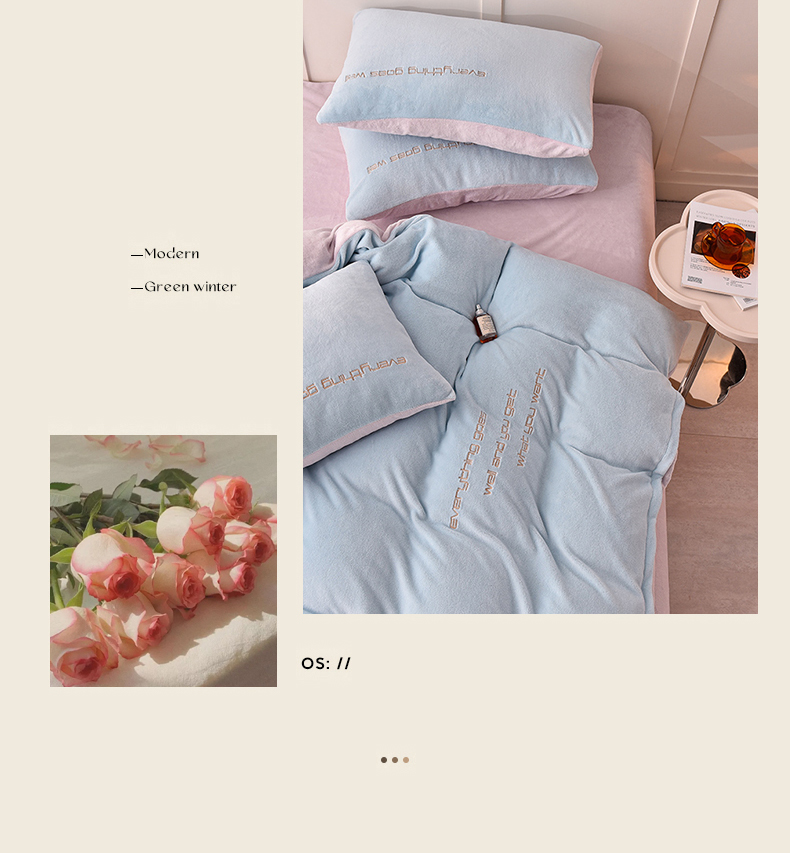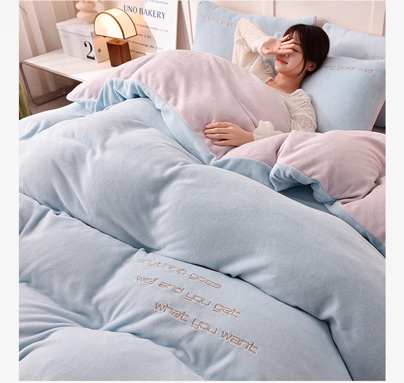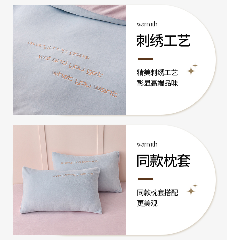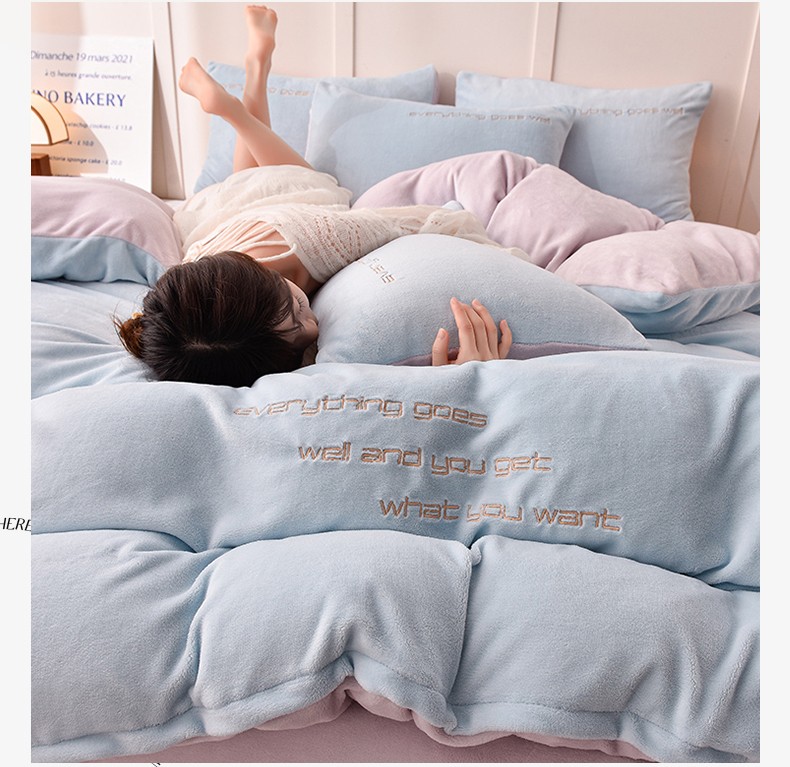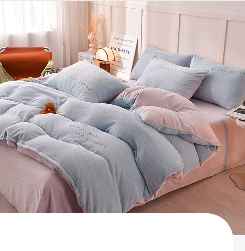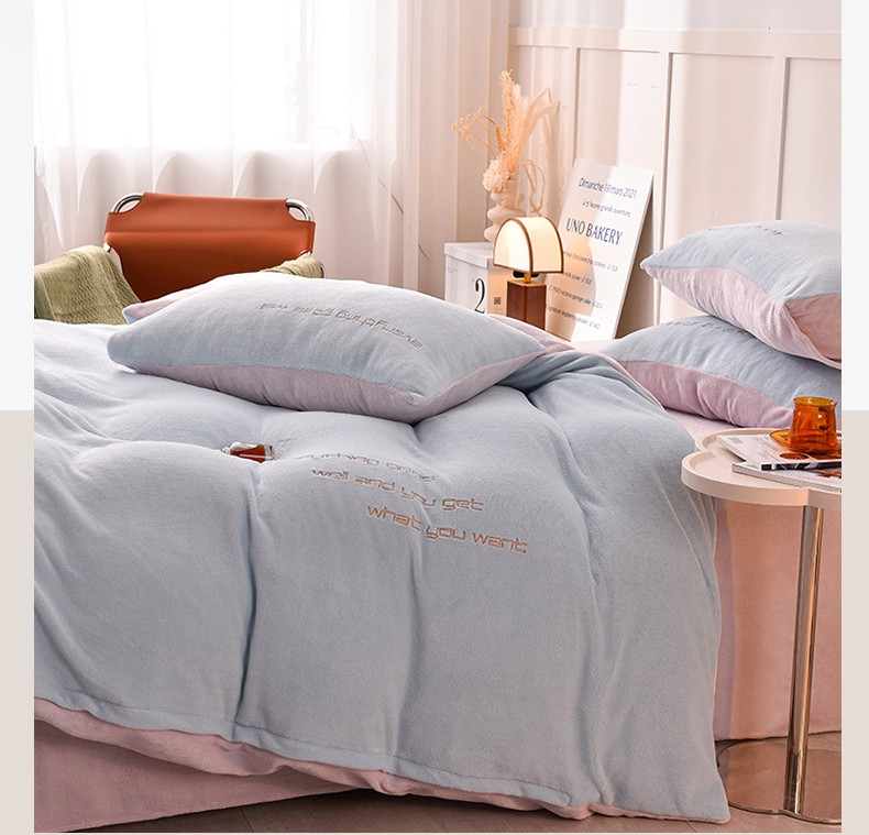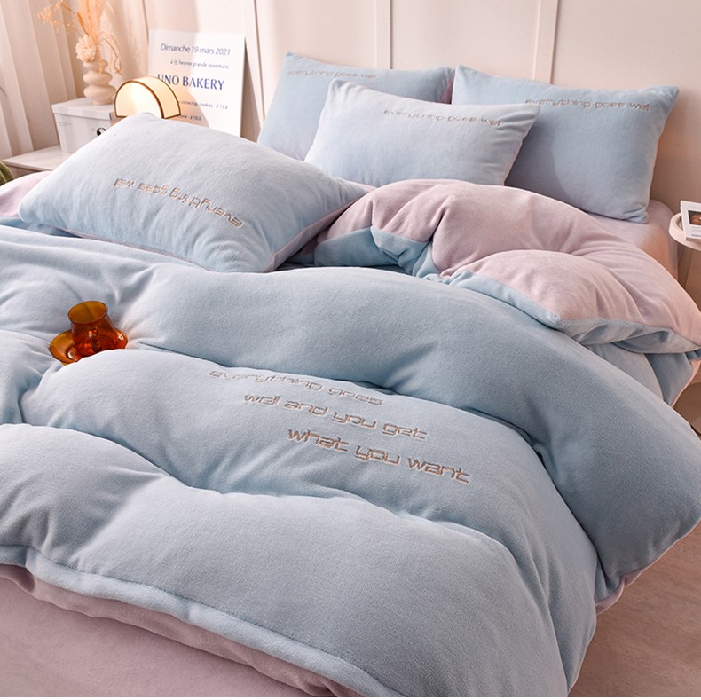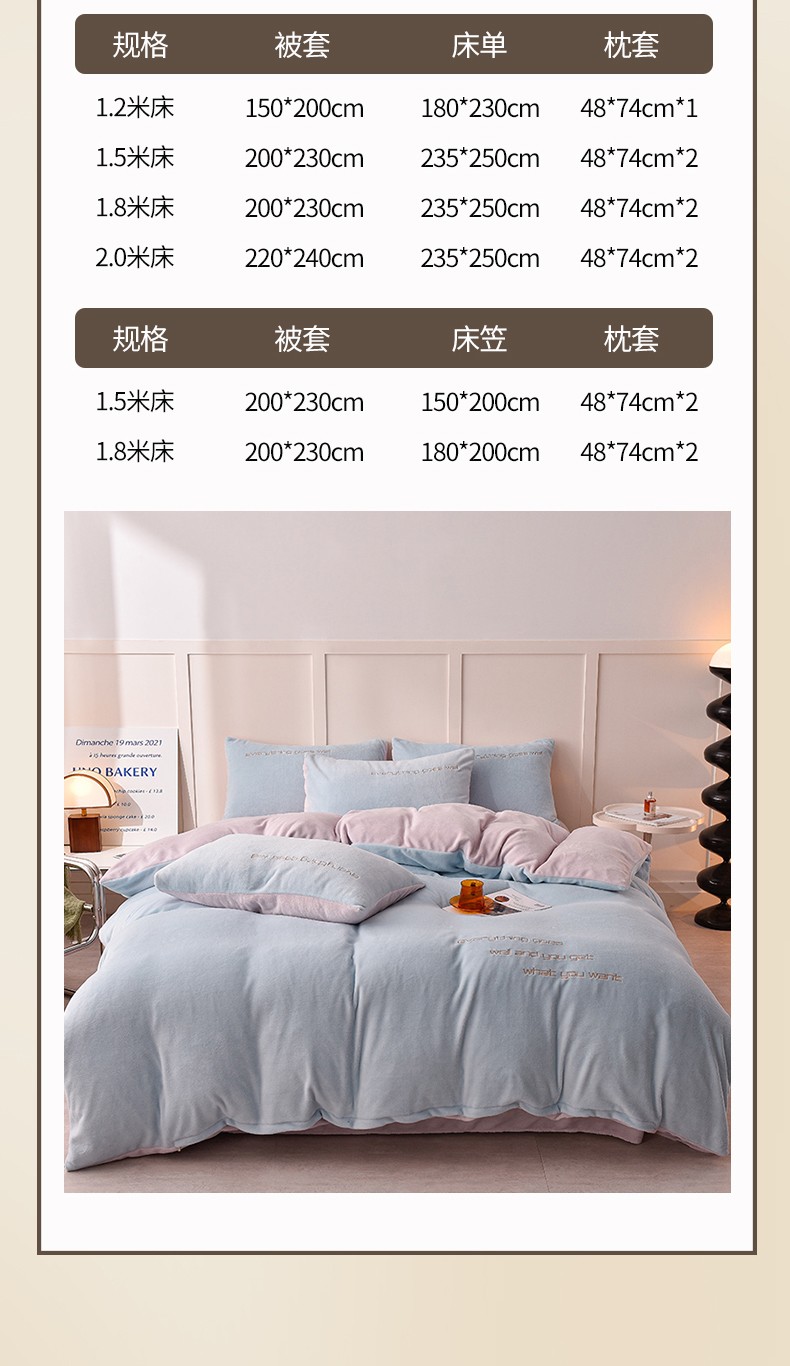 商品名称:米奈 2024新款A类双拼绣花宝宝绒四件套【珂琳】 蓝拼粉