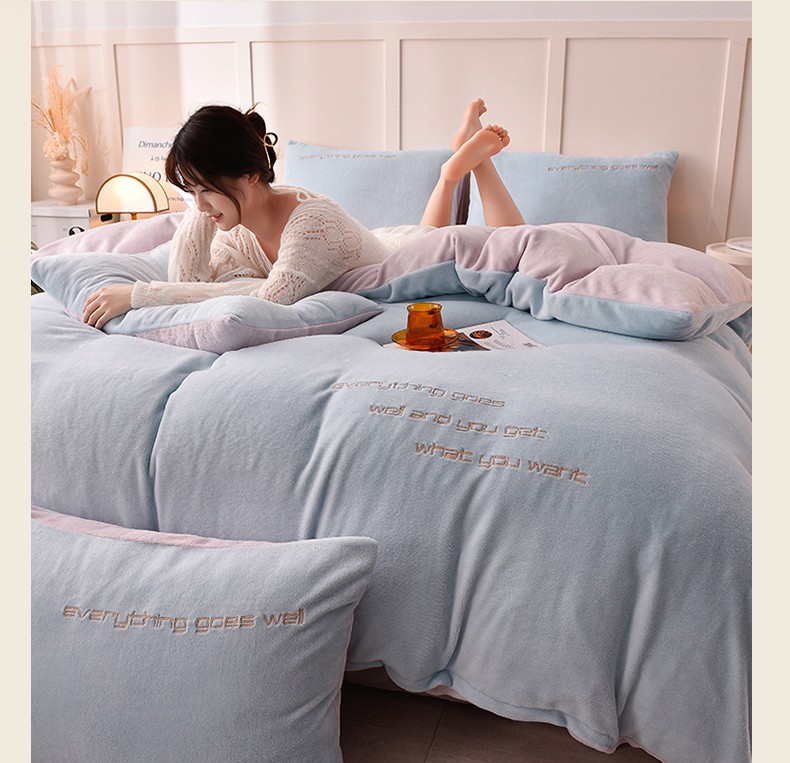 米奈 2024新款A类双拼绣花宝宝绒四件套【珂琳】 蓝拼粉