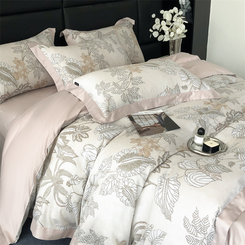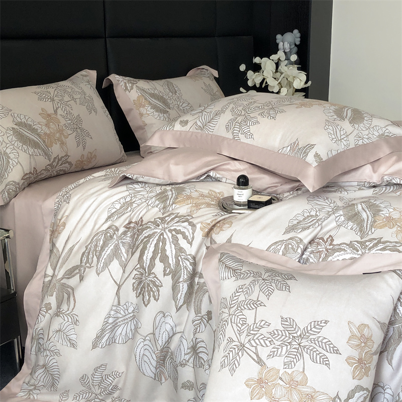 (总)时亿家居 2026新款100支全棉纯棉绣花四件套-至简逸品系列,逸品-粉,逸品-红,逸品-灰,逸品-卡其,逸品-蓝,逸品-香槟