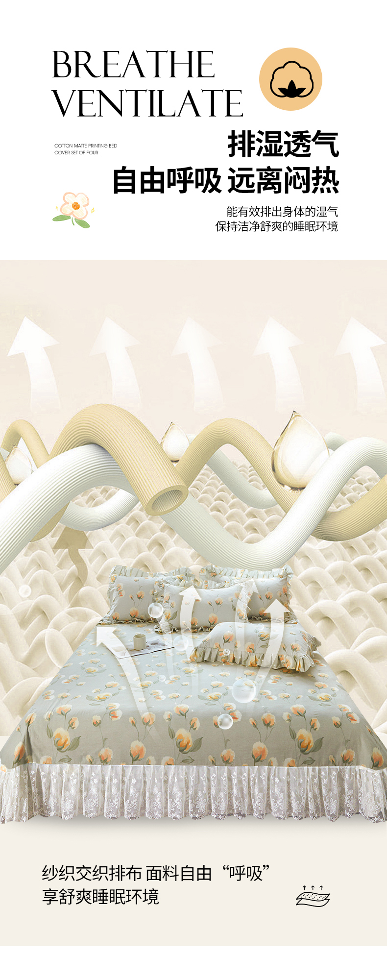 (总)宜凡家纺 2025新款全棉数码印花床裙四件套系列一,静若幽兰,浮云织梦,梦幻花园,陌上花开