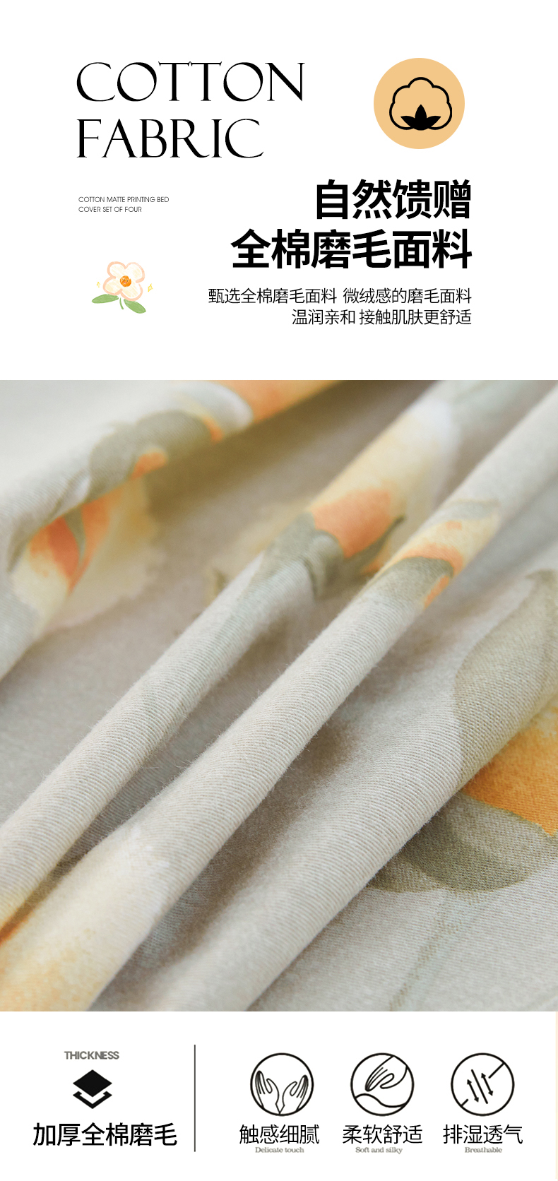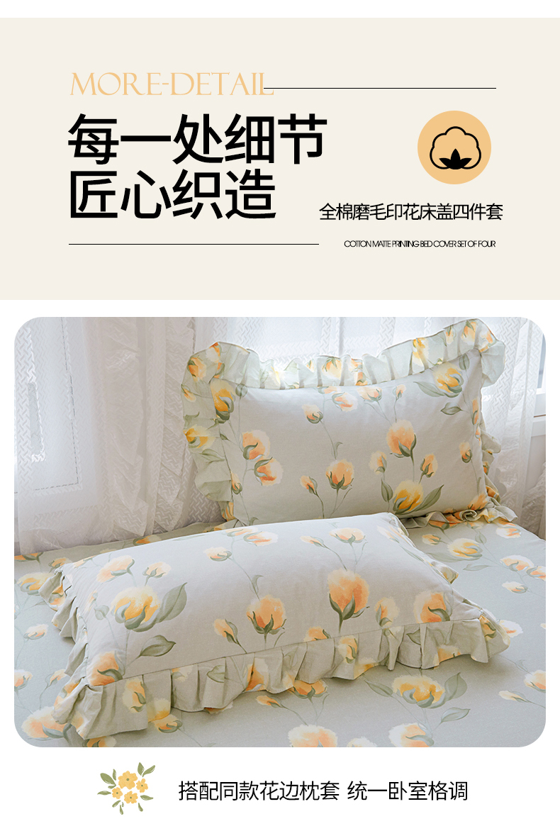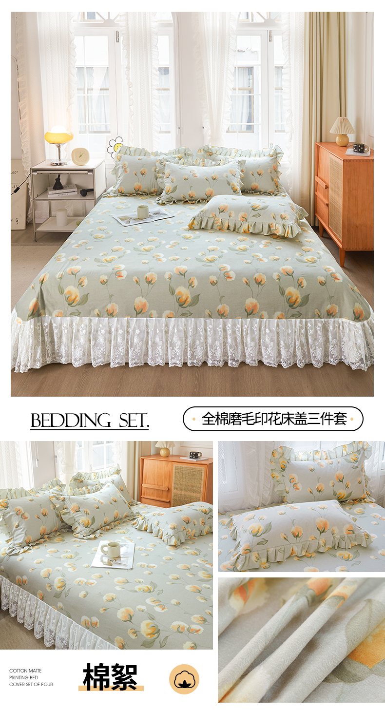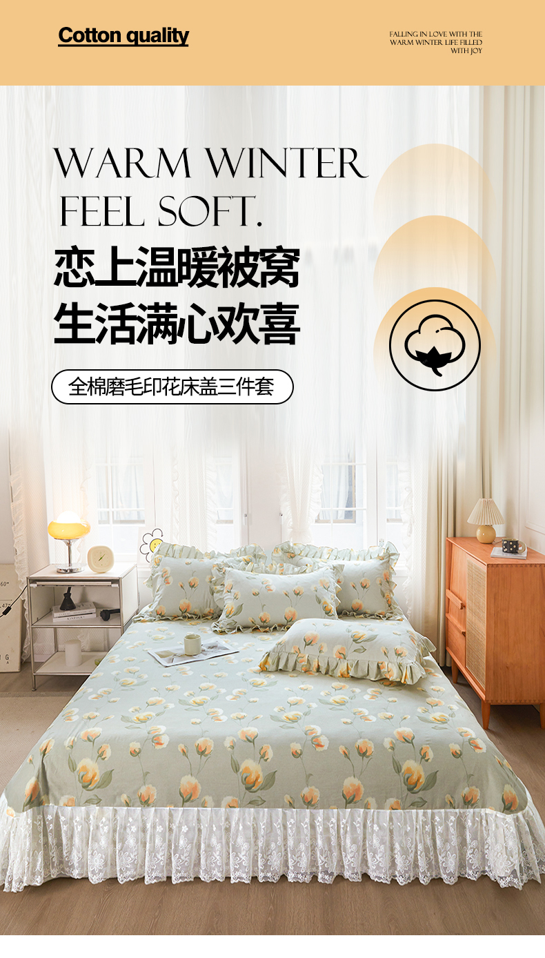 商品名称:宜凡家纺 2023新款全棉加厚磨毛印花床盖三件套 棉絮