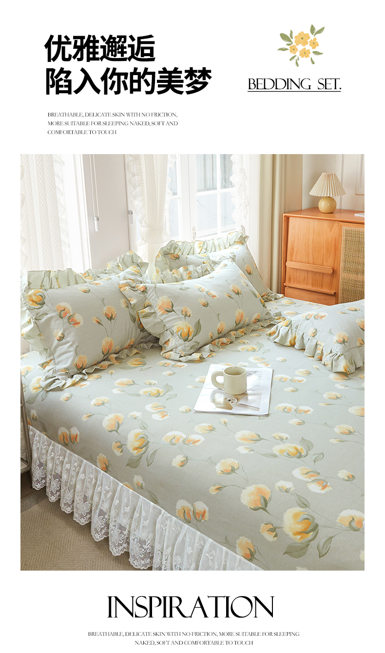 (总)宜凡家纺 2025新款全棉数码印花床裙三件套系列一,静若幽兰,浮云织梦,梦幻花园,陌上花开