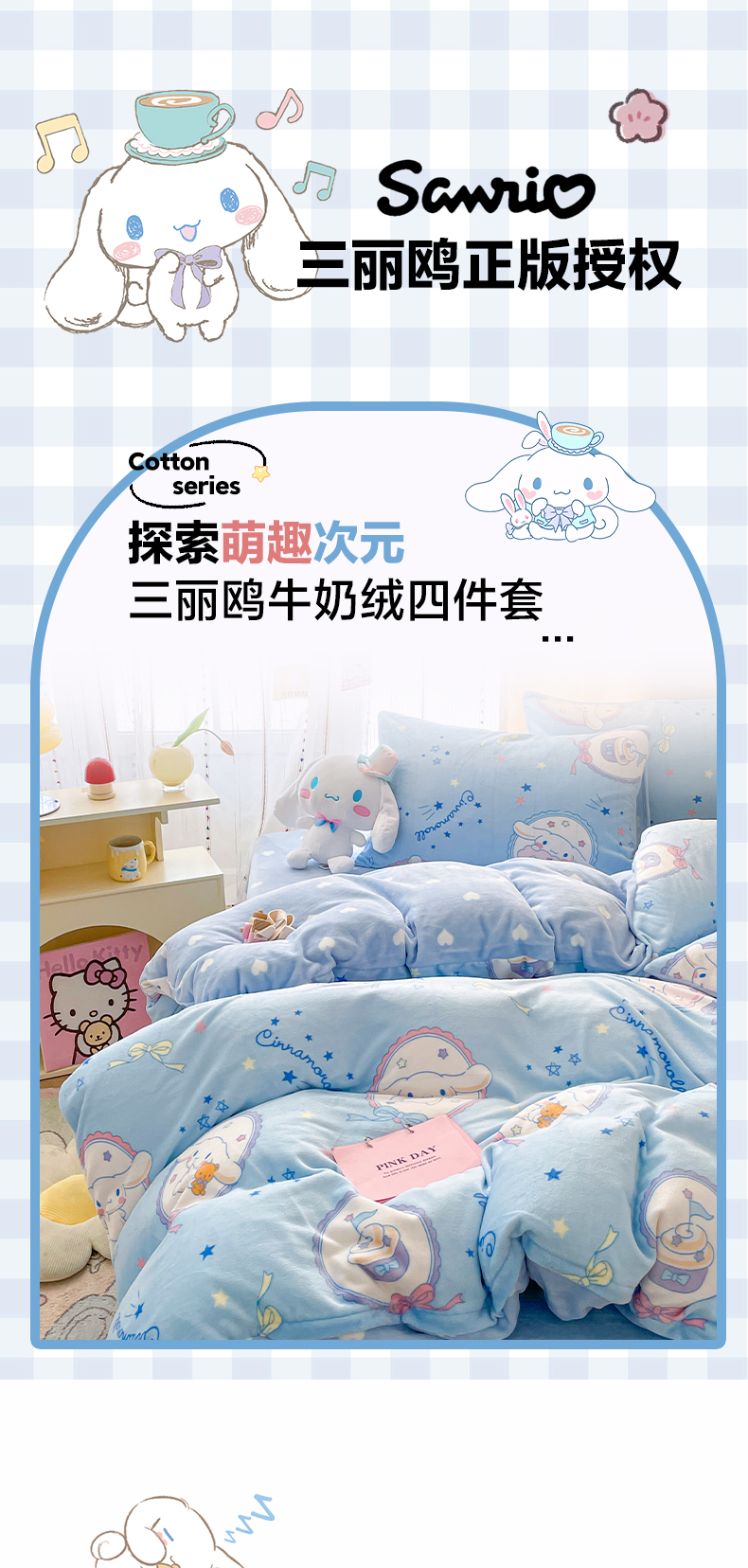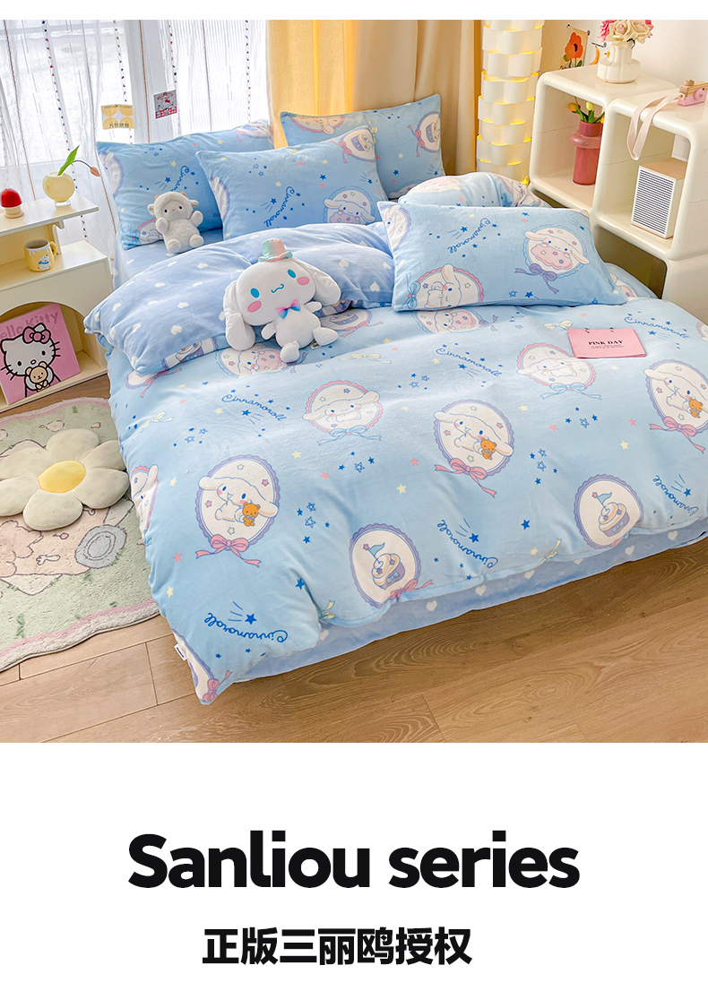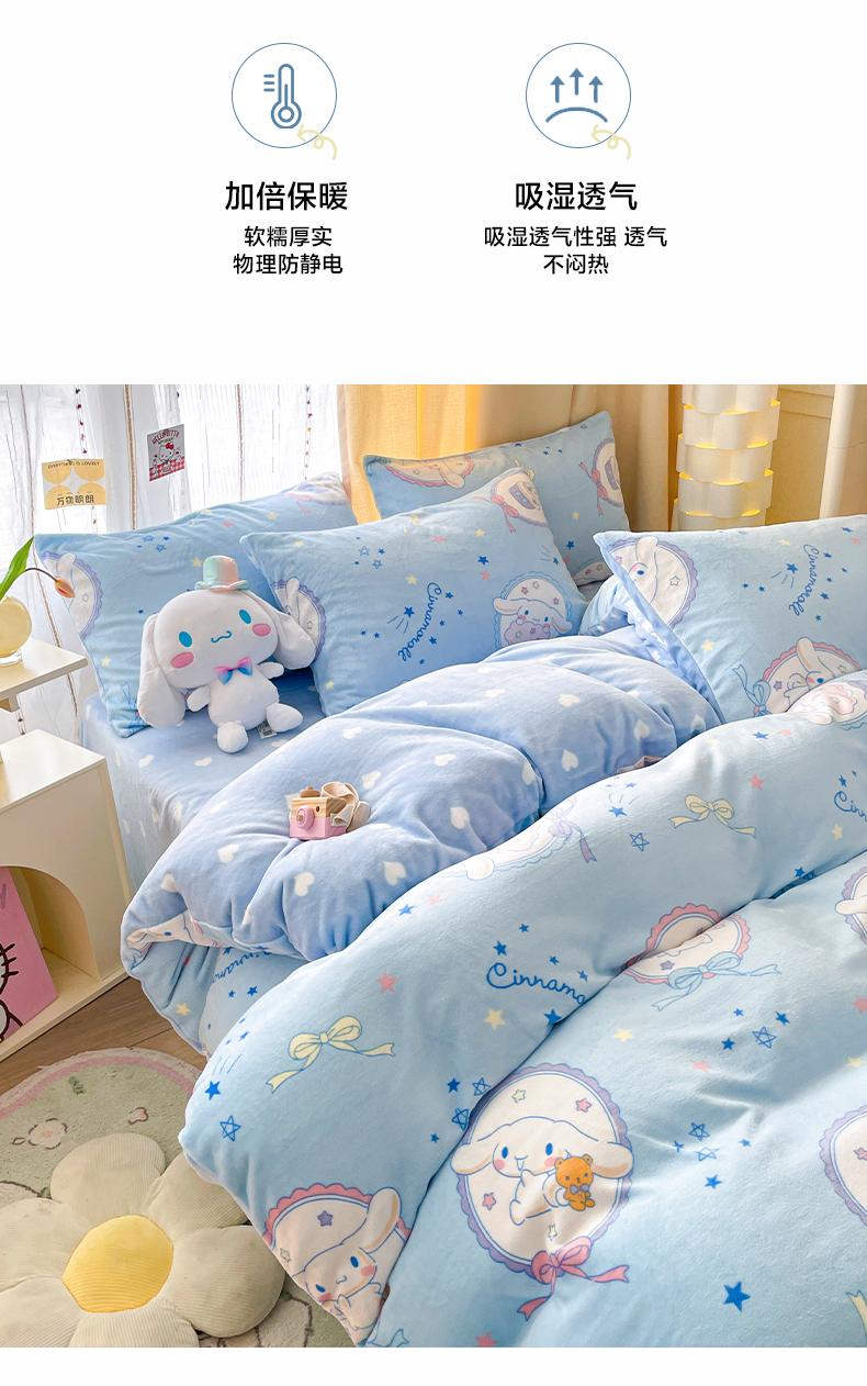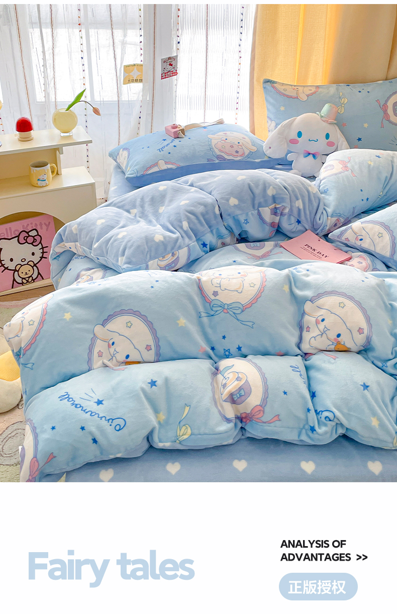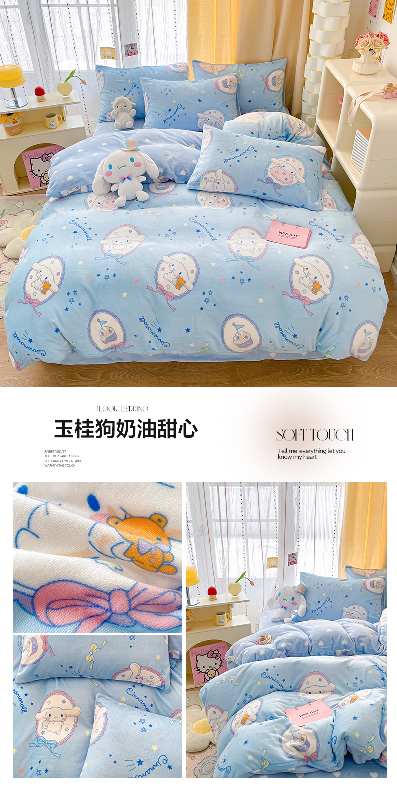博雅 2023三丽鸥正版授权卡通加厚牛奶绒系列四件套 玉桂狗奶油甜心