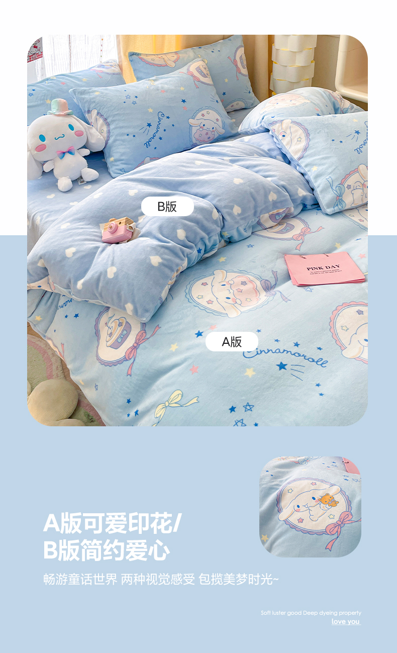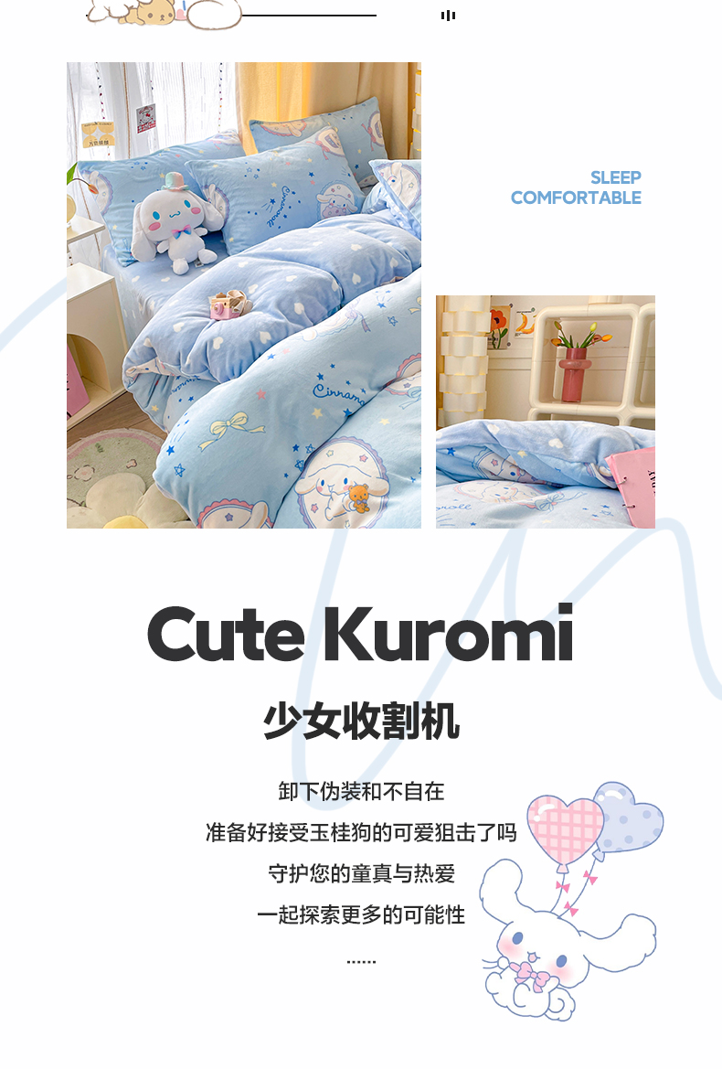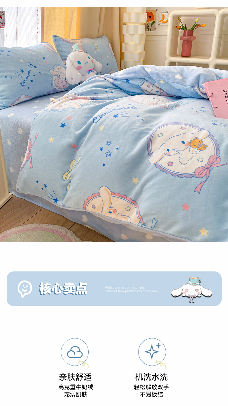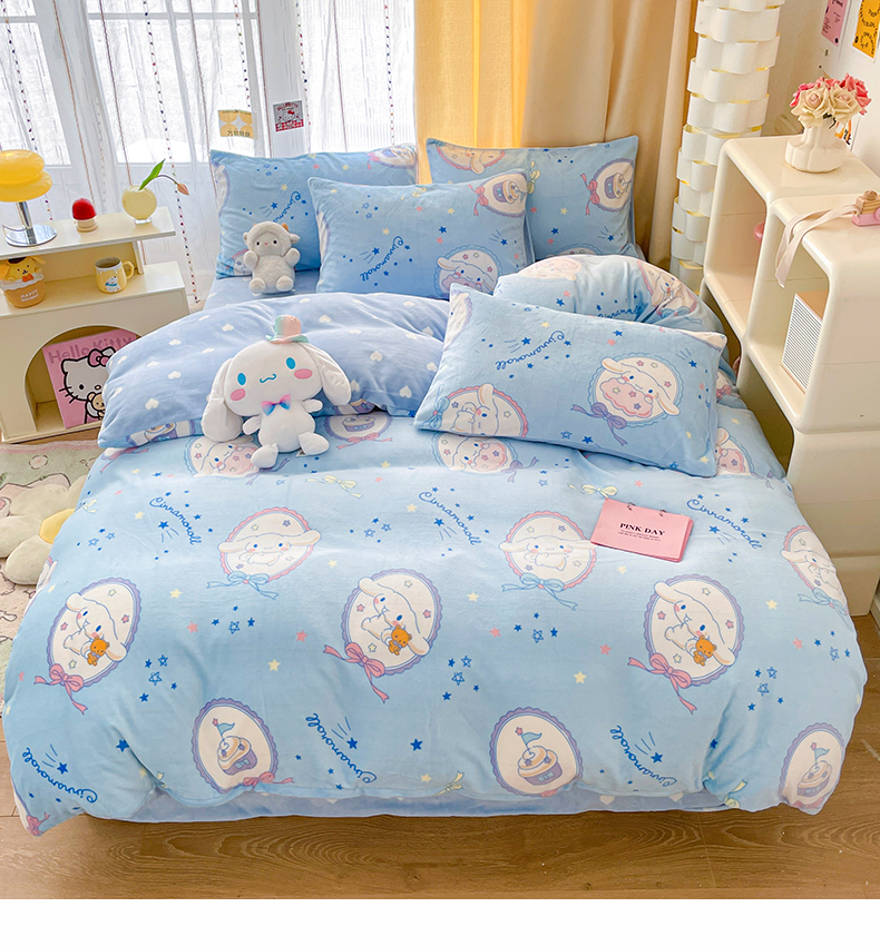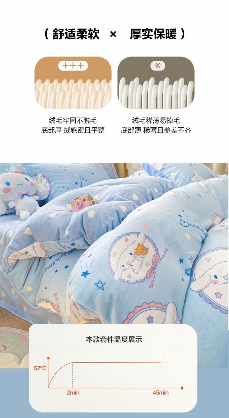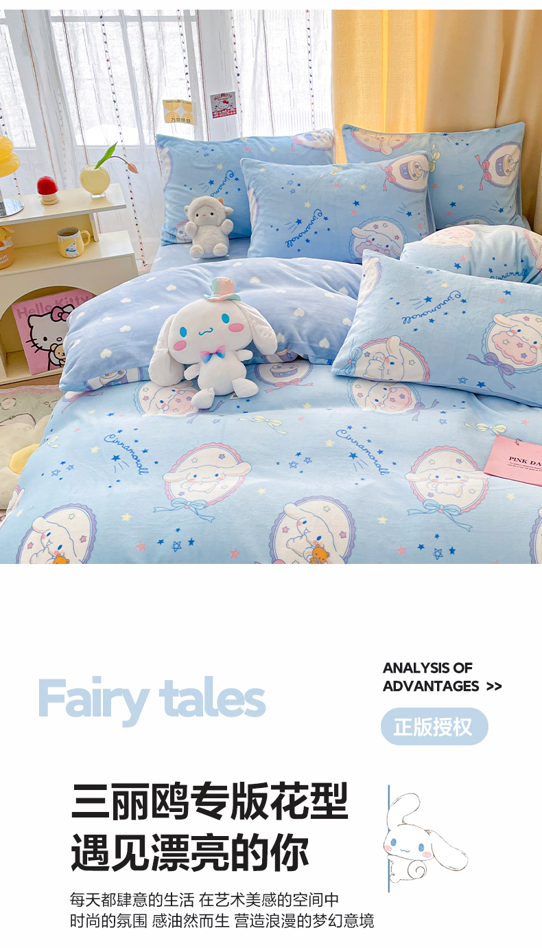 博雅 2023三丽鸥正版授权卡通加厚牛奶绒系列四件套 玉桂狗奶油甜心
