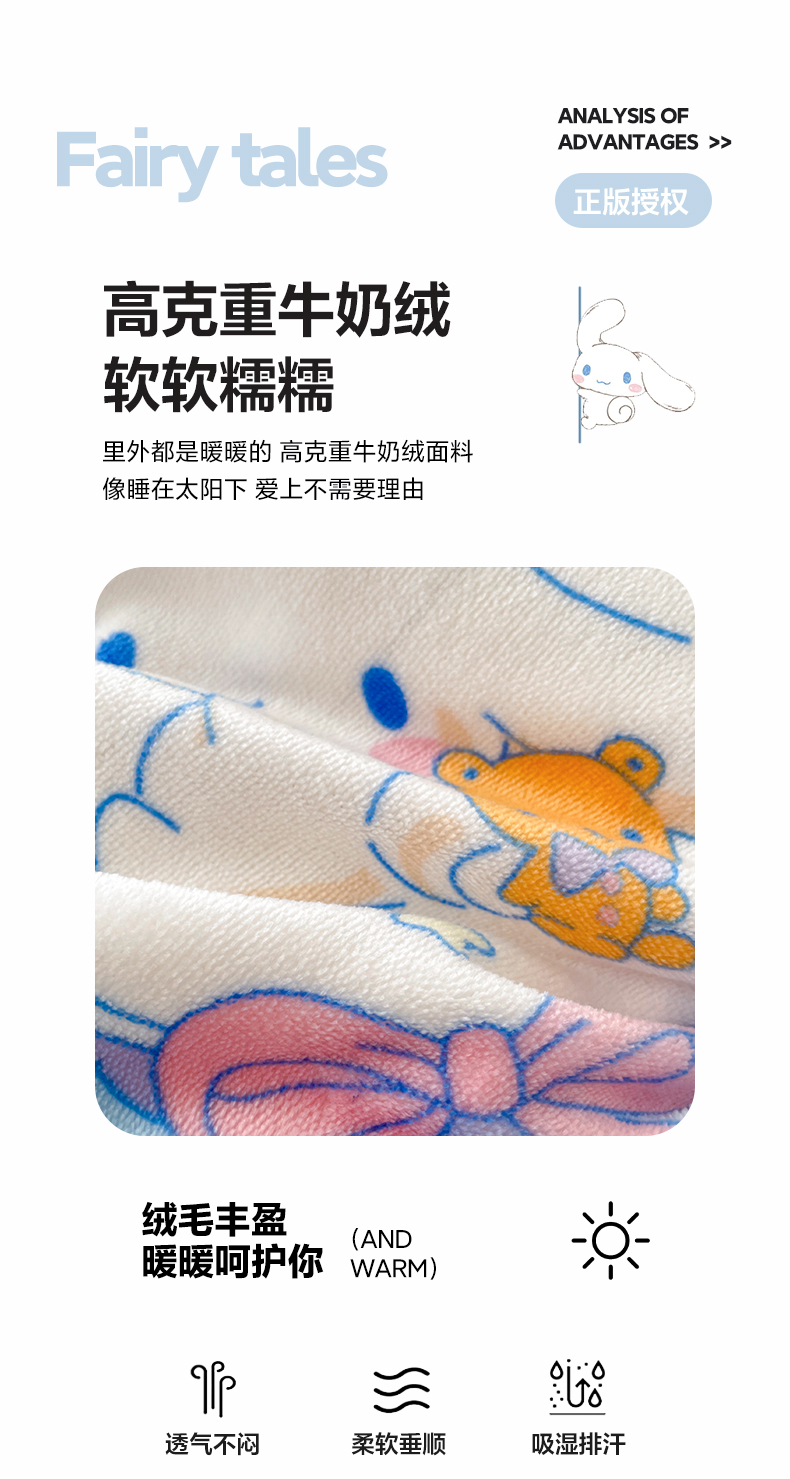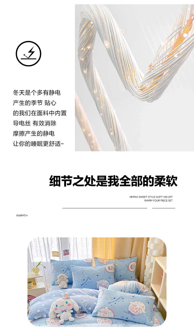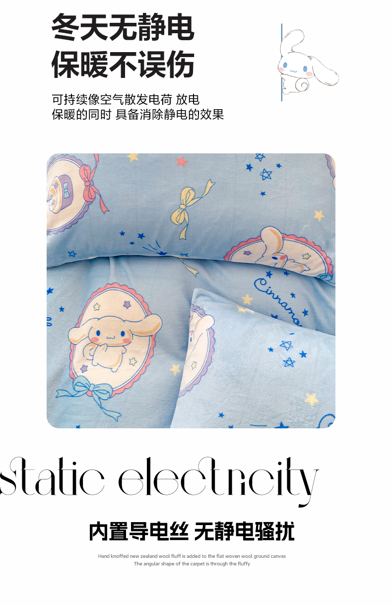 商品名称:博雅 2023三丽鸥正版授权卡通加厚牛奶绒系列四件套 玉桂狗奶油甜心