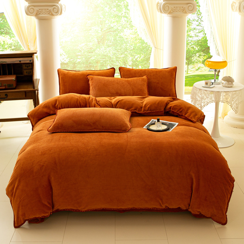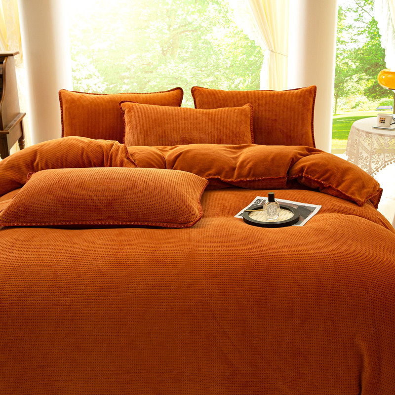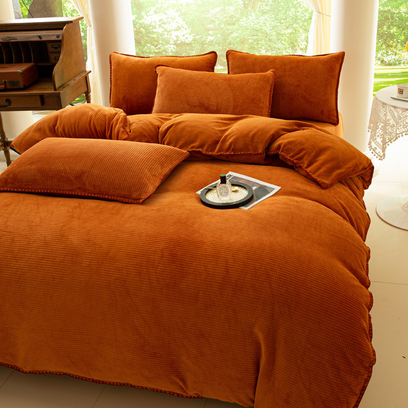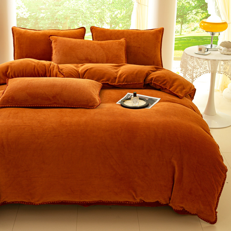 商品名称:邦妮 2024新款华夫格牛奶绒贝壳边四件套 华夫格-焦糖