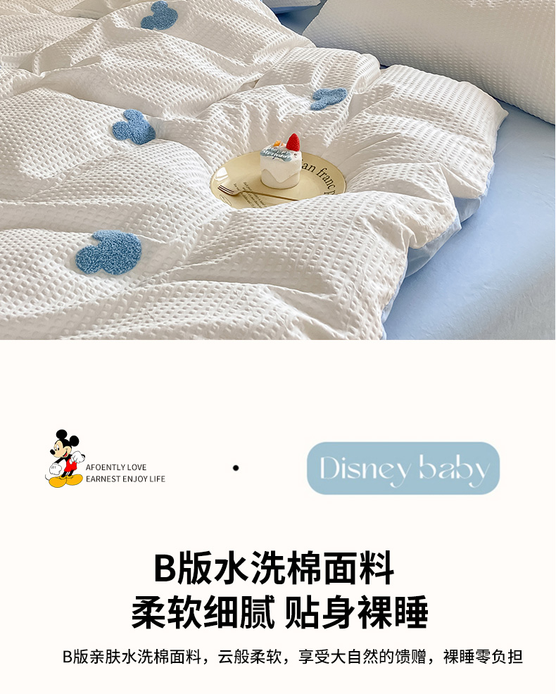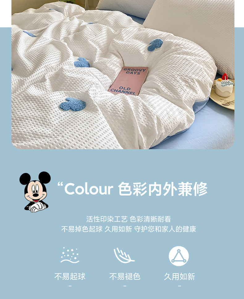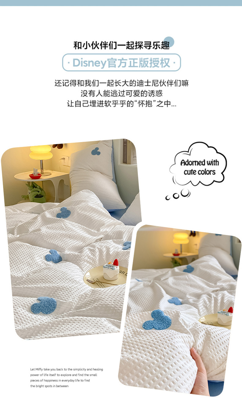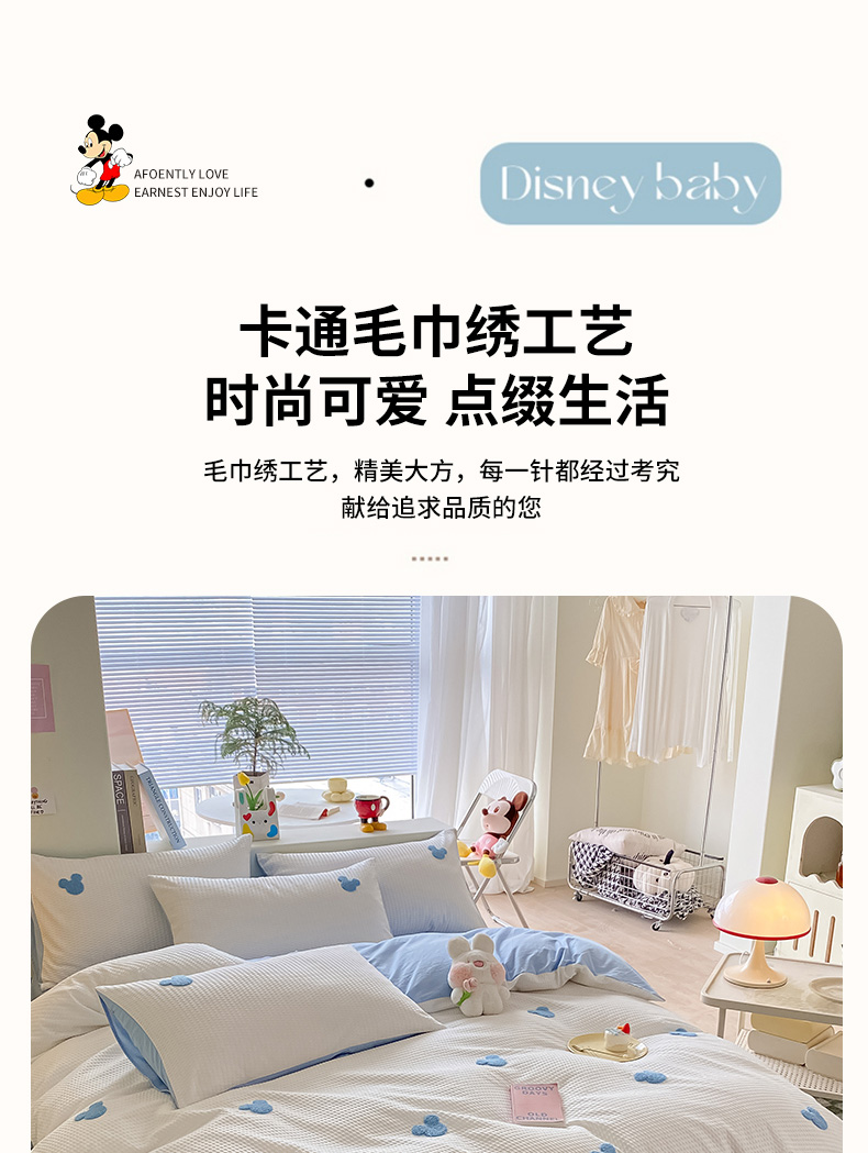当前位置: 91家纺网 > 商品网购 > 床品套件 > 四件套 > 水洗棉四件套 > 眠帛家居 2024新款华夫格迪士尼米奇毛巾绣系列 米奇天空蓝