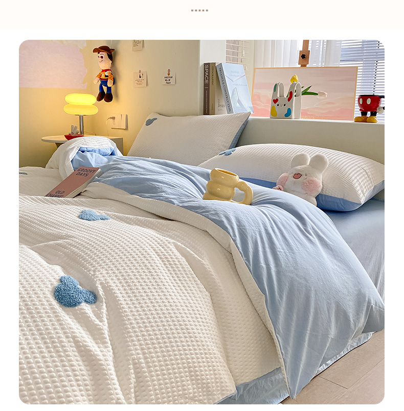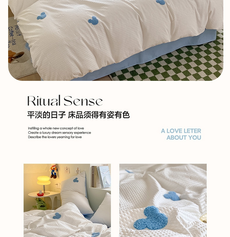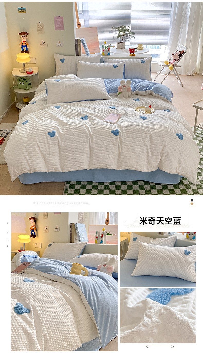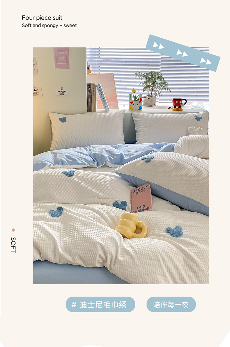 当前位置: 91家纺网 > 商品网购 > 床品套件 > 四件套 > 水洗棉四件套 > 眠帛家居 2024新款华夫格迪士尼米奇毛巾绣系列 米奇天空蓝