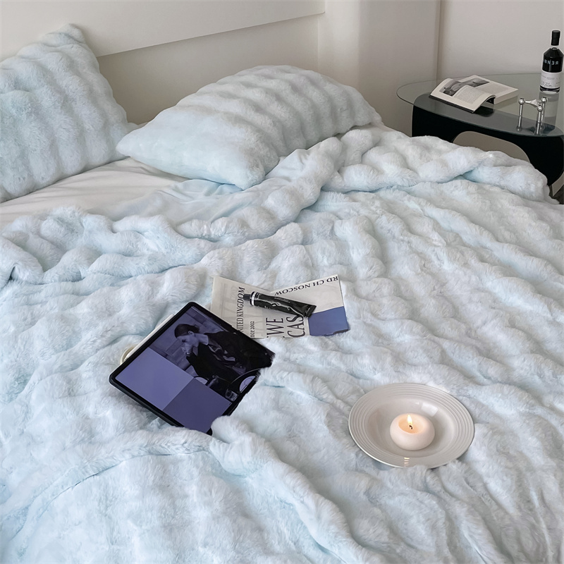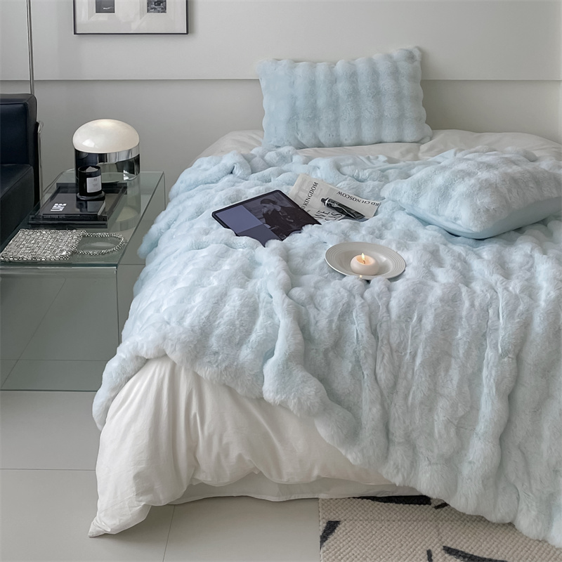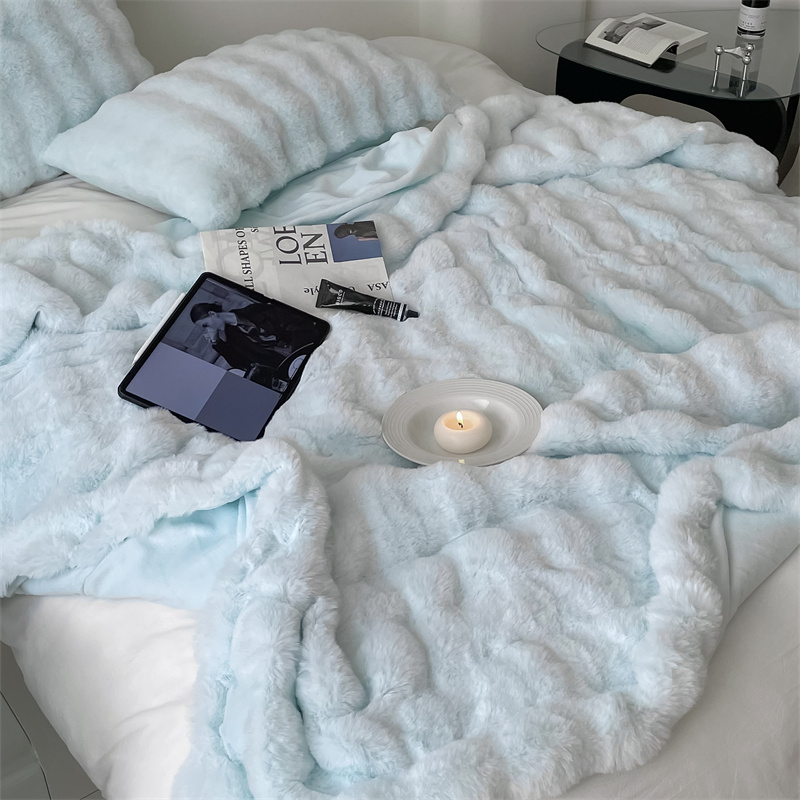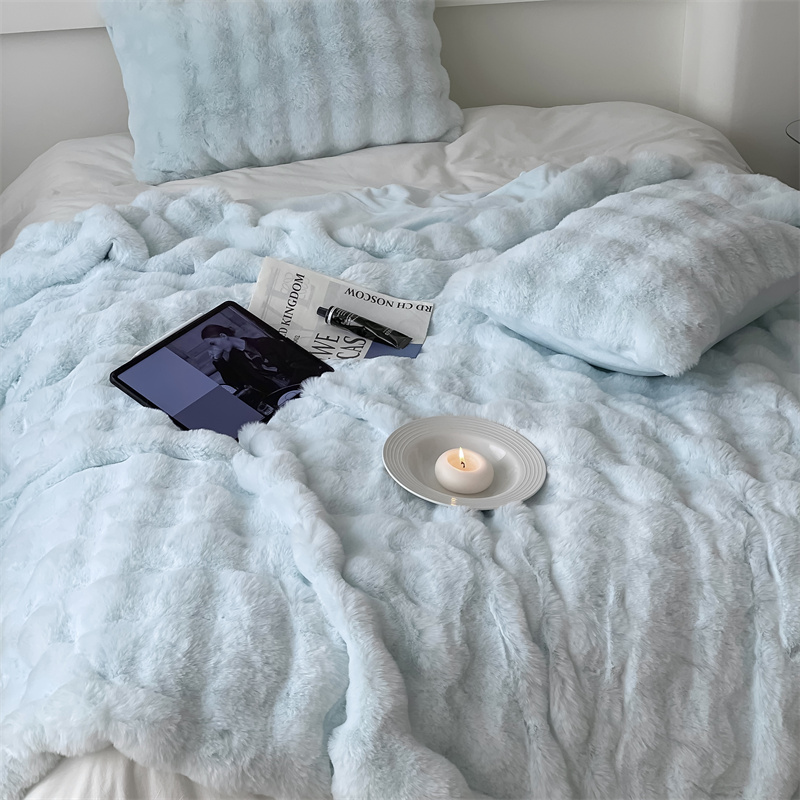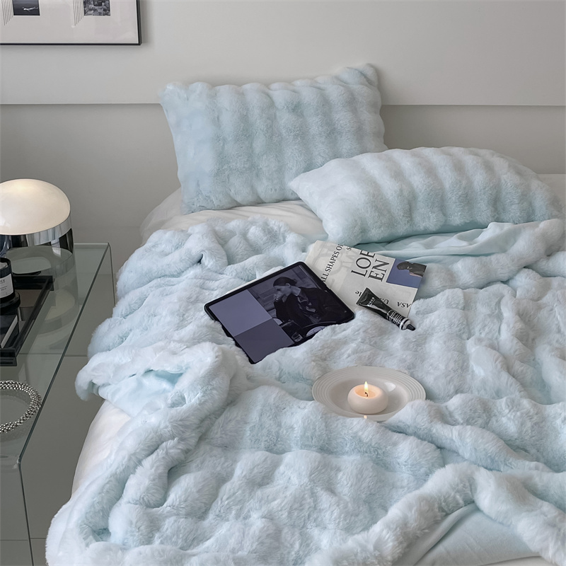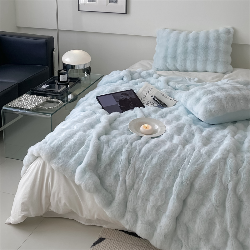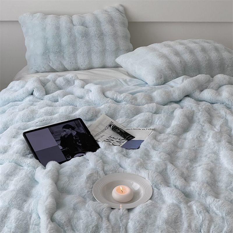 商品名称:潘朵拉 2023新款550g兔兔绒被套毯 兔兔绒被套毯天空蓝
