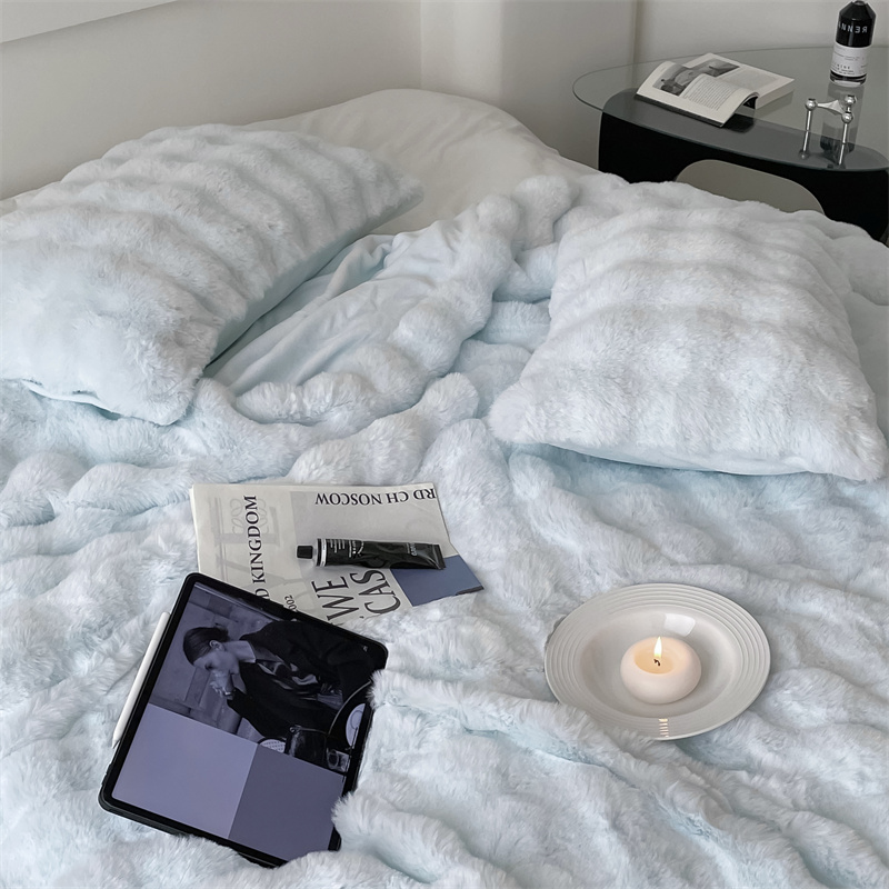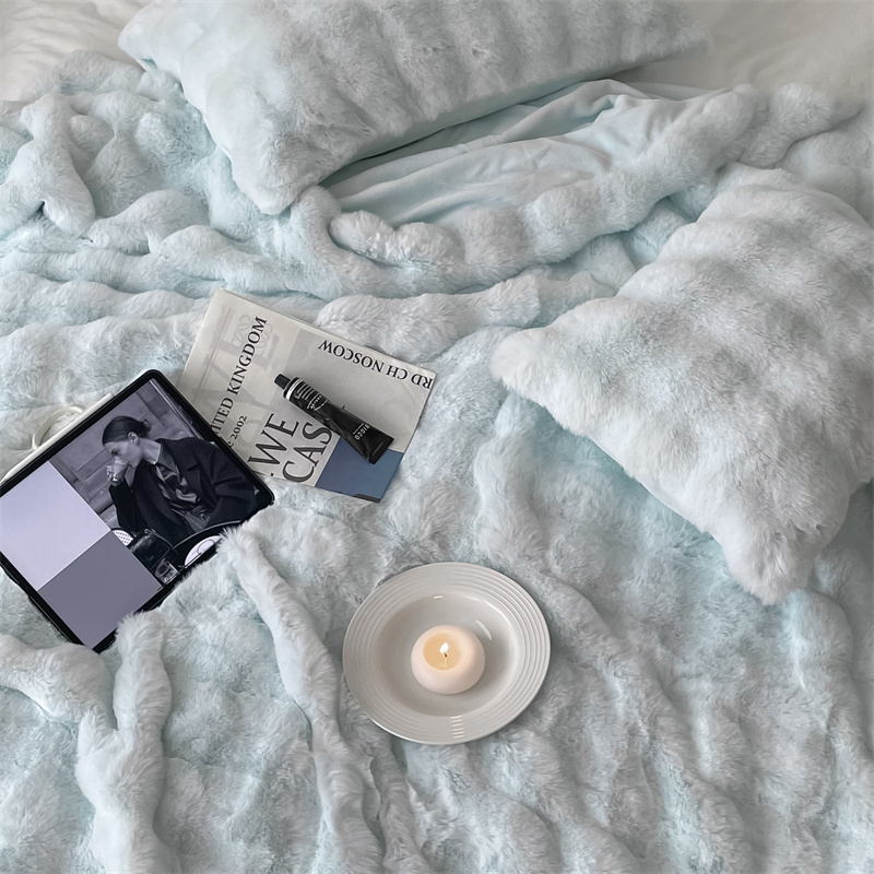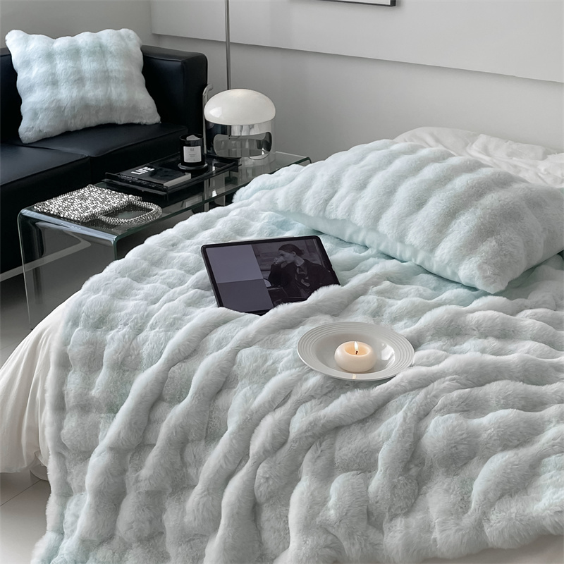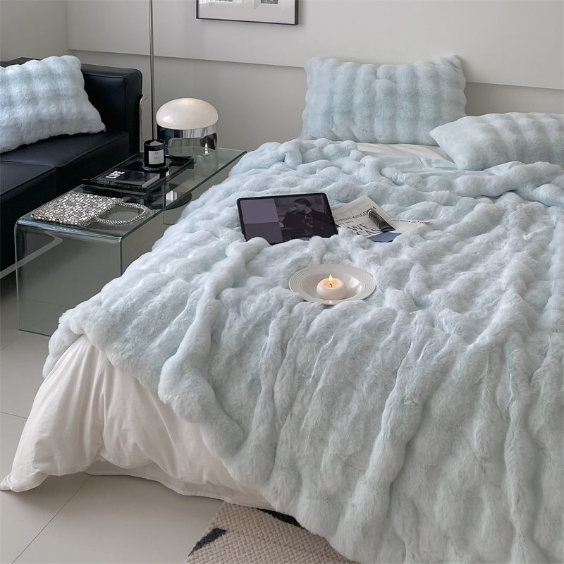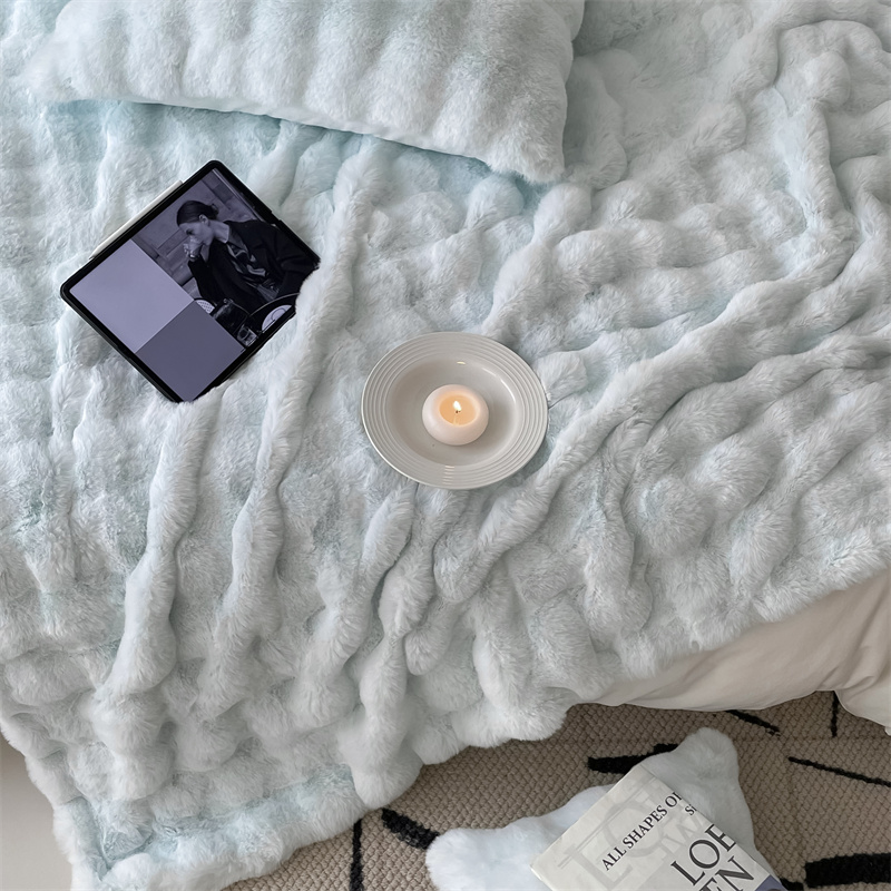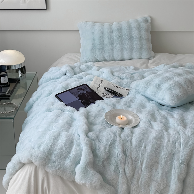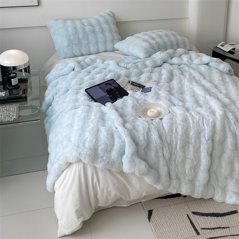 商品名称:潘朵拉 2023新款550g兔兔绒被套毯 兔兔绒被套毯天空蓝