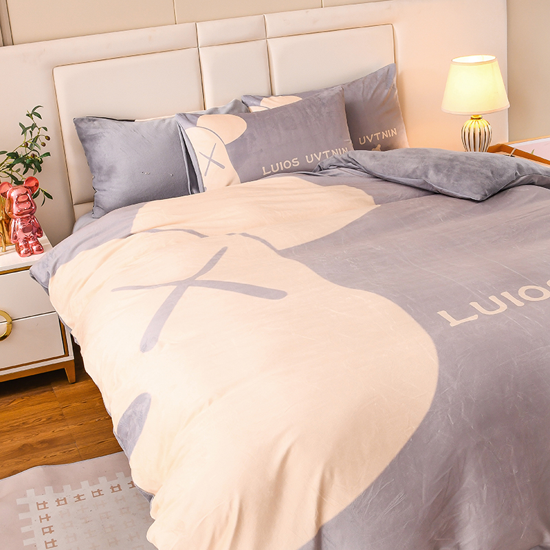 商品名称:爵仕家纺 2023新款暴力熊牛奶绒系列四件套 半脸熊